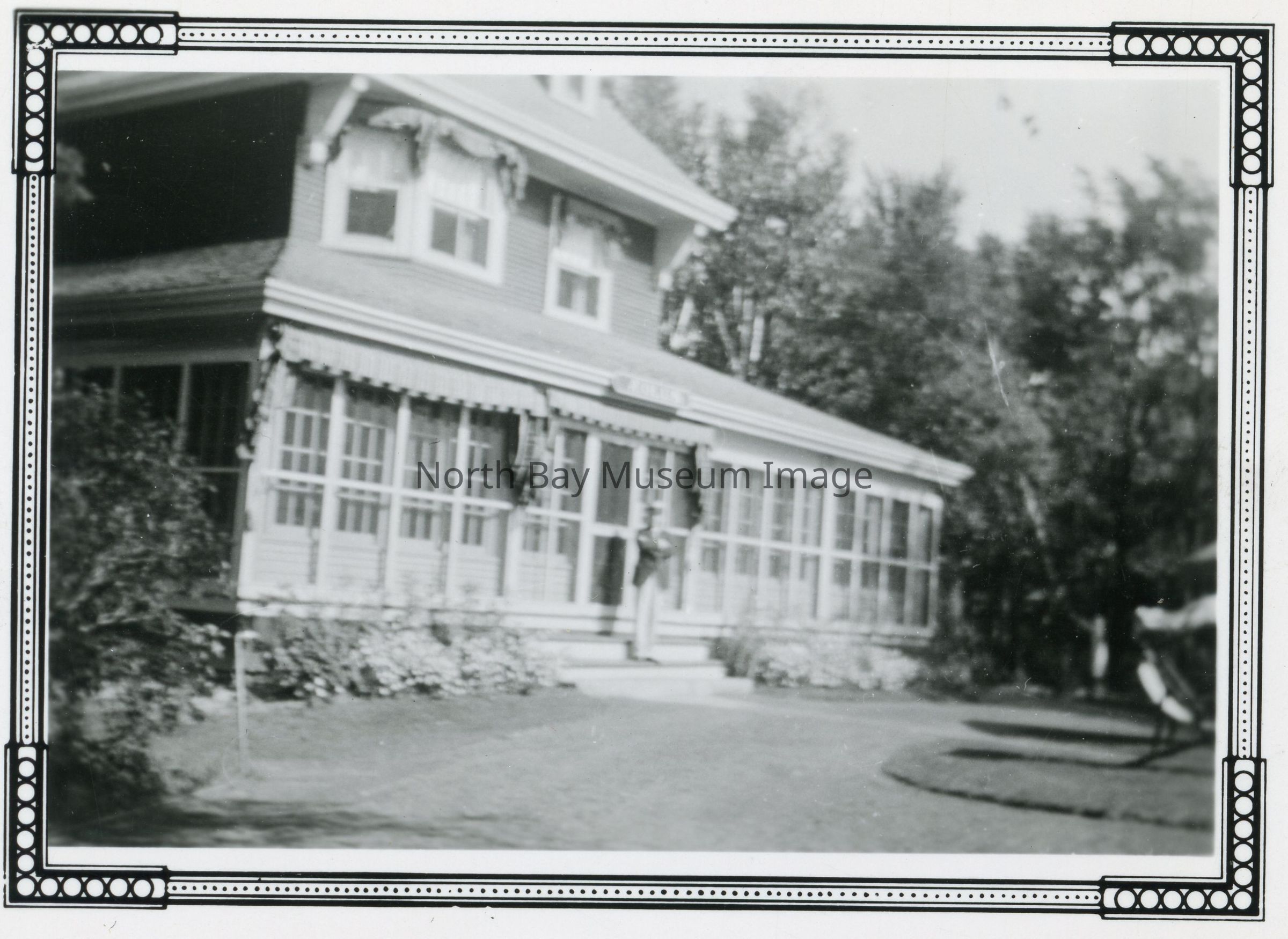 Black and white photo of Gordon family summer home on Judge Ave, Lake Nipissing.