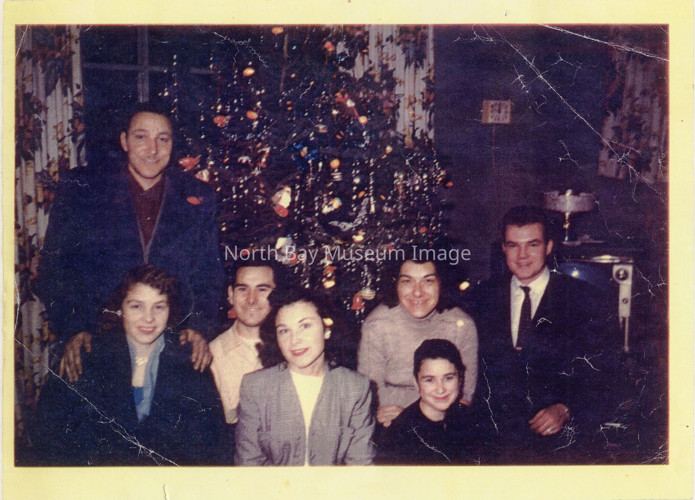 At left, Wilfred stands over Birdie among friends and/or siblings and other relatives at Christmastime. Presumably Wilfred's last Christmas, 1959. The use of colour photo suggests a date as late as possible. The holiday provides occasion to use such a luxurious item.