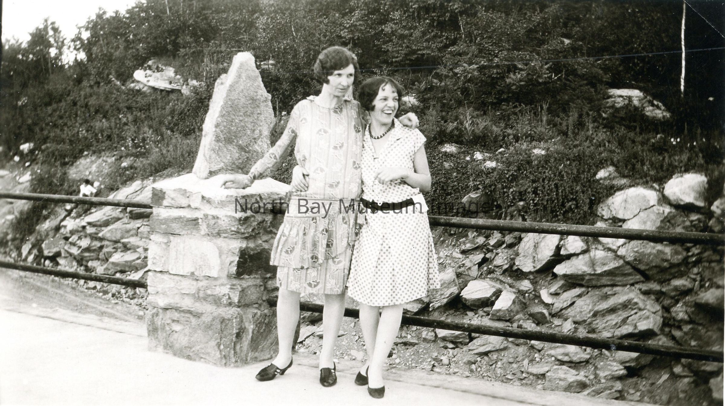 a- Photo of Eileen Goddard and Pearl Scobie at Look Out tower on hill above North Bay