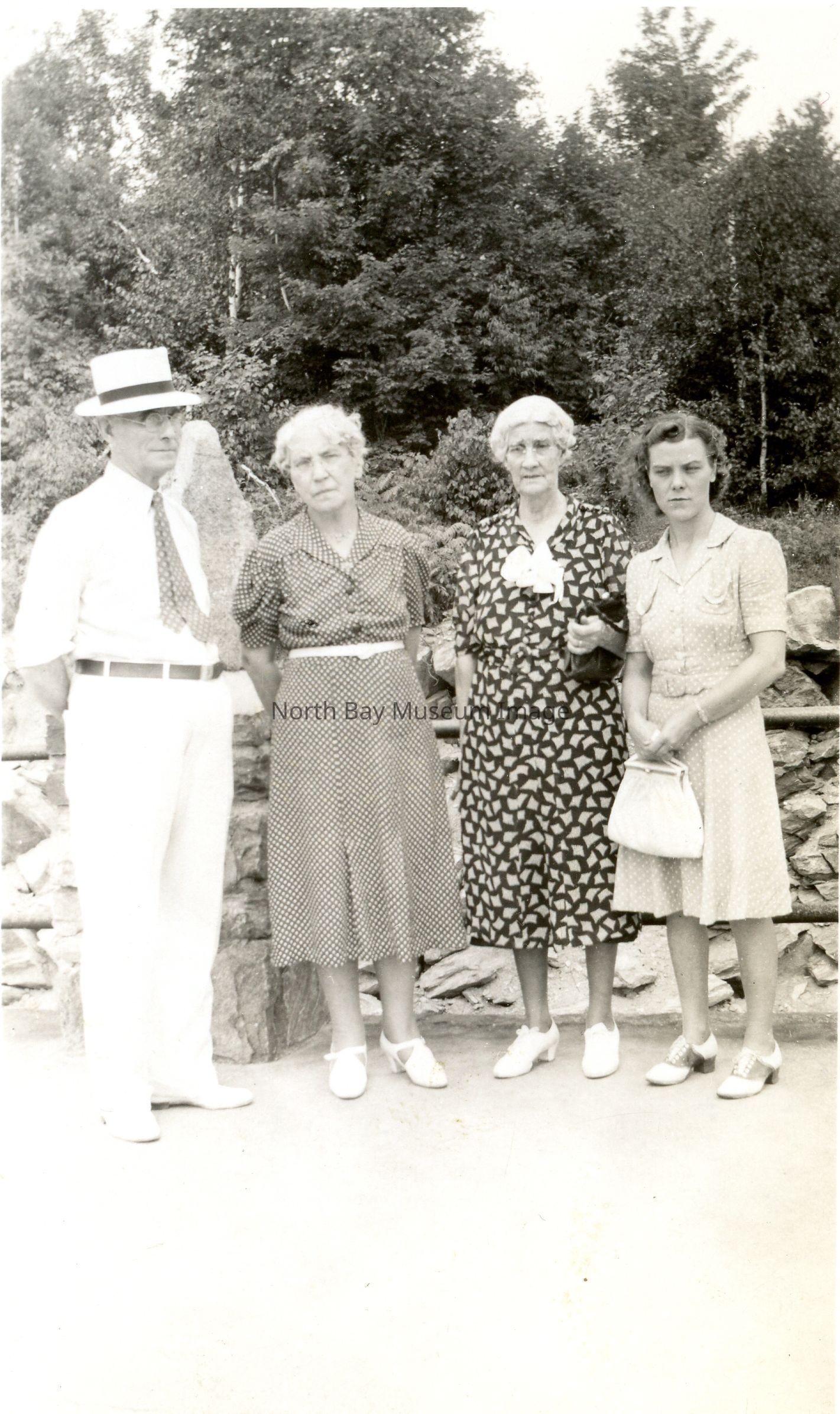 b- Photo of John Goddard, Mrs. John Goddard, Mrs Muldoon at Look Out Tower on Hill above North Bay (Airport Hill).