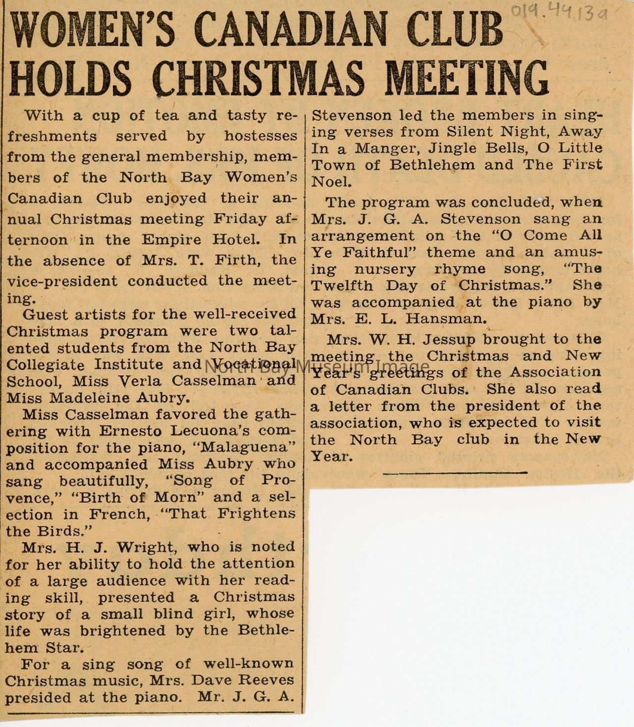 a- Article about Canadian Club's Christmas Meeting