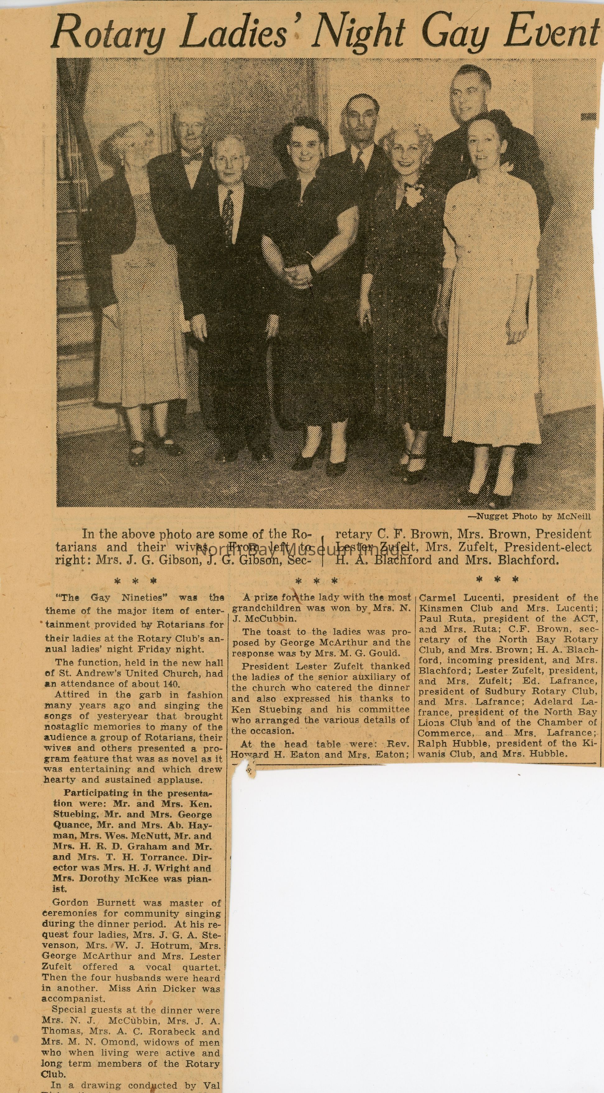 f- Article written about Rotary Ladies Night Event including Mrs. H.J. WrightDate(s) of Creation
