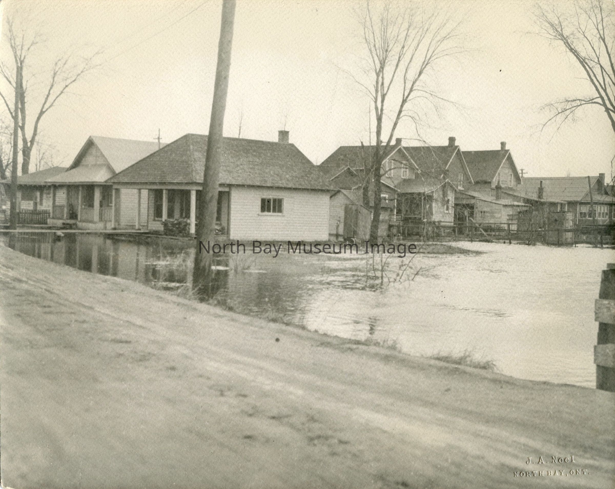 Photograph, black and white taken by J.A. Noel depicting flooding on Monk St., ( no longer exists) Believed to be taken during 1928 or 1933 flood.