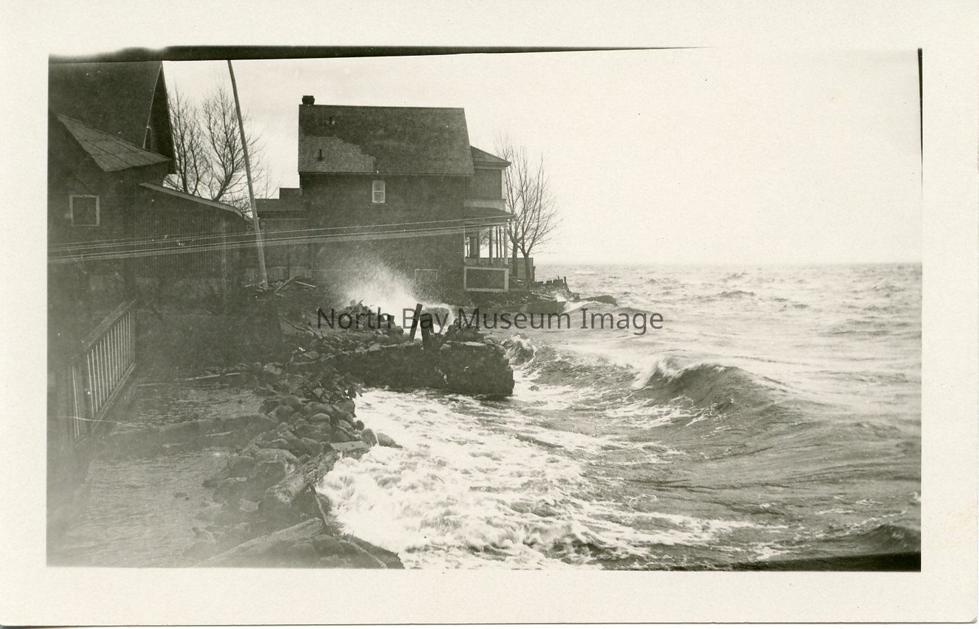 -Photograph, Black & white, depicting Nipissing Shoreline damage: