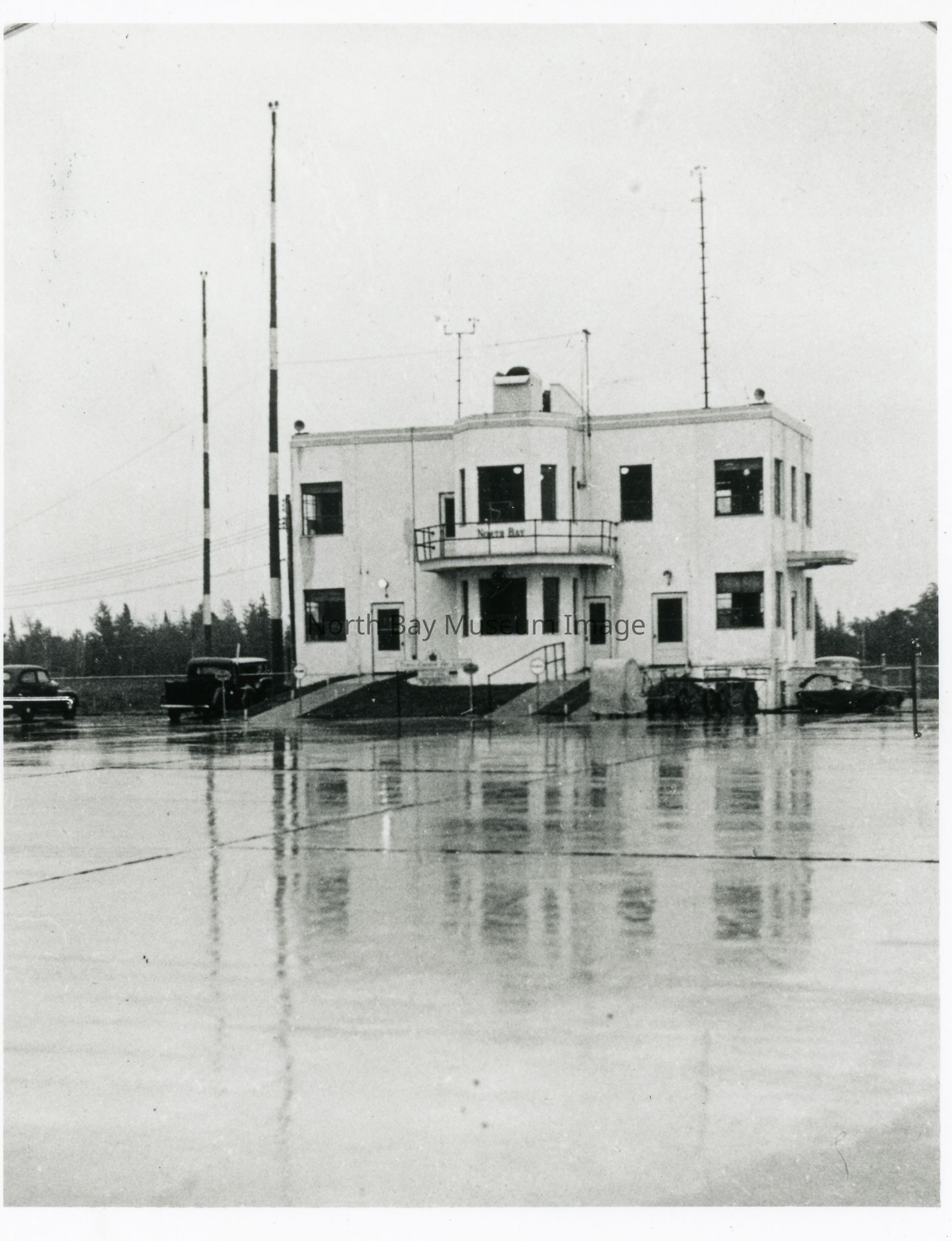 Black & white snapshot showing original North Bay airport building.