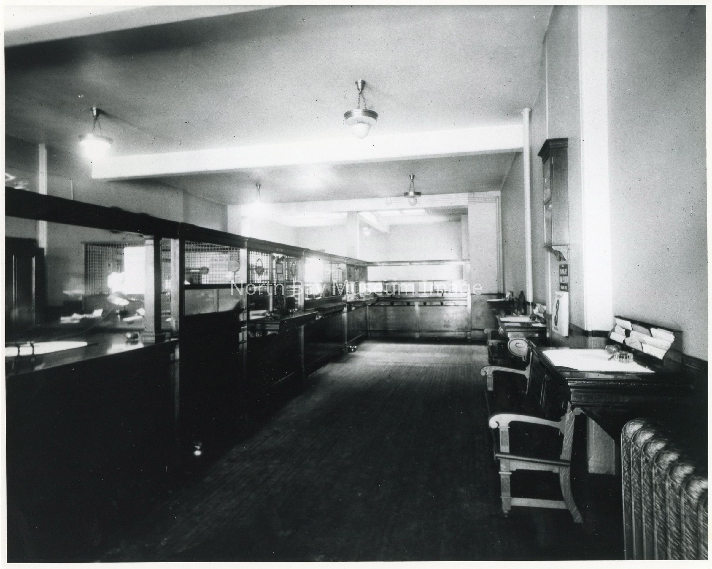 Black & white photograph of bank interior of the Bank of Nova Scotia taken prior to 1932.