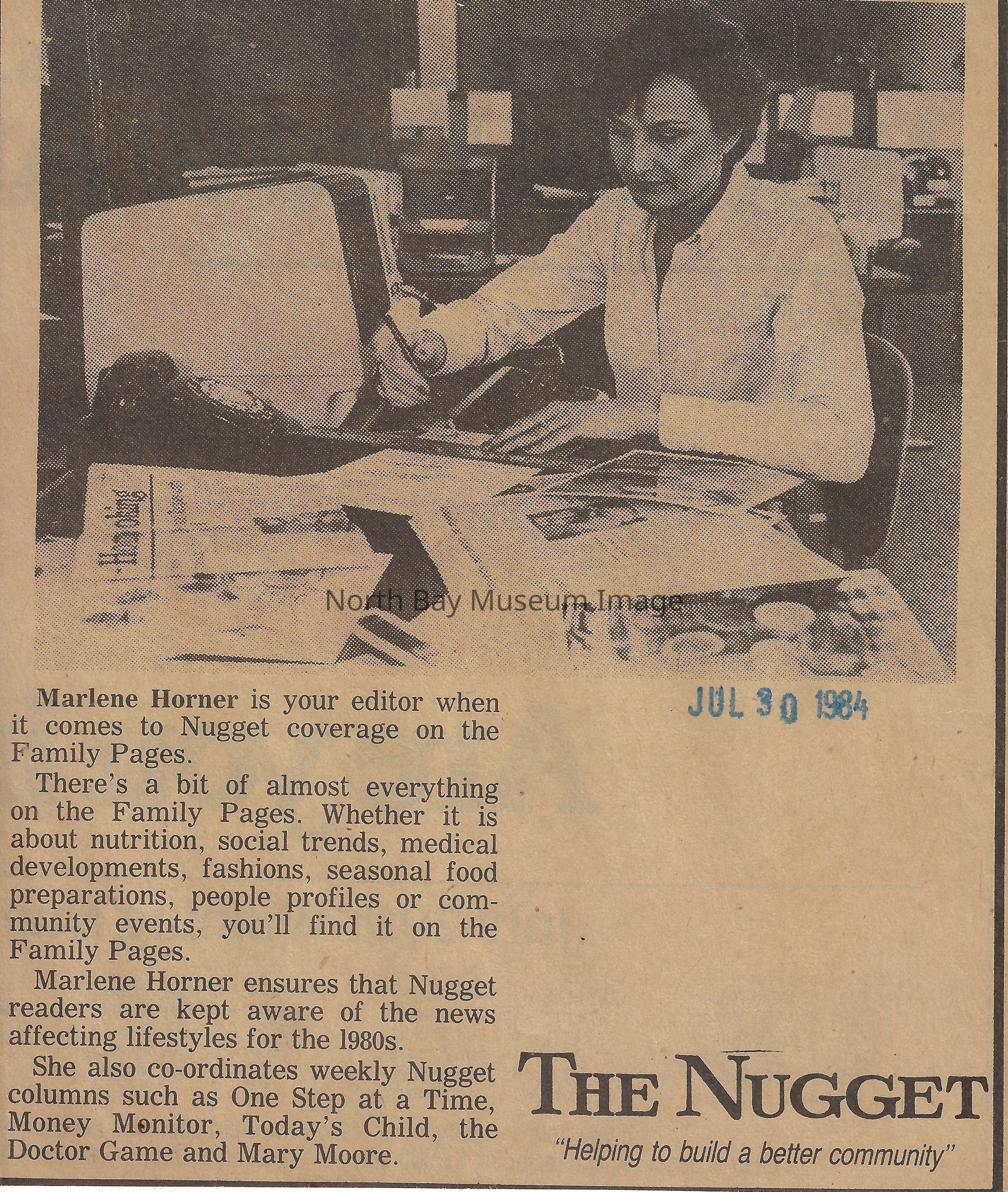 022.01.70ca-cb: June, 1984. Betty Lamorie, special interest editor.