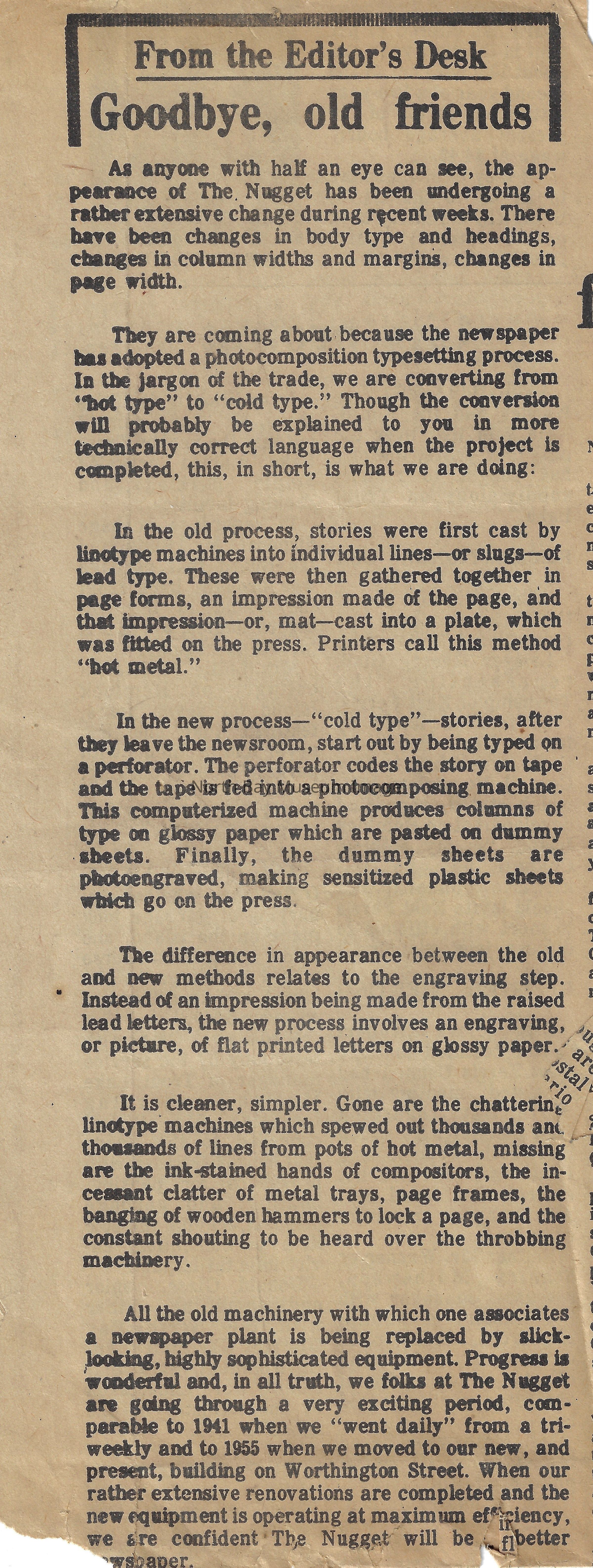 022.01.70at: Newspaper. G.W. looks at 42 years of newspapering. George Justice.