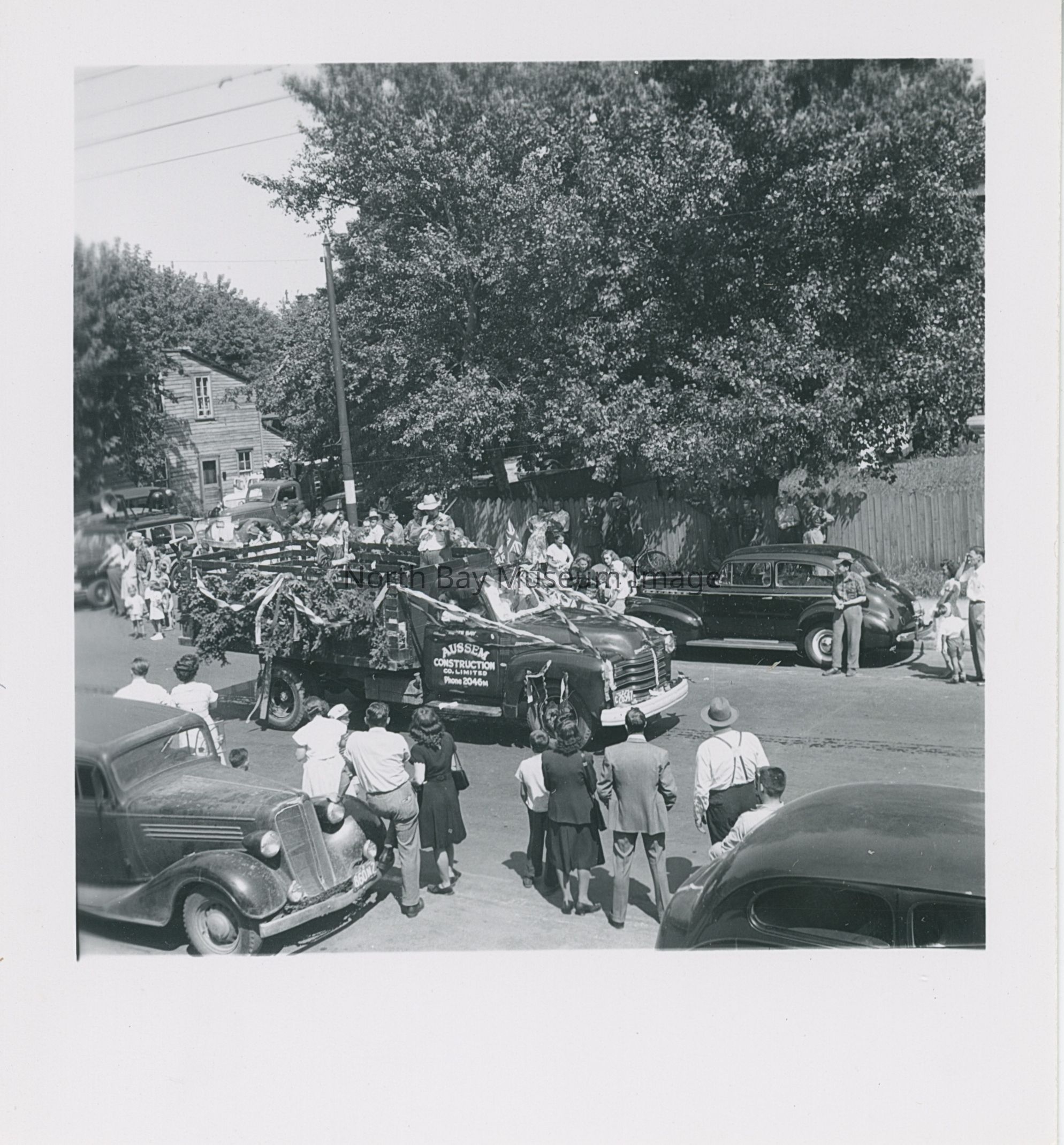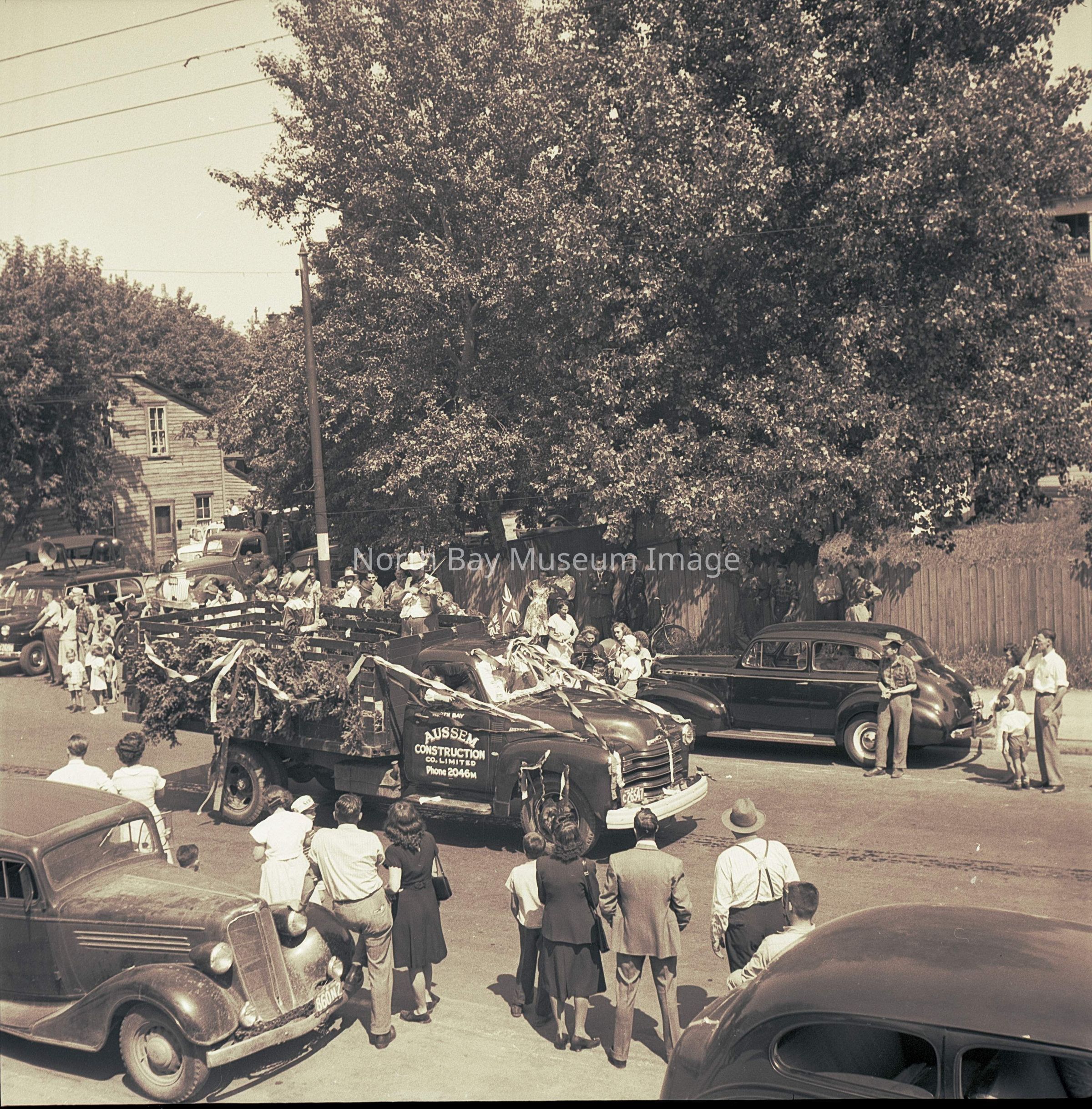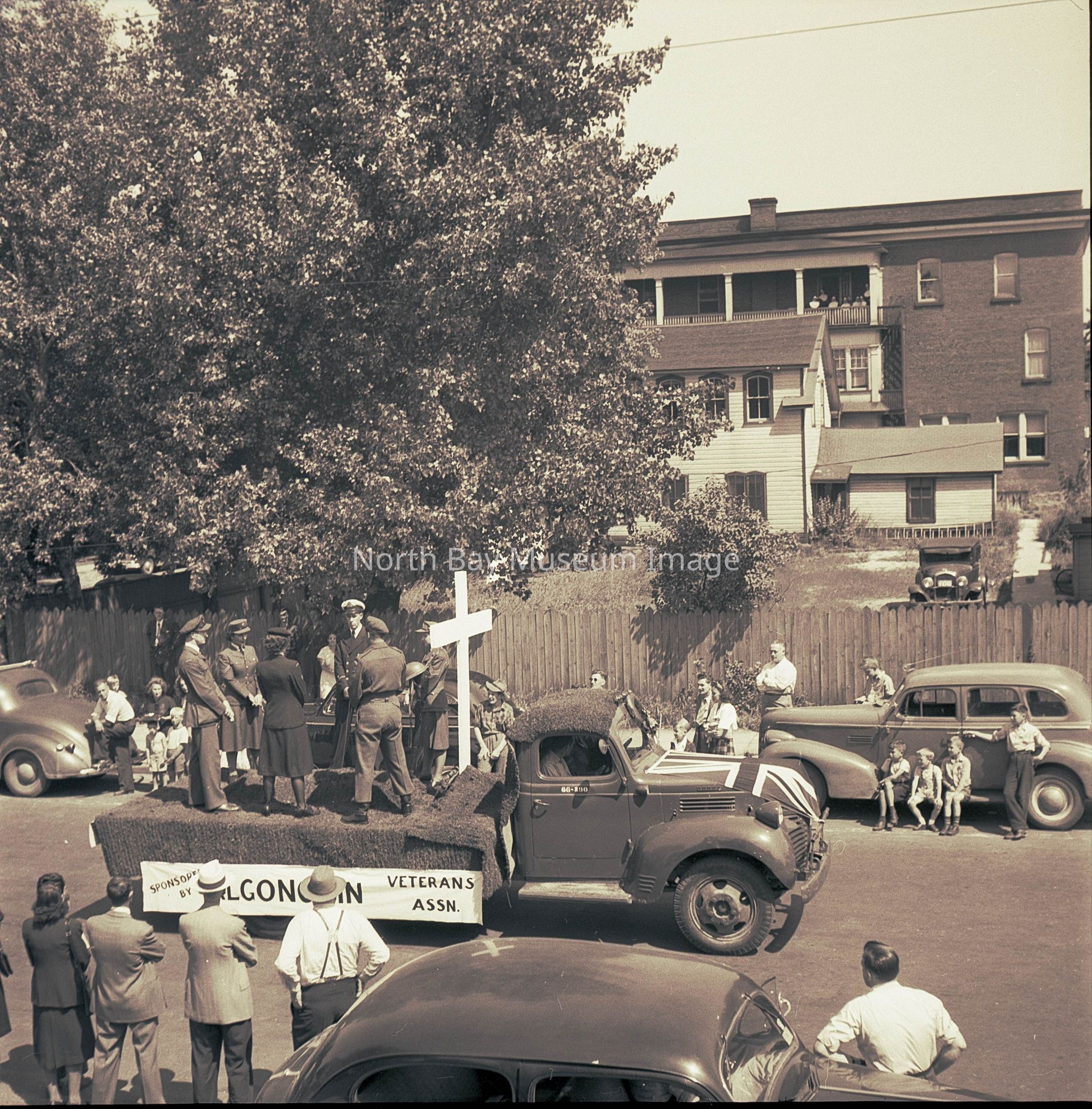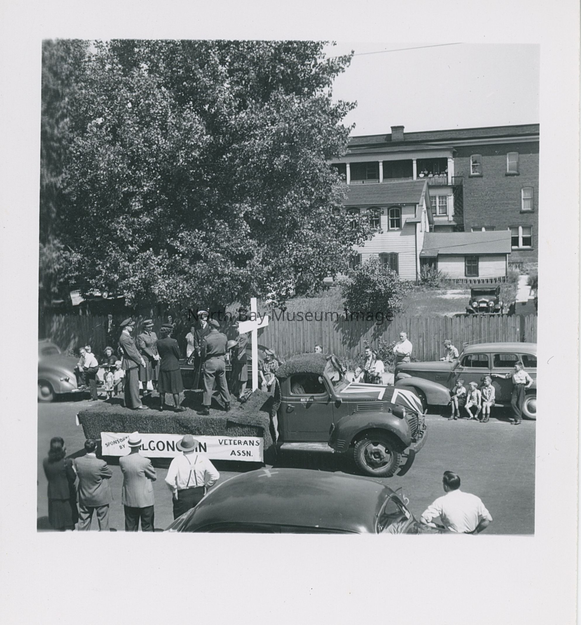 - Print (k) belongs with negative (v). Shows a truck with the british flag on the front, sponsored by the Algonquin Veterans Assn. We also see a cross on the back on the truck bed.