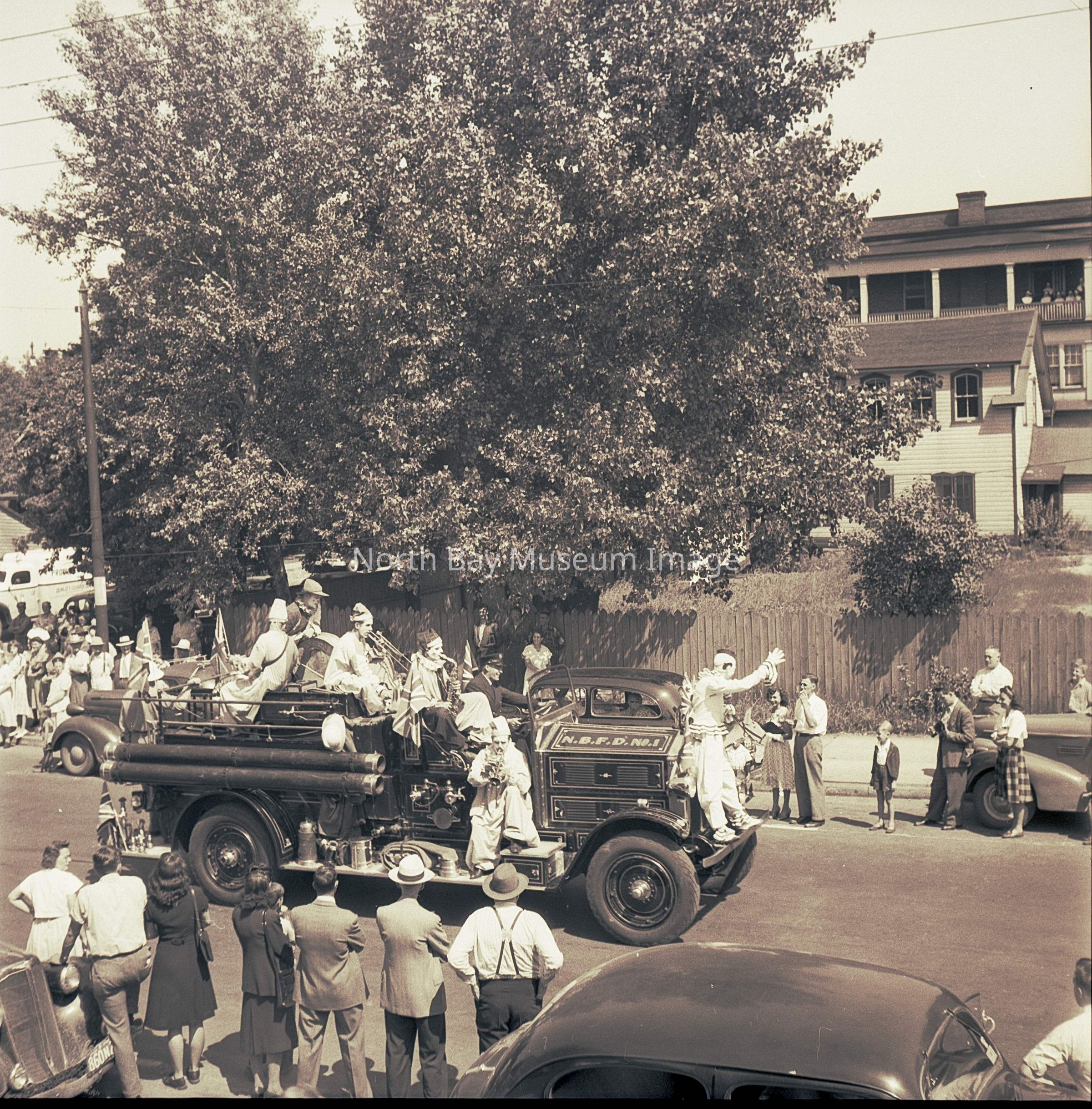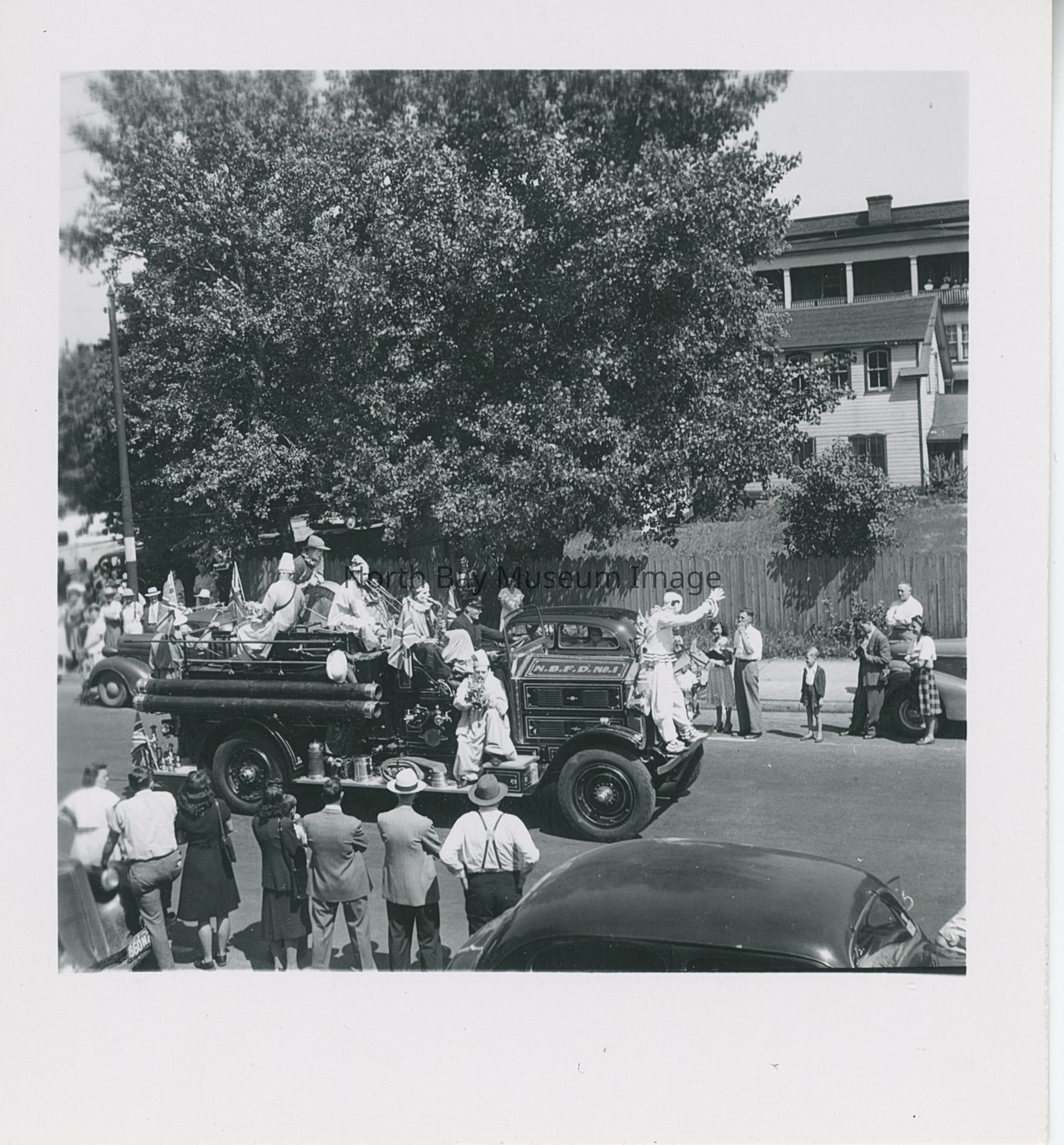 - Print (i) belongs with negative (t). Shows a N.B.F.D. Bickle Fire Truck with clowns riding on it.