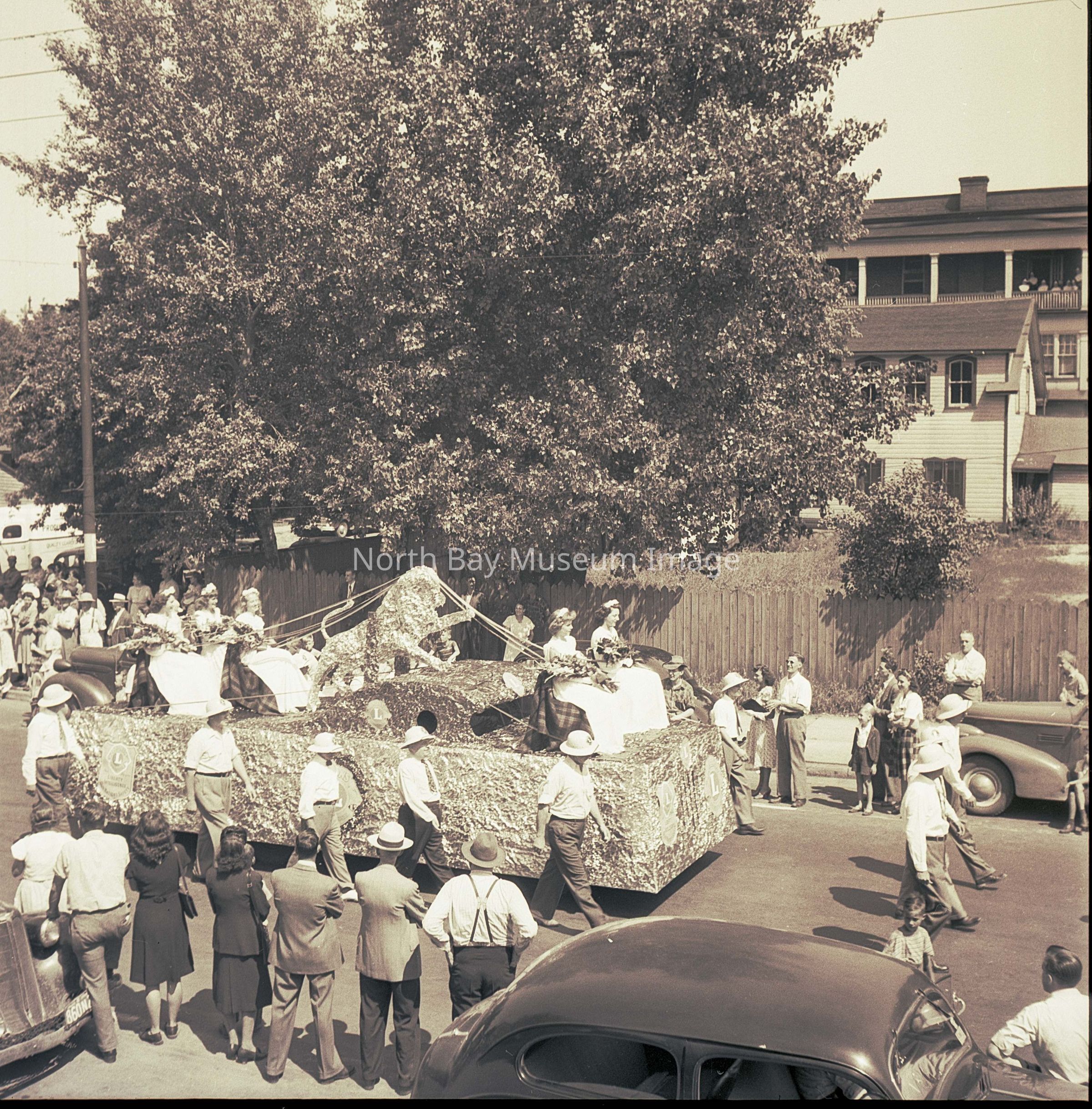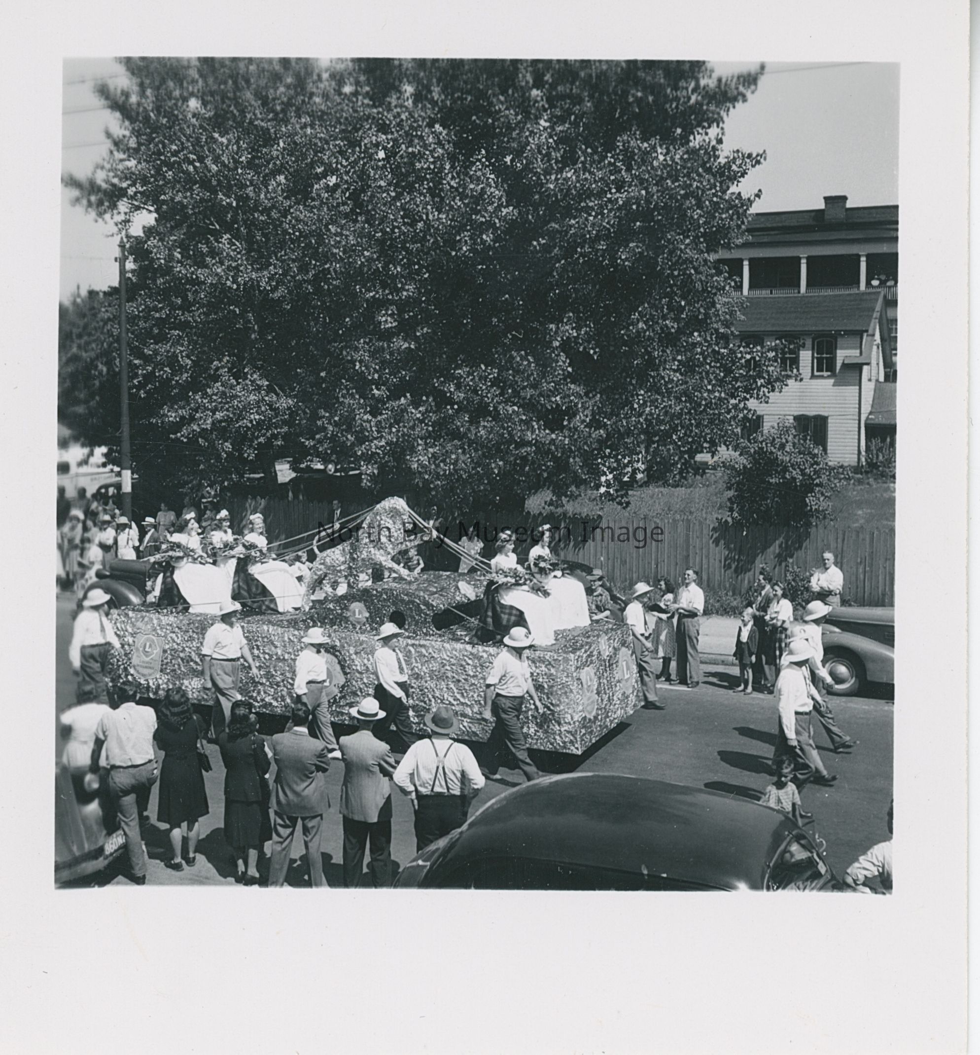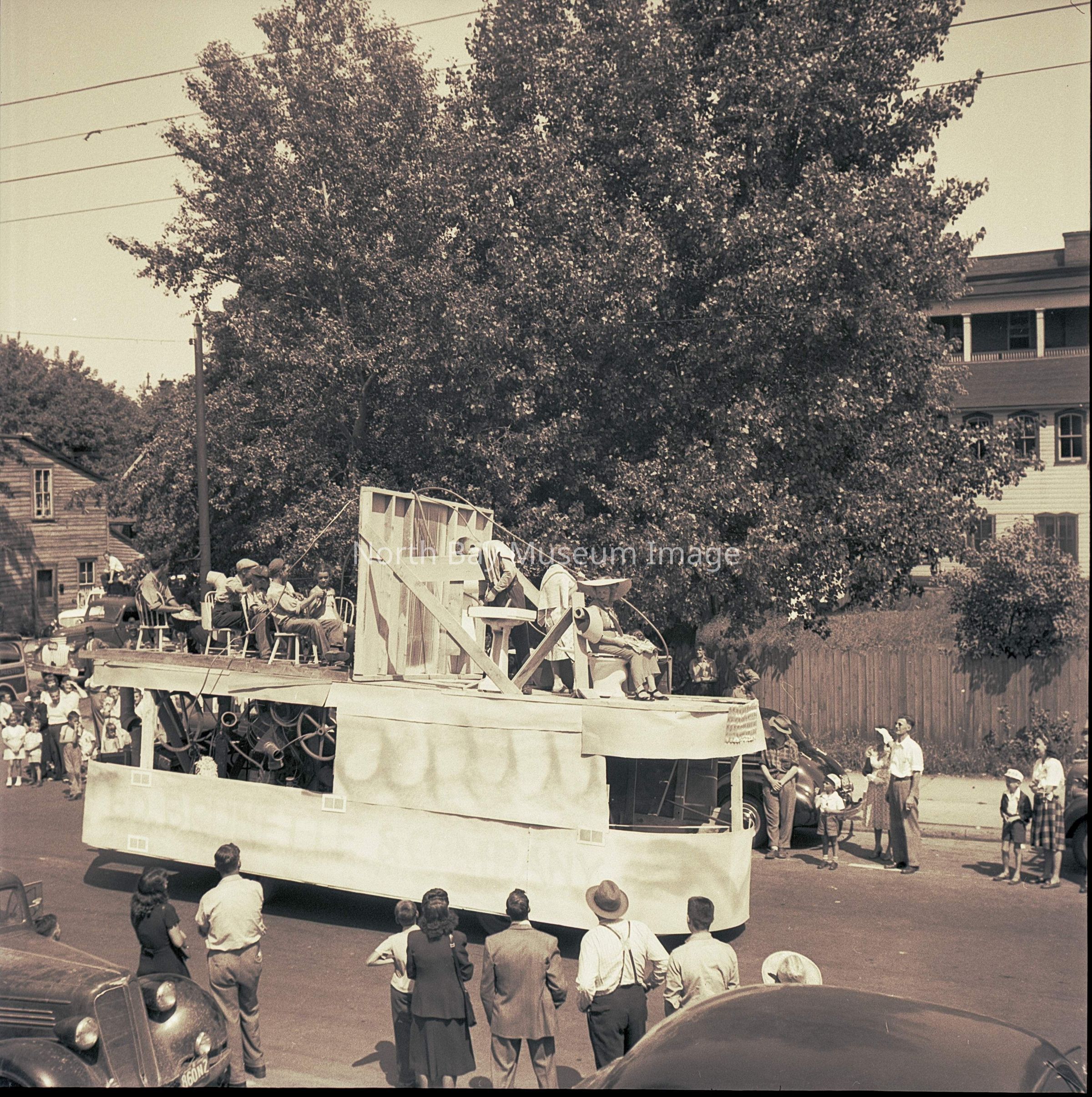 - Print (j) belongs with negative (u). Shows a large flat parade float for the Lions Club.