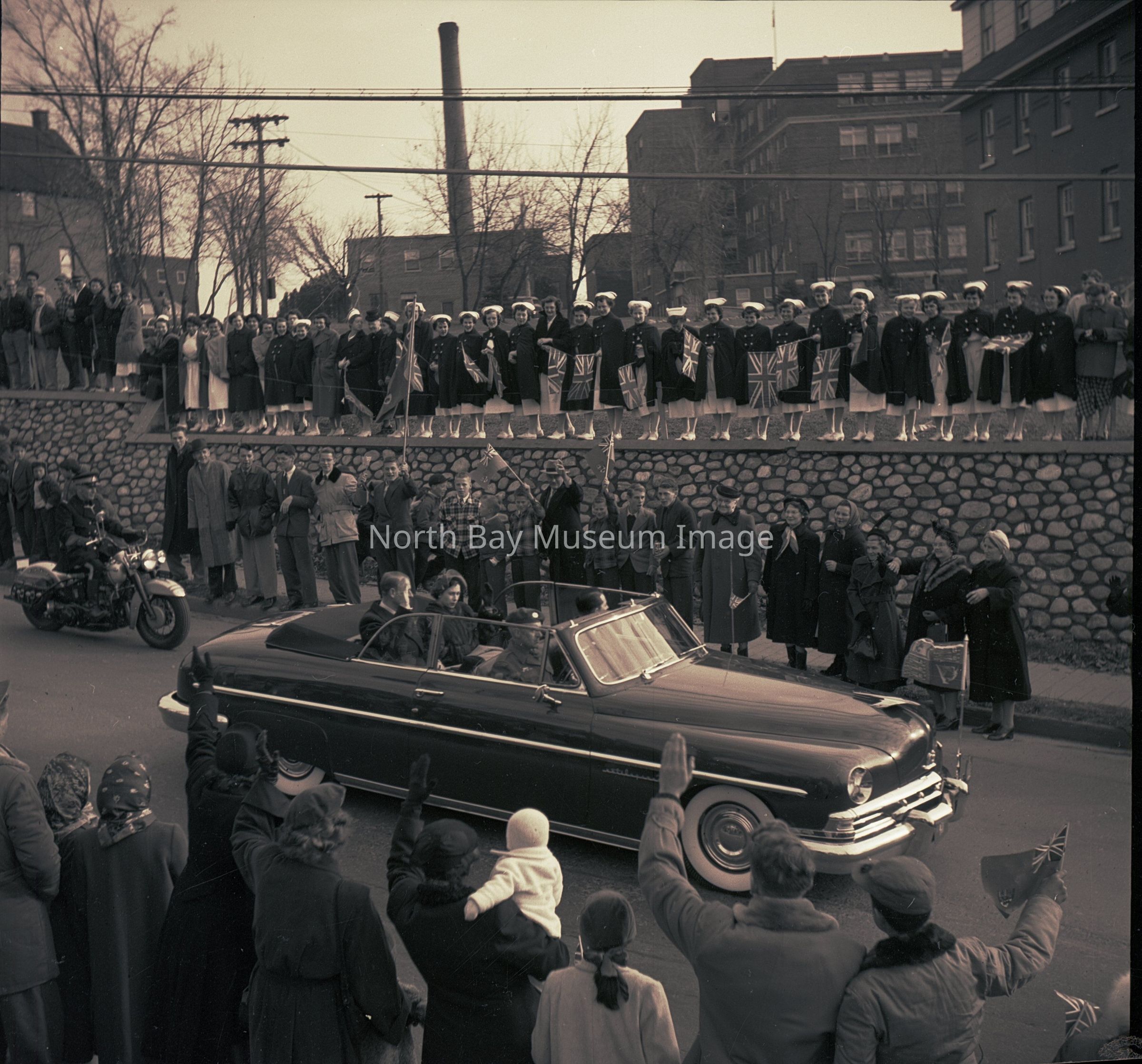 - Negative (x) does not have a print. This image was found in the photographer's envelope with the others but is from a different event. This photo shows Princess Elizabeth (later Queen Elizabeth) and Prince Philip in North Bay in during 1951 royal visit in a top-down car going down the street with crowds waving.