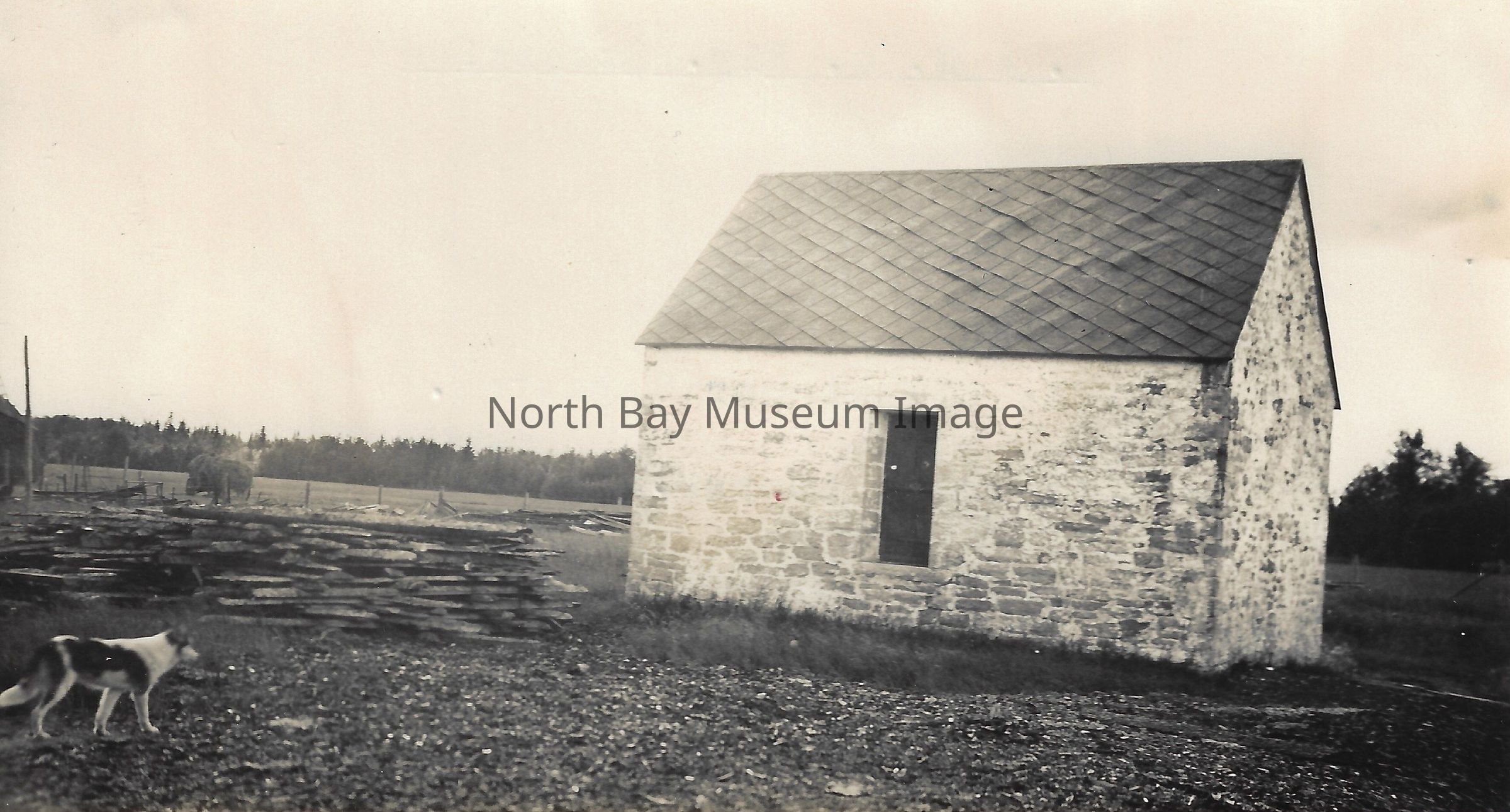 022.27.01bi: Old blacksmith shop at Moose Factory. 022.27.01bj: Onakawana Lignite development about 1945. 022.27.01bk: Stone powder magazine building.