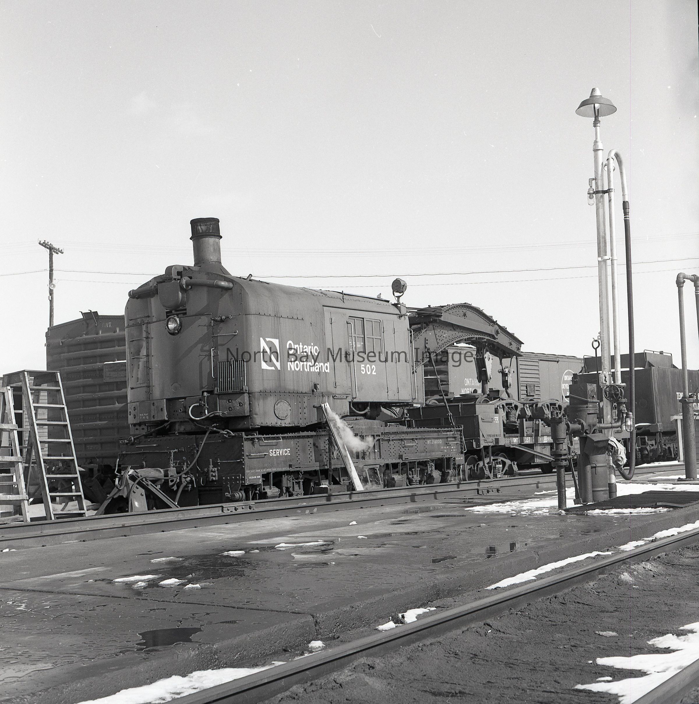019.60.427a - Envelope. Inscriptions: "March 1975", "O.N.R. yards, North Bay", "engines and equipment", "steam crane 502", "1737, 1731", "coach stops - icicles", "1802".