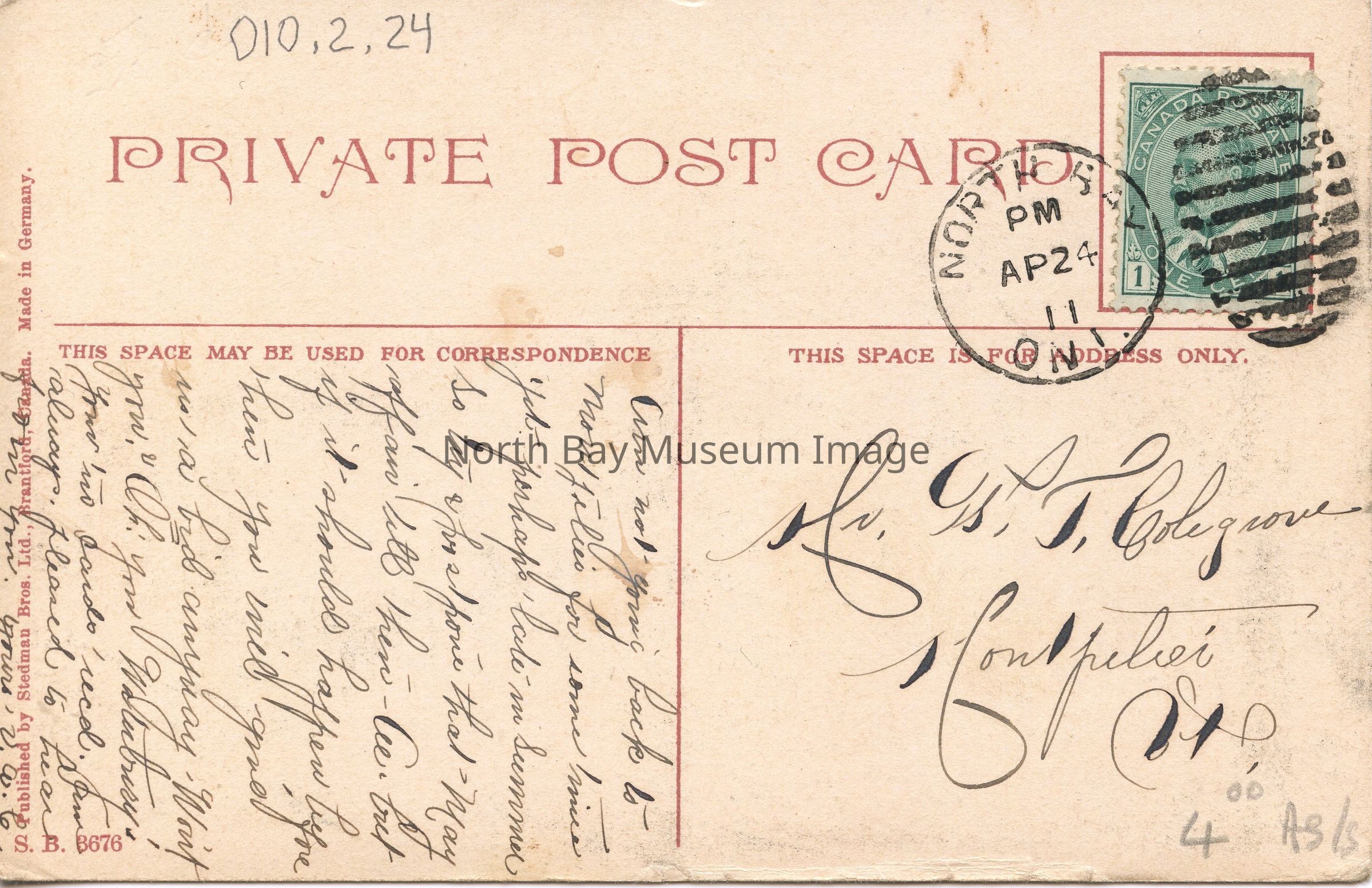 Postmark is North Bay Ont. PM AP 24, 11
