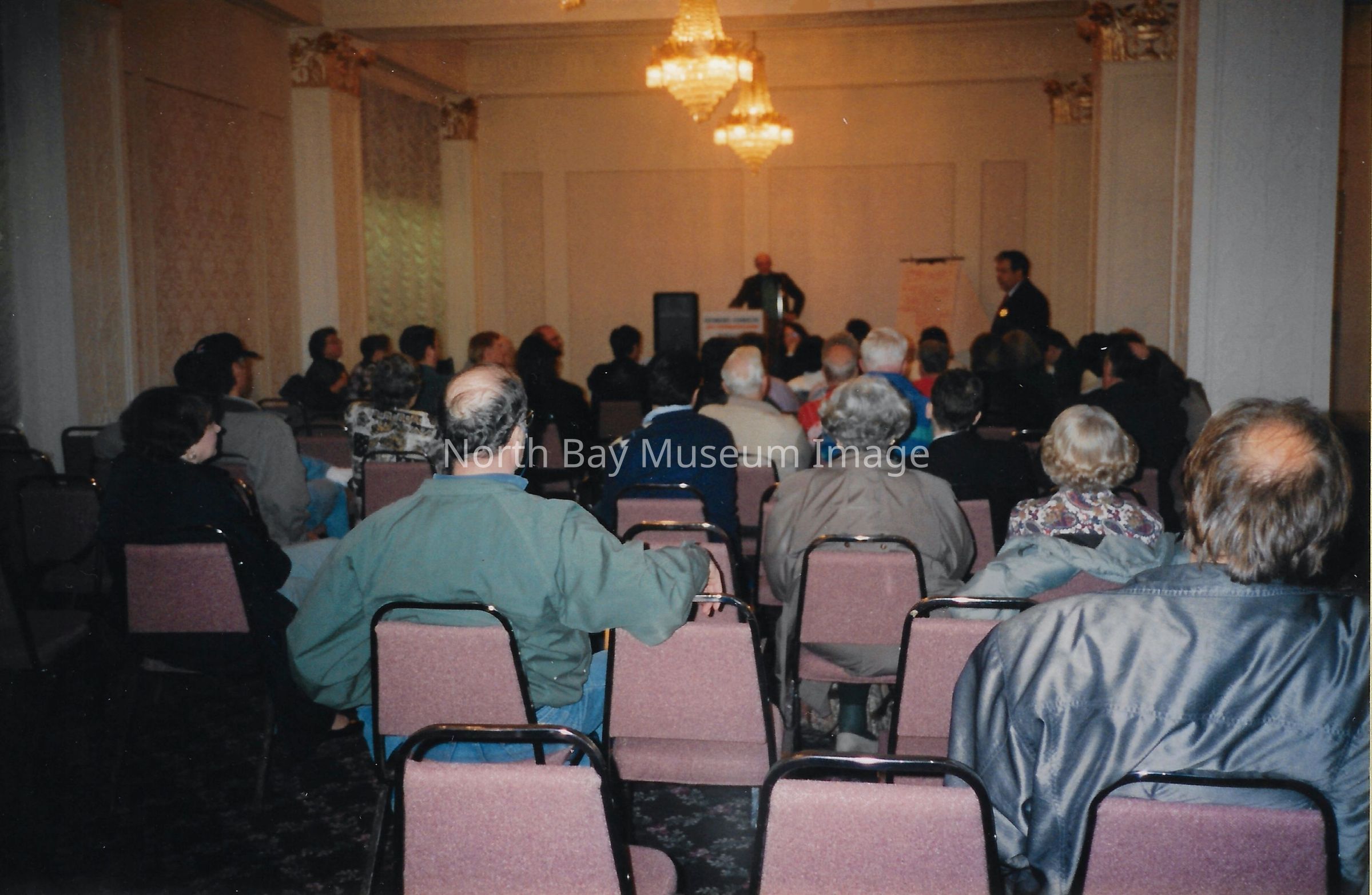 021.40.47a: Photo of conference at Empire Hotel. Inscription: "Museum's "Public Meeting" as part of "Planning Study" April '95 at Empire Hotel (Howard Johnson) Pam Handley".