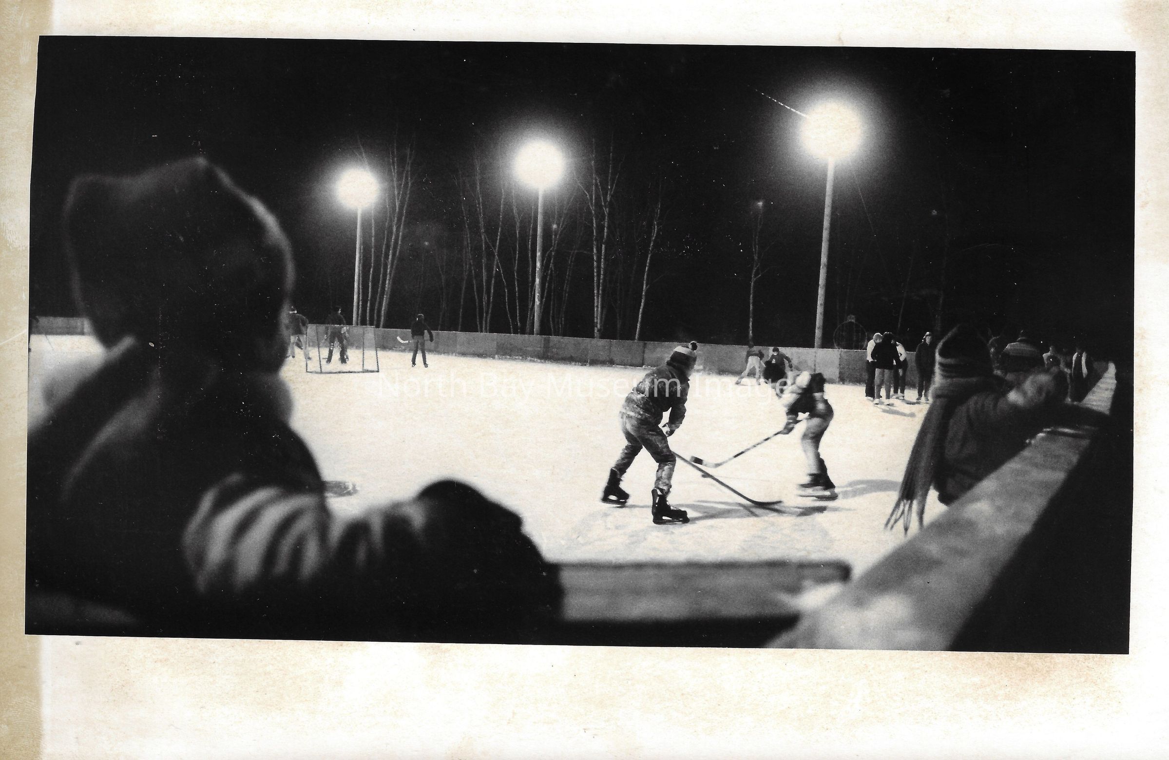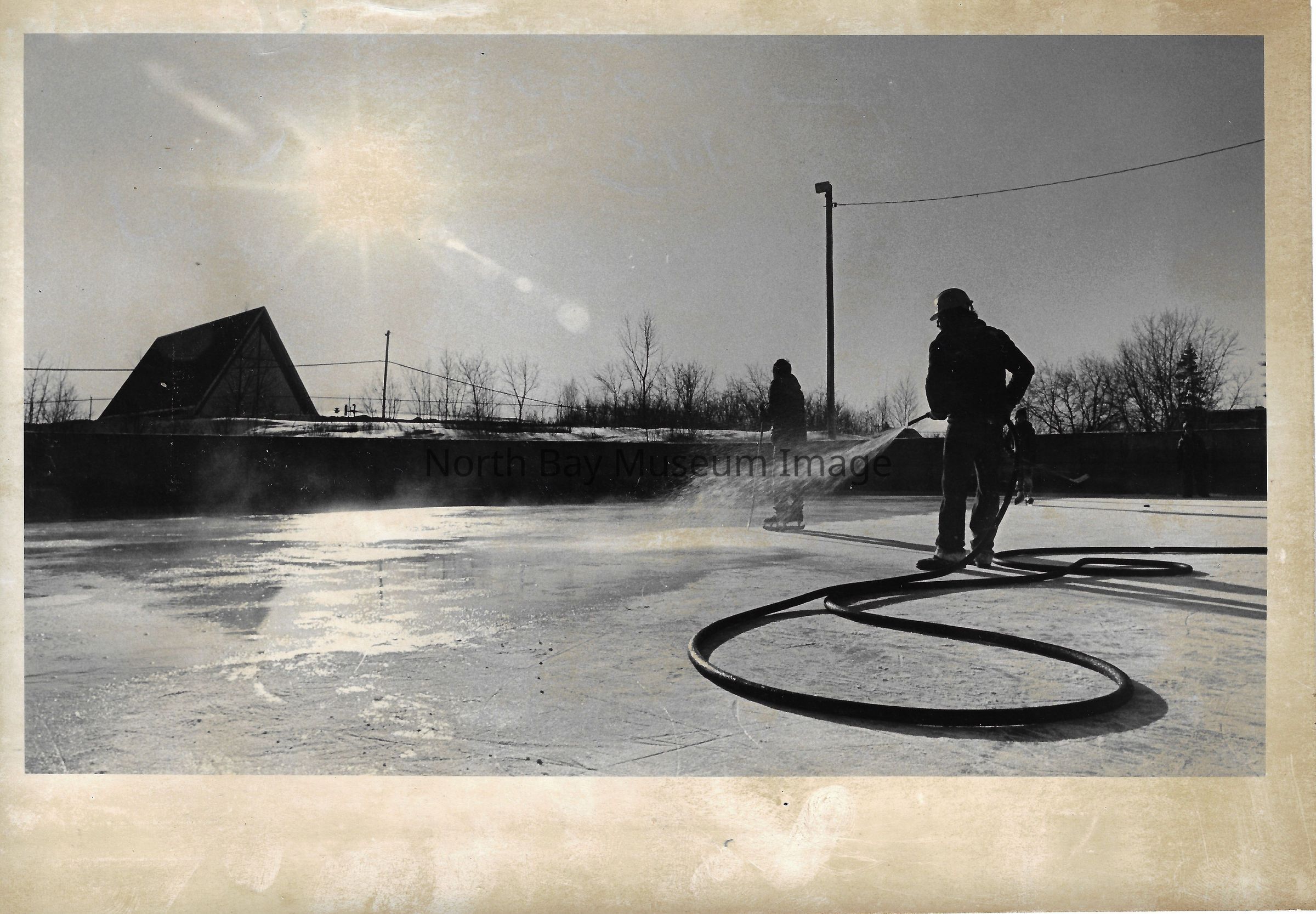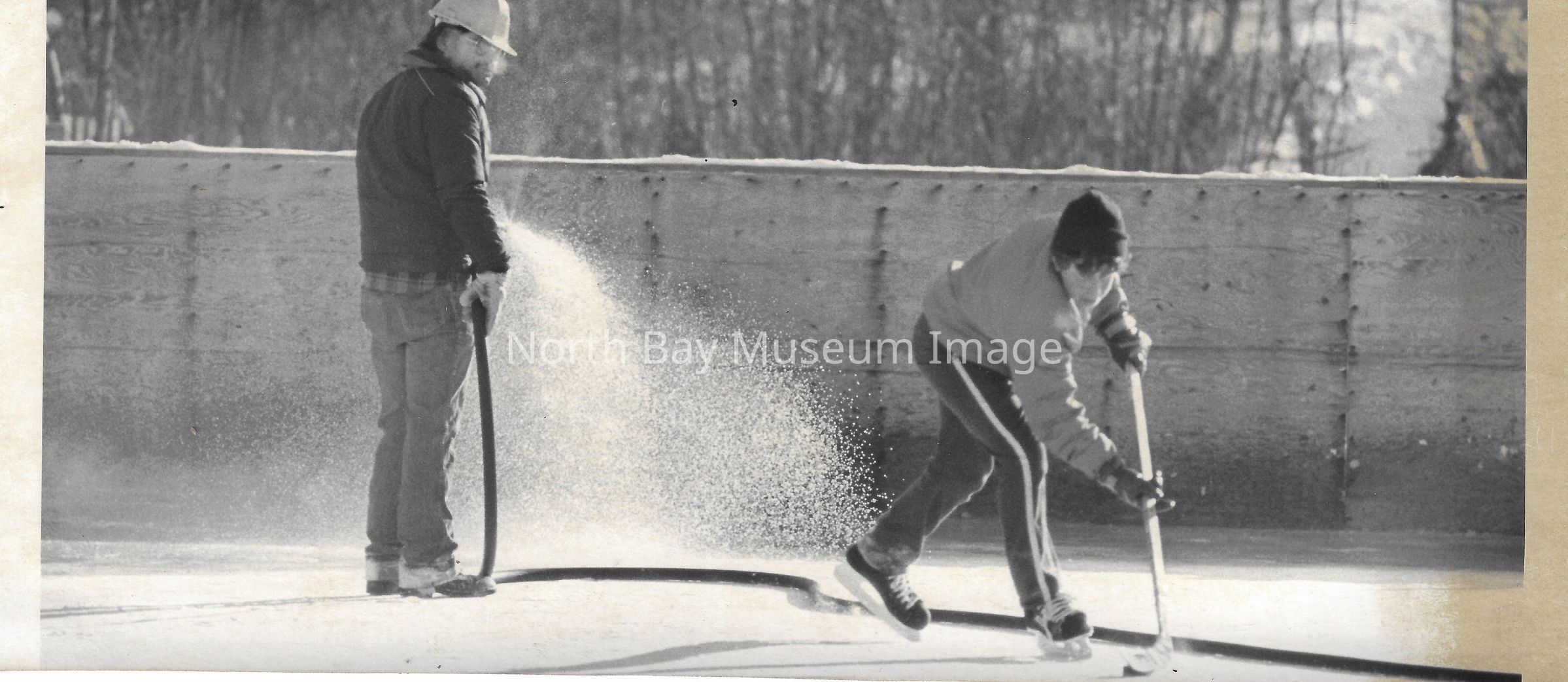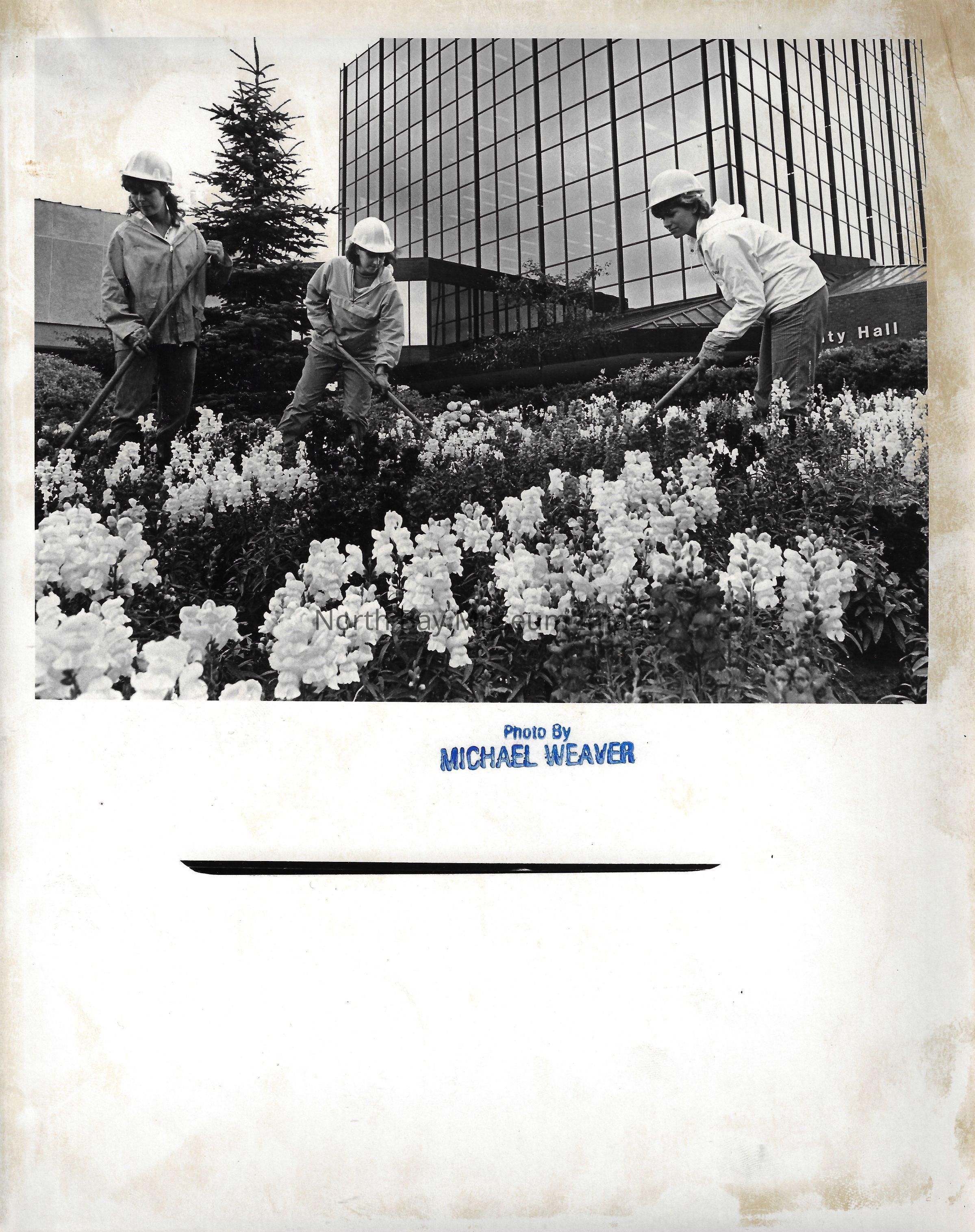 Photos of hockey rink, beach, and city gardeners.