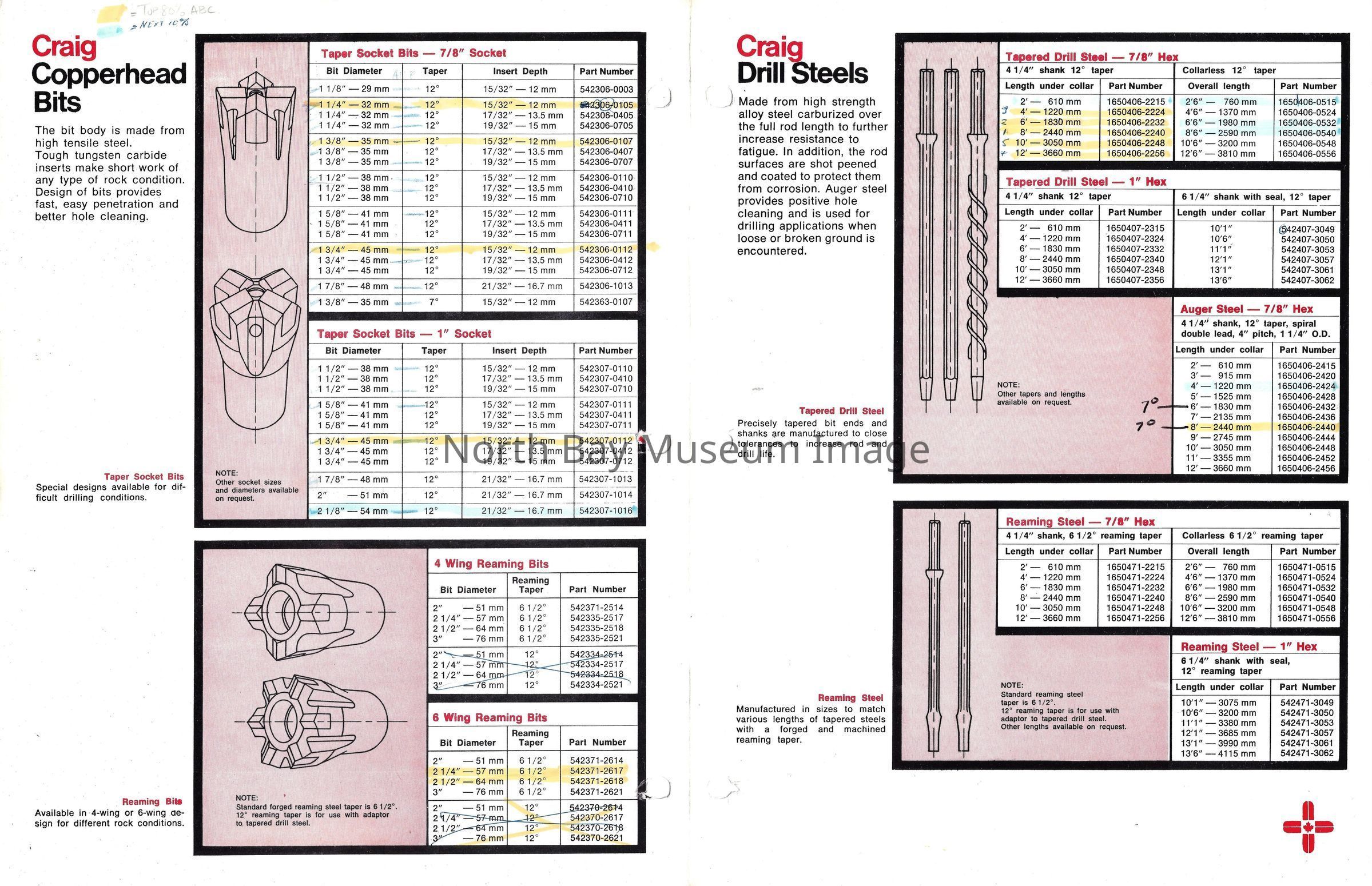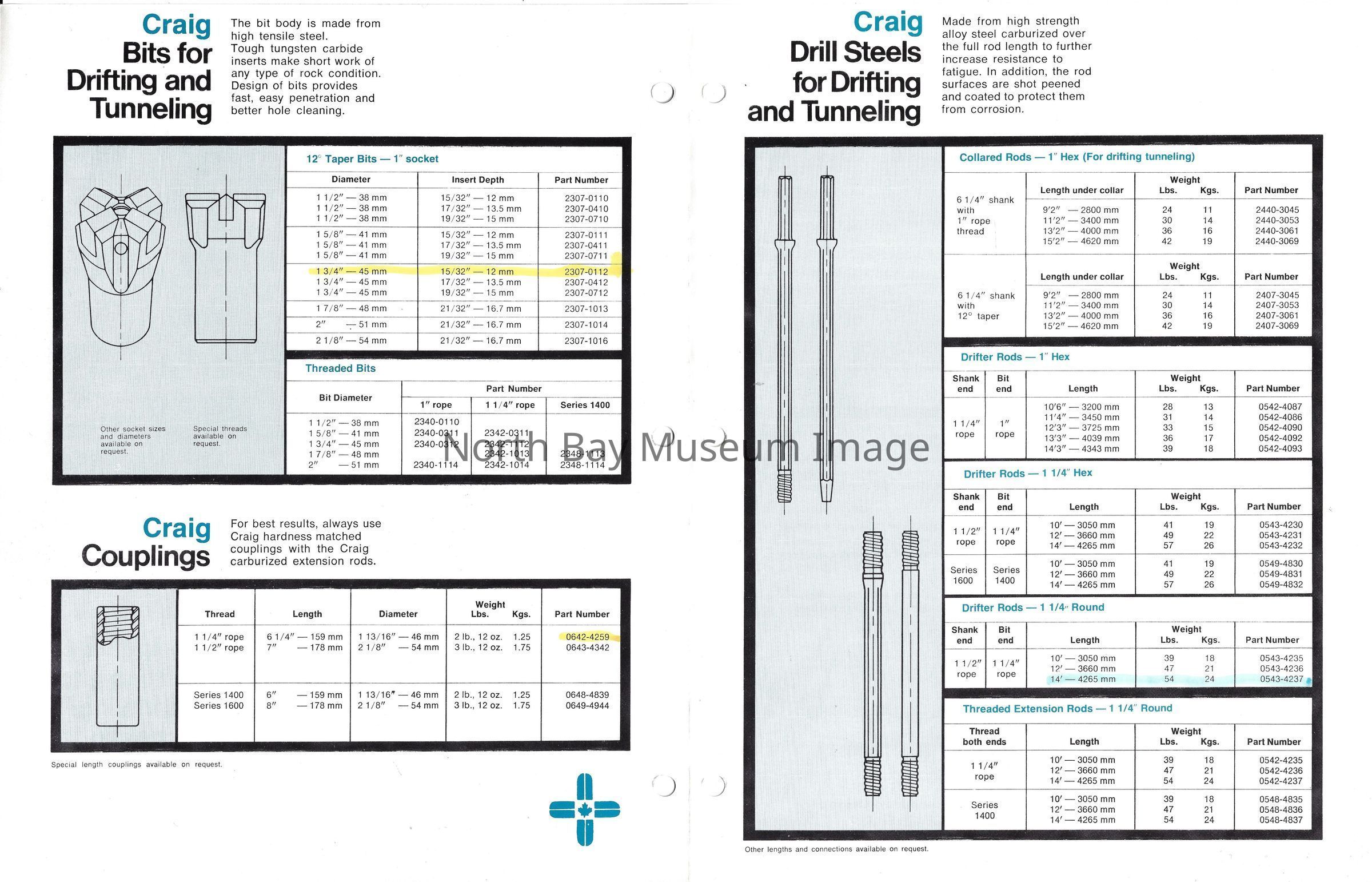 Various booklets and periodicals. Subjects include: "Craig Track Drilling Accessories", "Drifting and Tunneling", "Copperhead Bits and Drill Steels", "Carbide Bits", "KENROC", "Catalog", "PRODUCTS FOR MINING QUARRYING and CONSTRUCTION", "JOY CRAIG Roll-Away Raise Machine".Creator