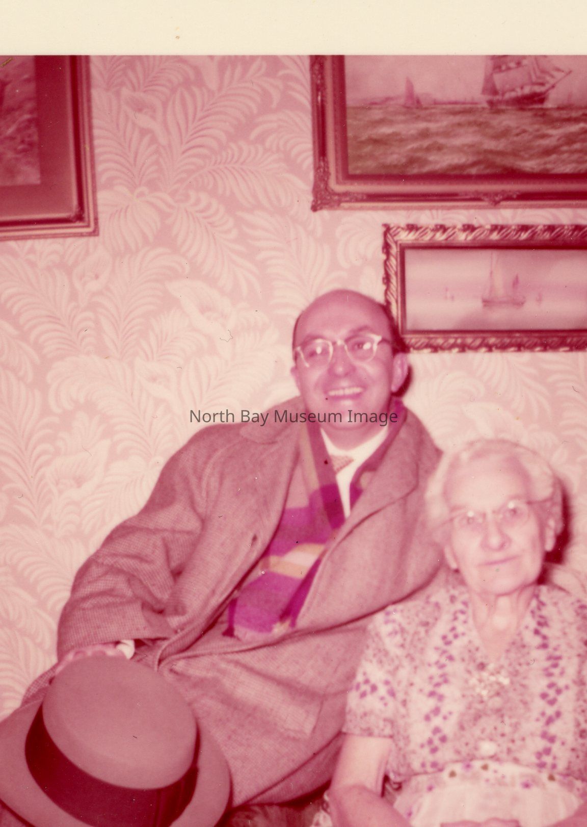 Photograph of Pete Desmoreau and Laura Elston, who was married to Frank Elston, inside the Elston home.