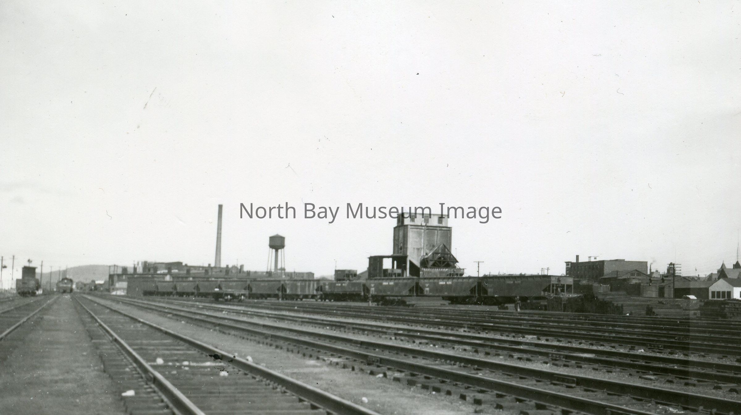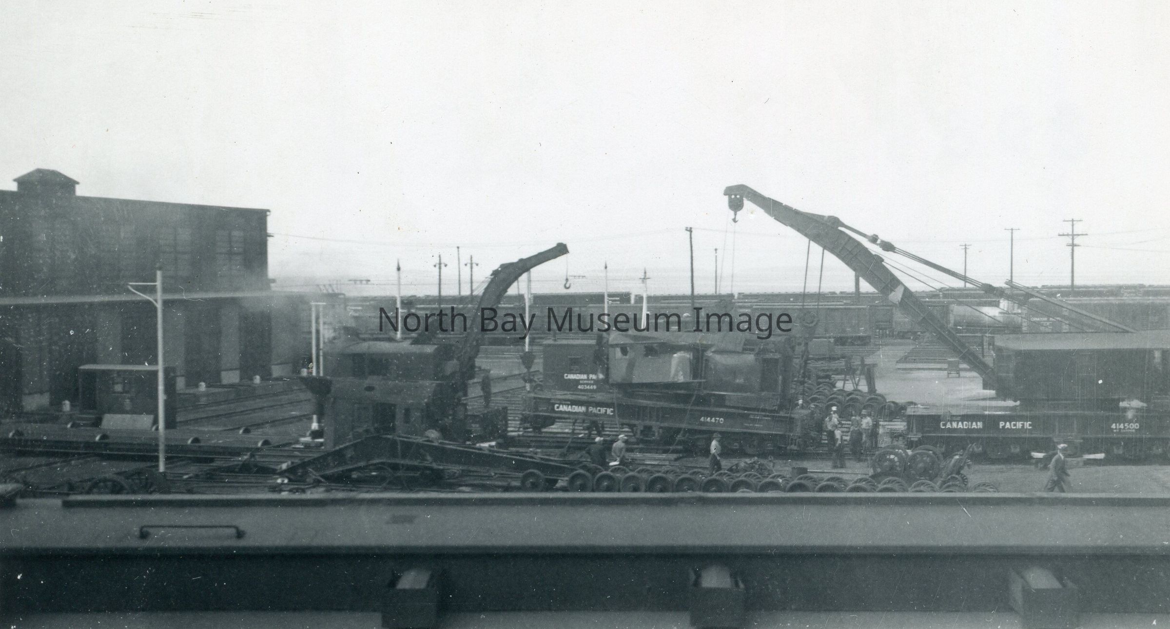 Photos of Canadian Pacific rail yards and related in North Bay. Black and white and colour photos are present.