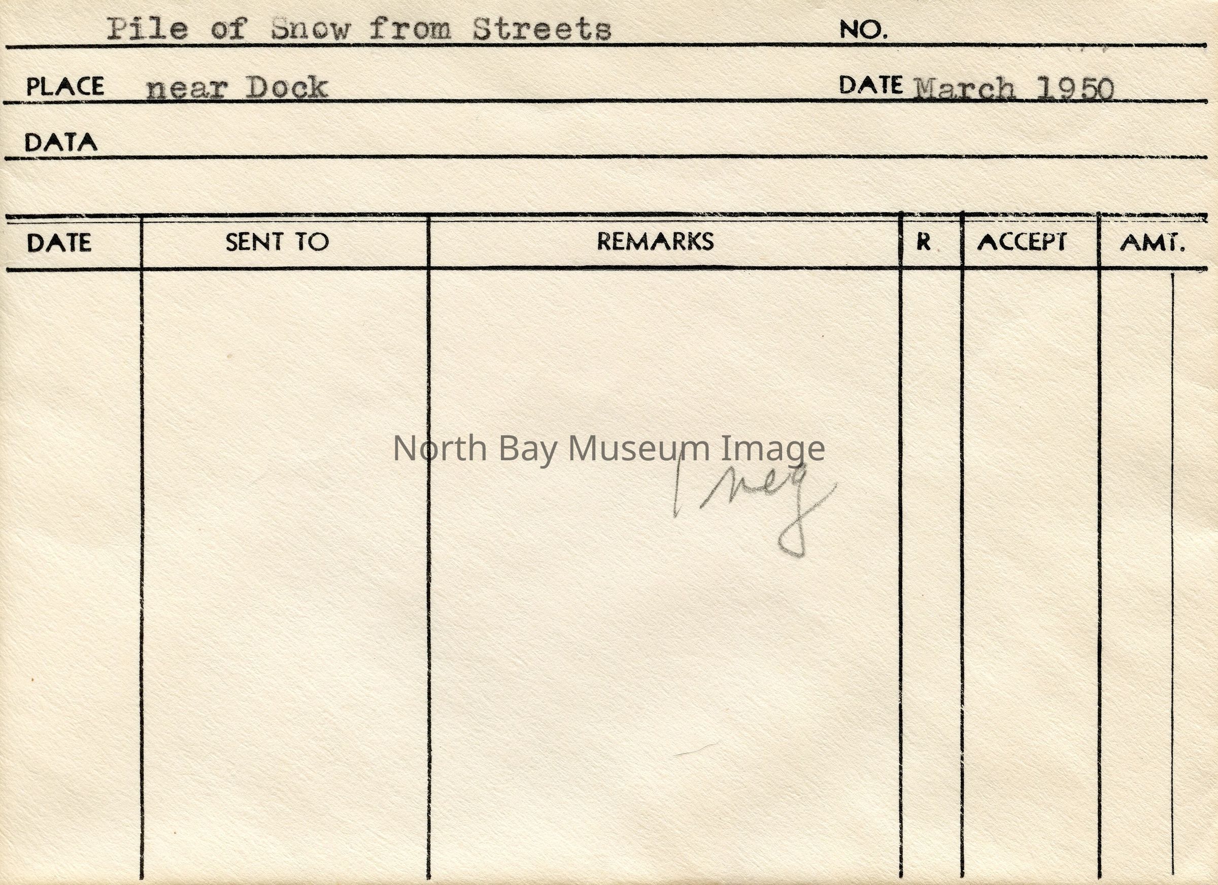 The photographer's envelope (a) contains the negative (b) of the close up shot on a large snow pile that has collected from the streets outside. There is no record of where this image was taken, however the envelope indicates it was taken 'near the dock.' A part of the Forder Collection.Creator