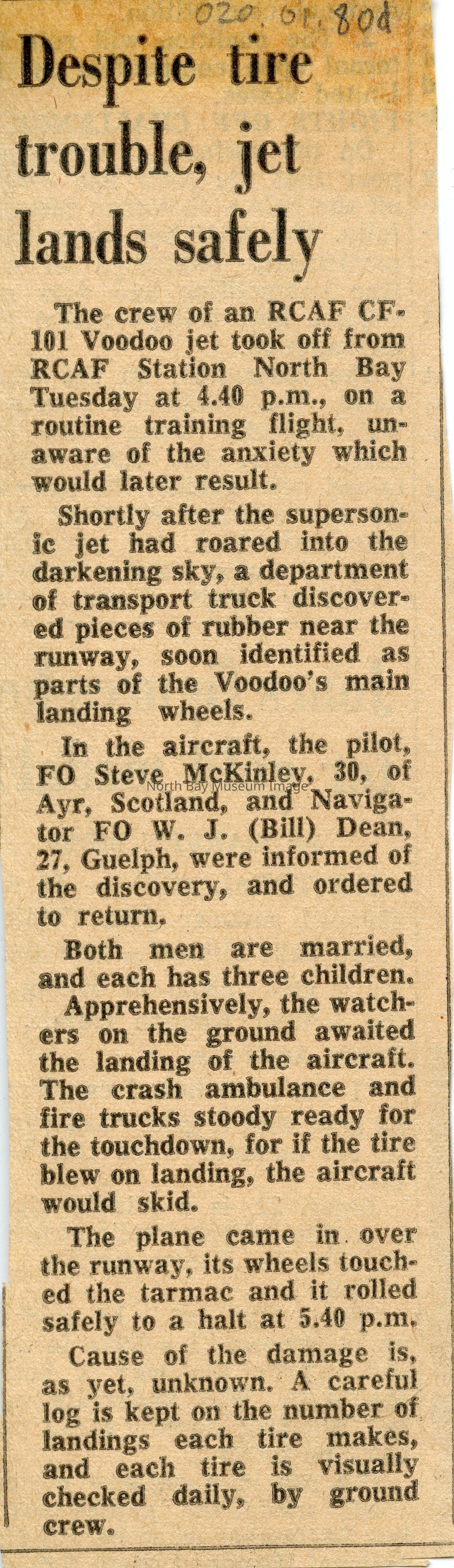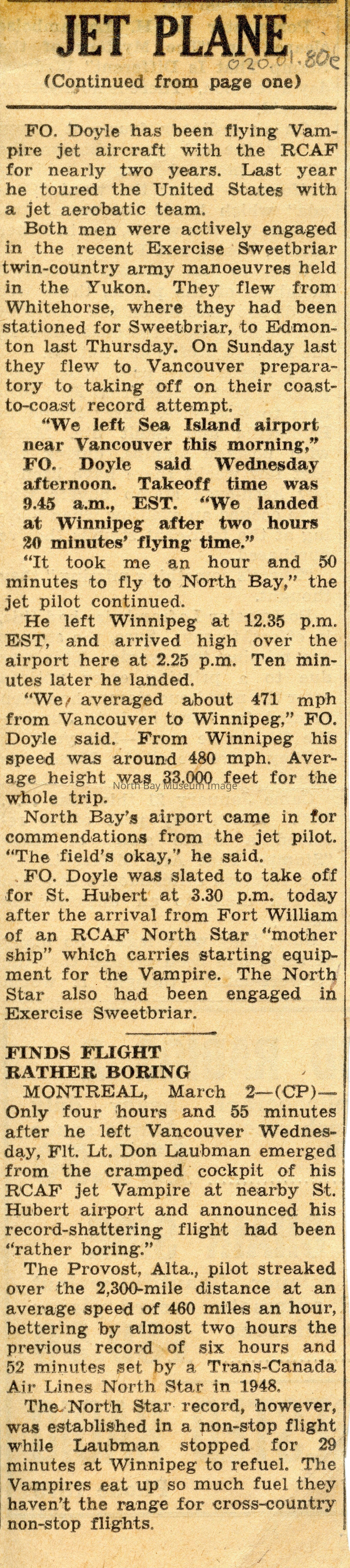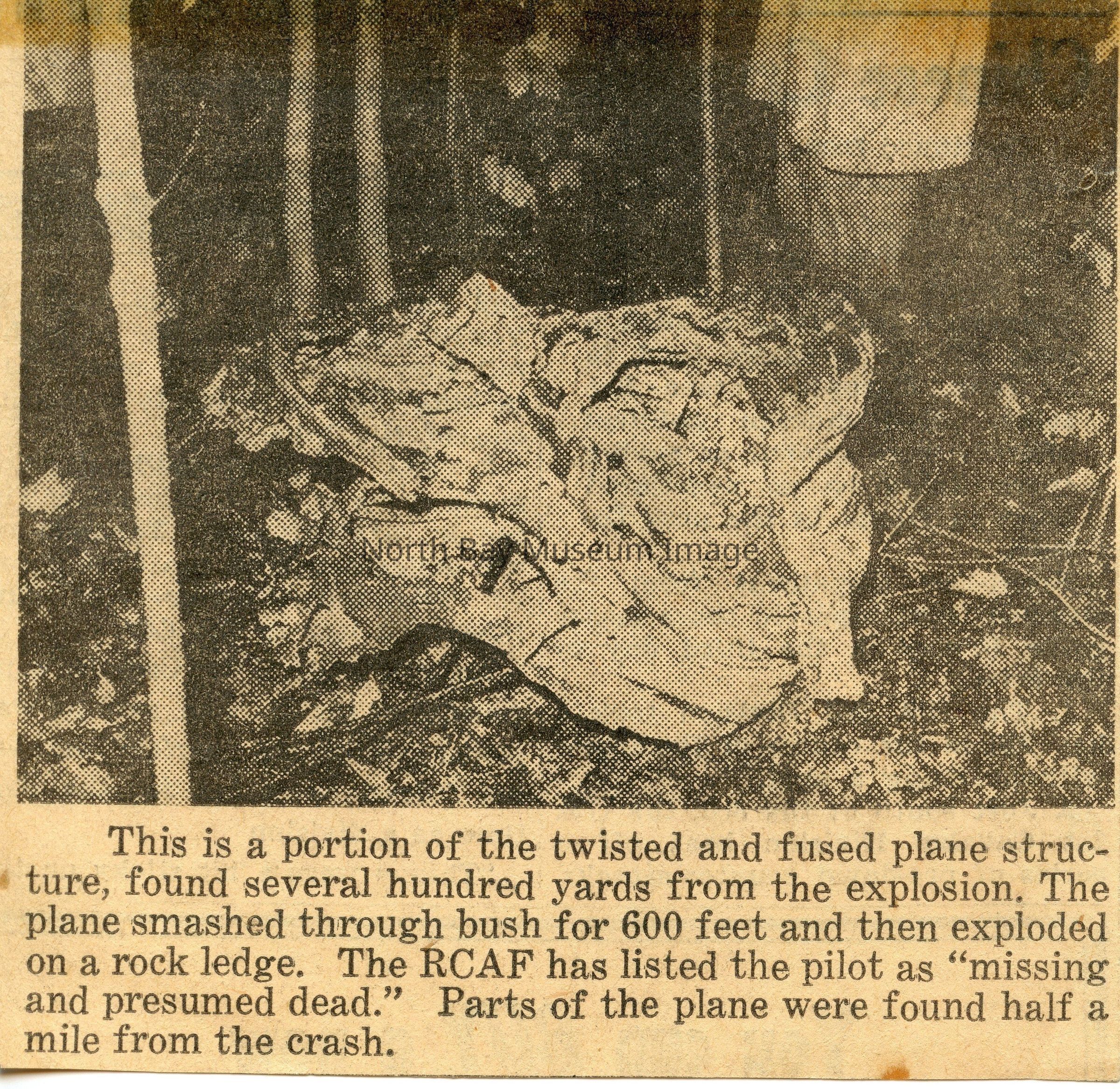 North Bay nugget clippings about various flights/incidents.
