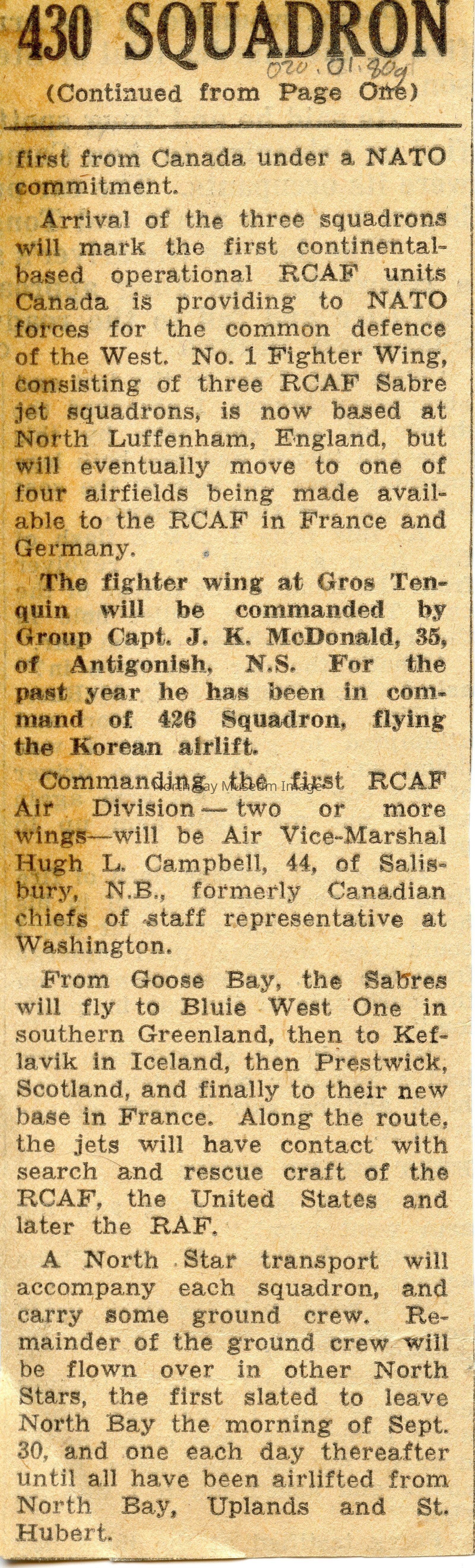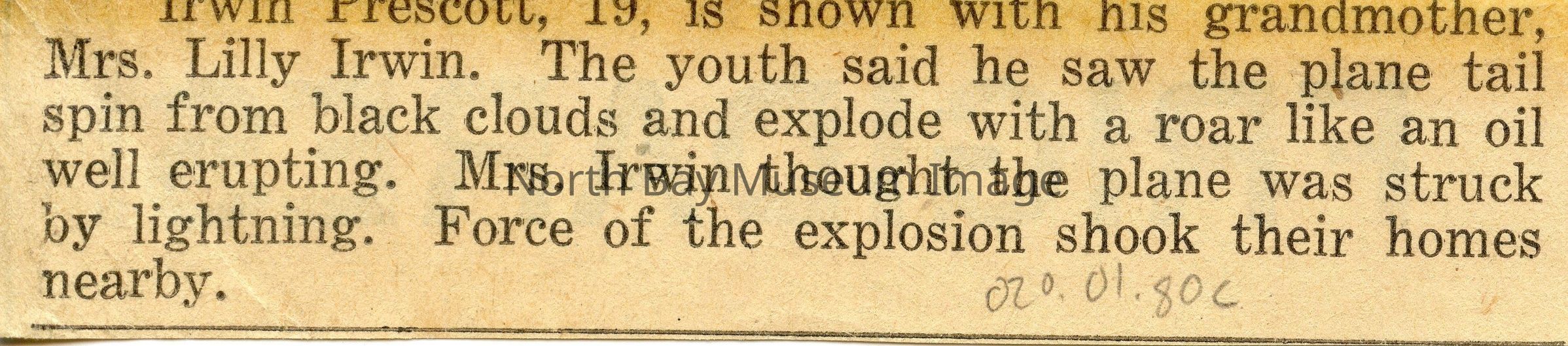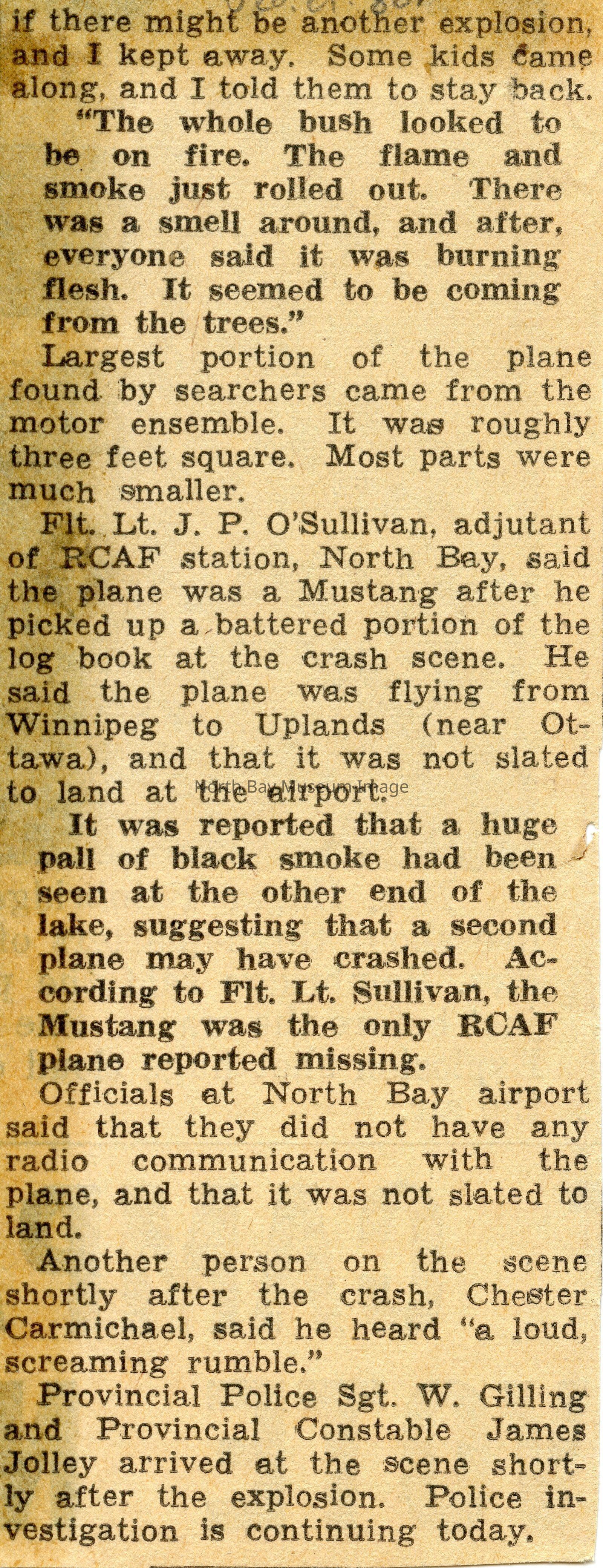 North Bay nugget clippings about various flights/incidents.