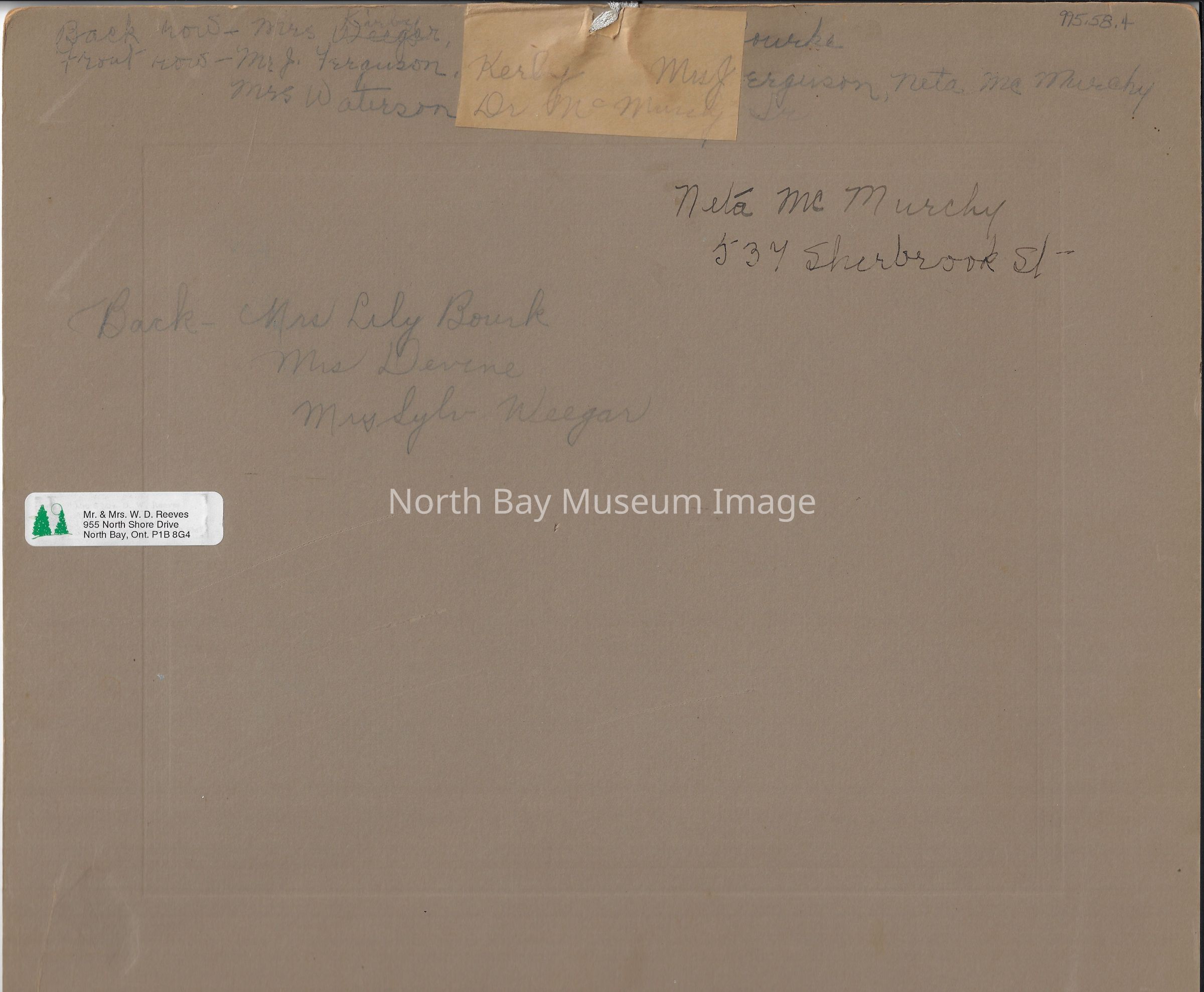 -In the lower right corner is a signature of J.A. Noel North Bay, ON.; and on the back is the name Neta McMurchy,