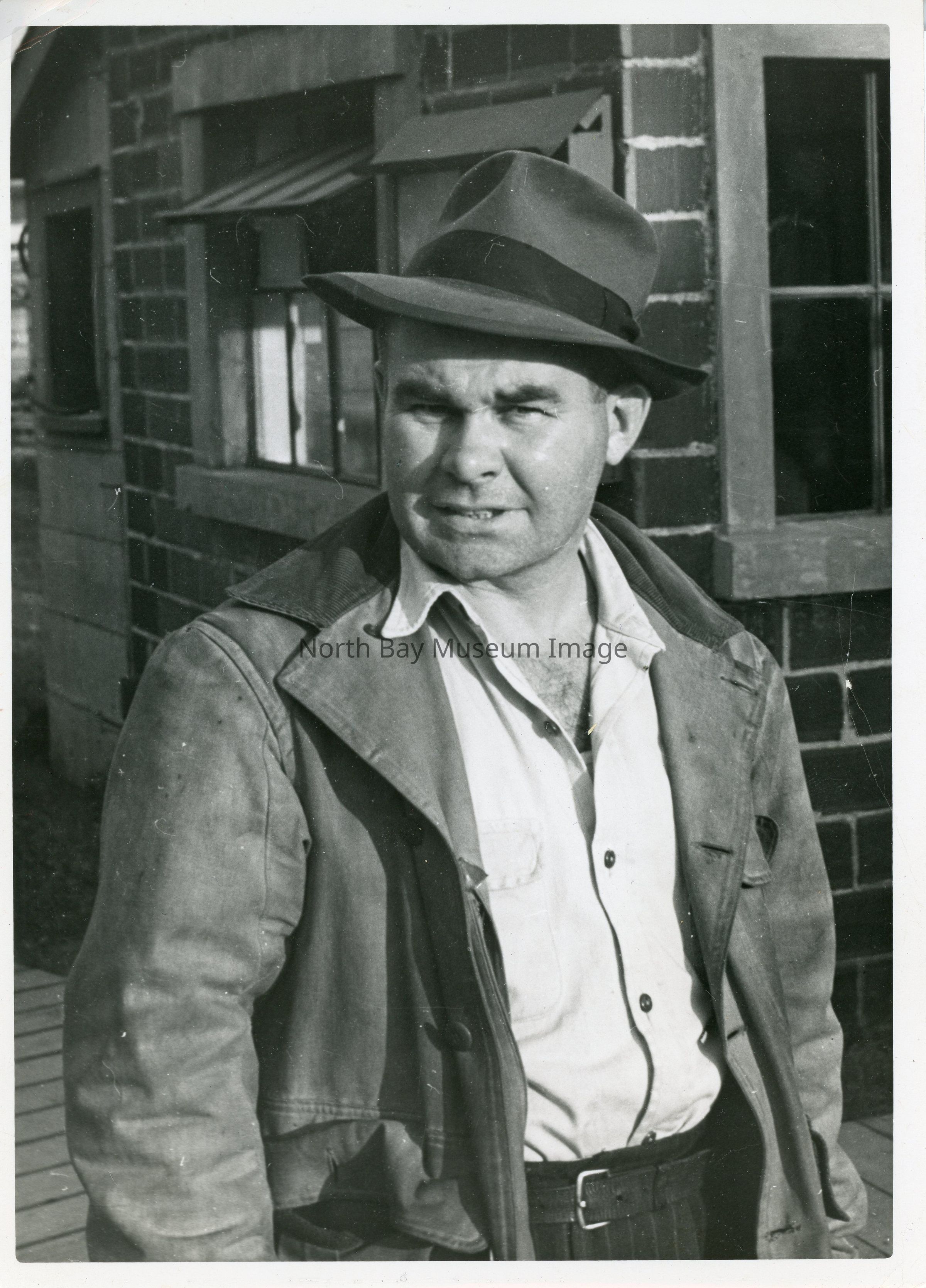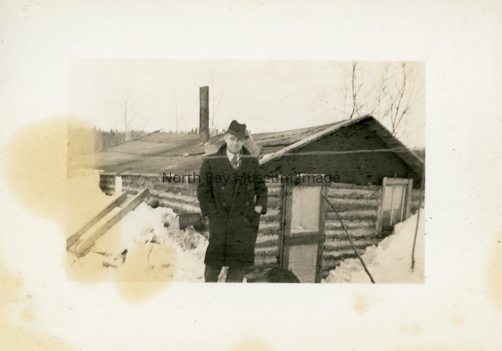 Photo of Ralph Elston outside cabin.
