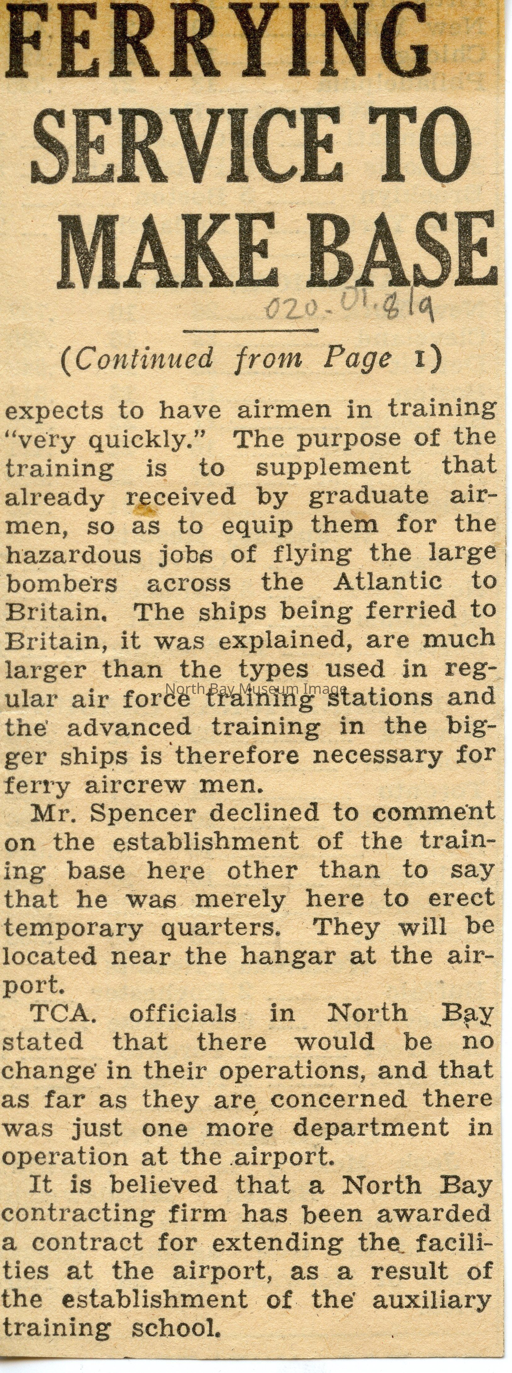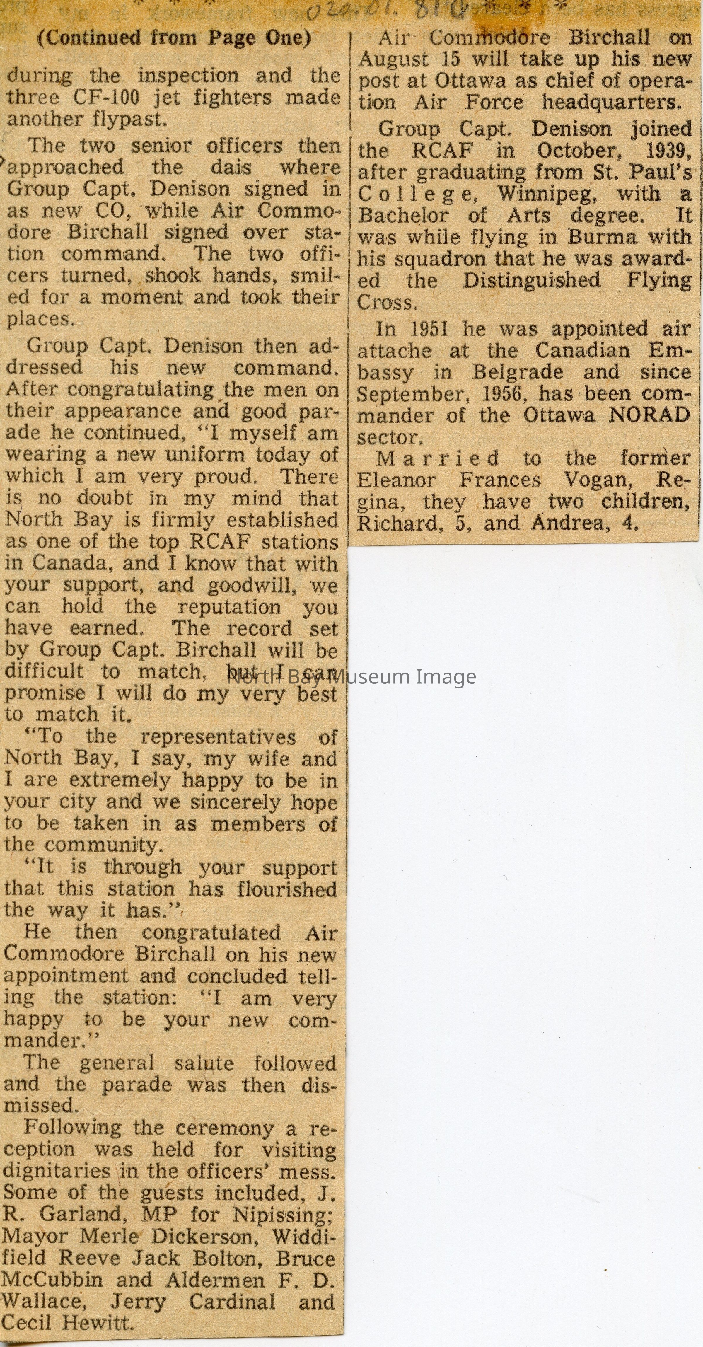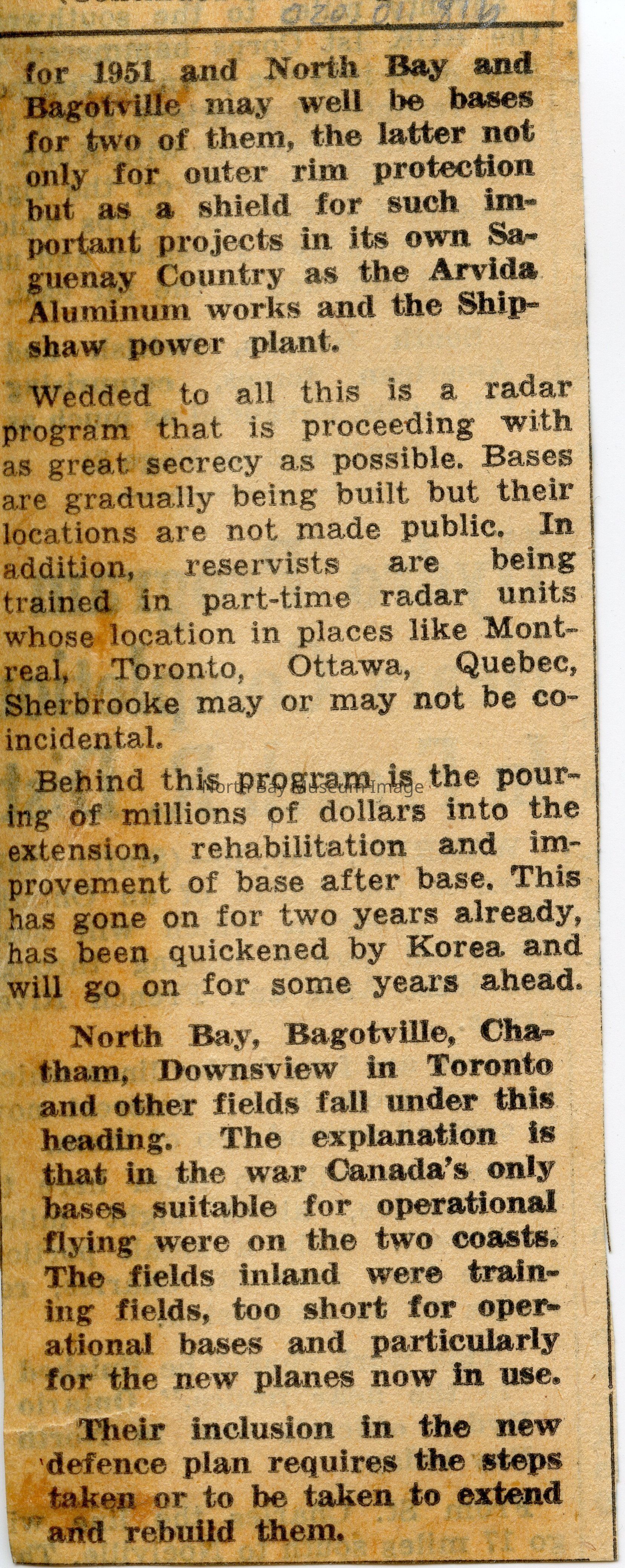 North Bay nugget clippings related to the RCAF station at the North Bay airpot.