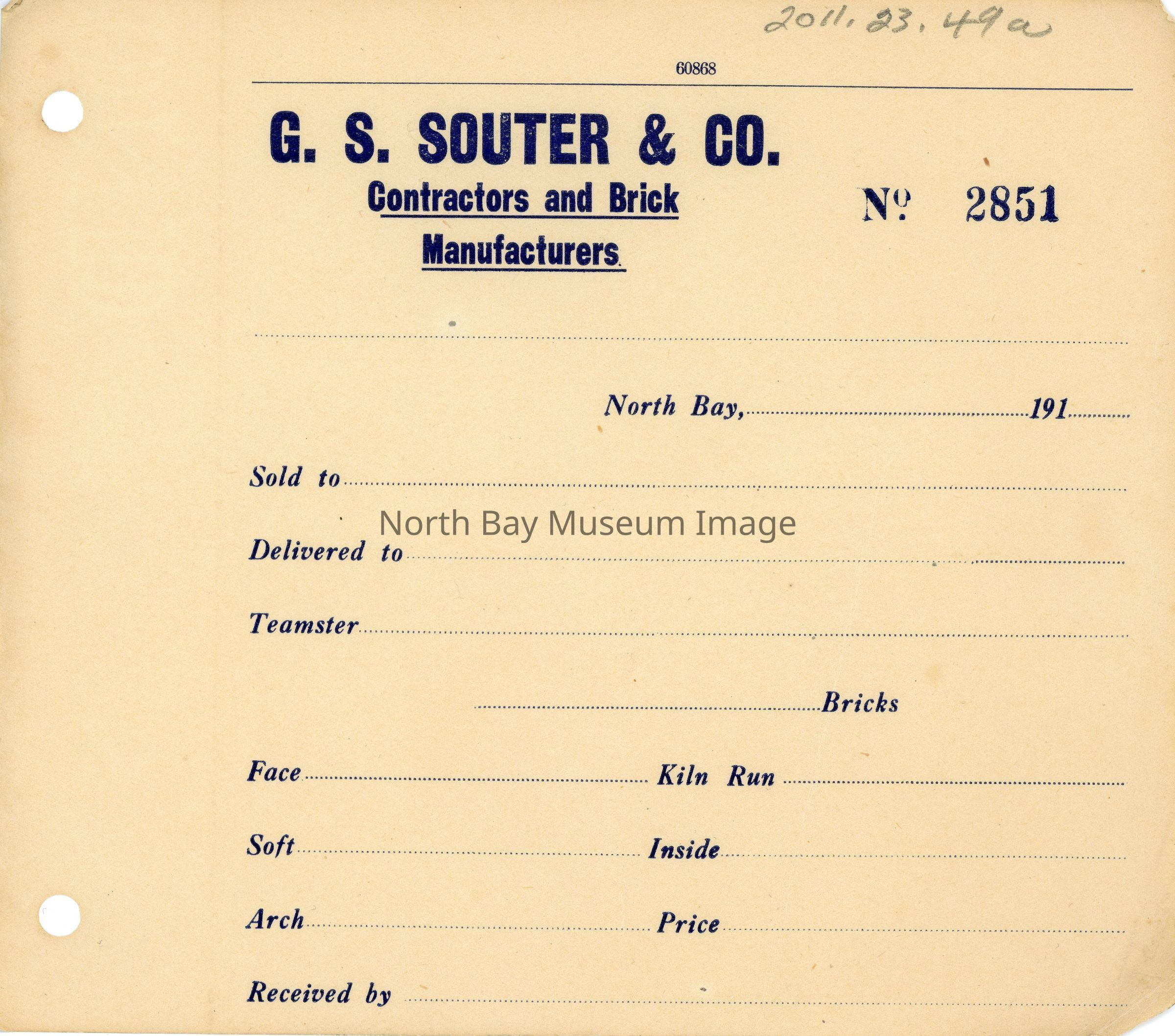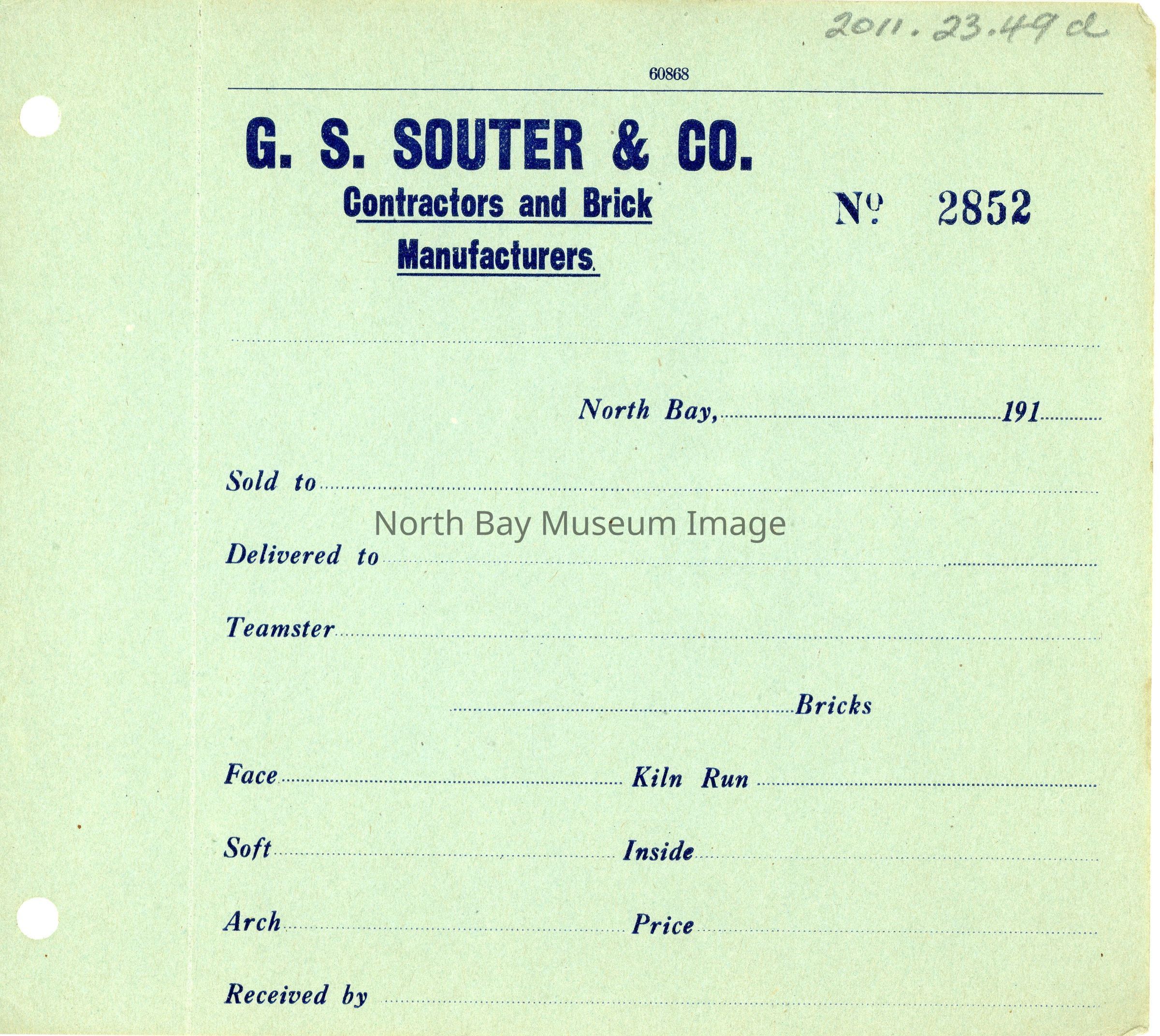 a-d Receipts from G.S. Souter & Co. Contractos and Brick Manufacturers