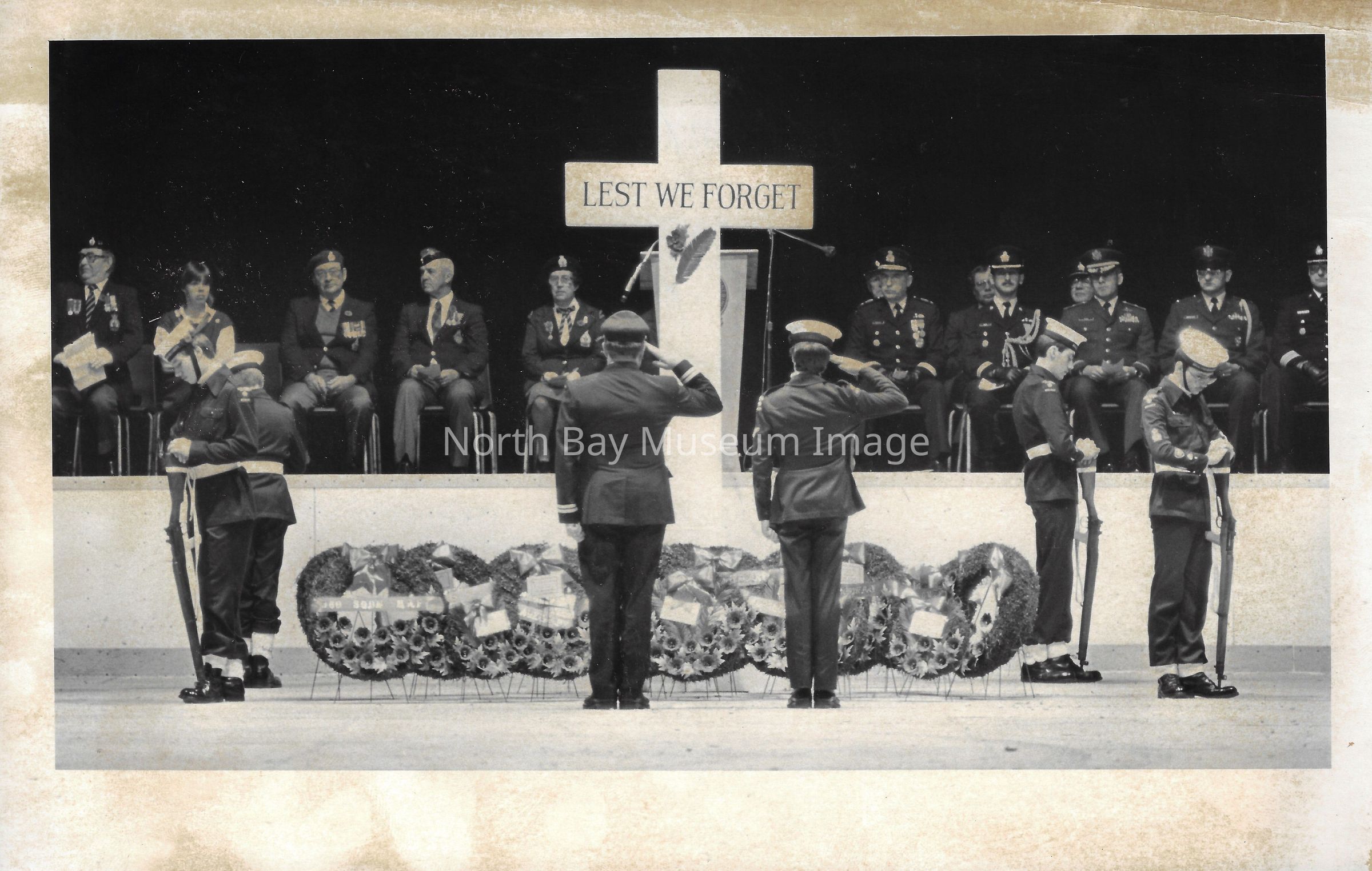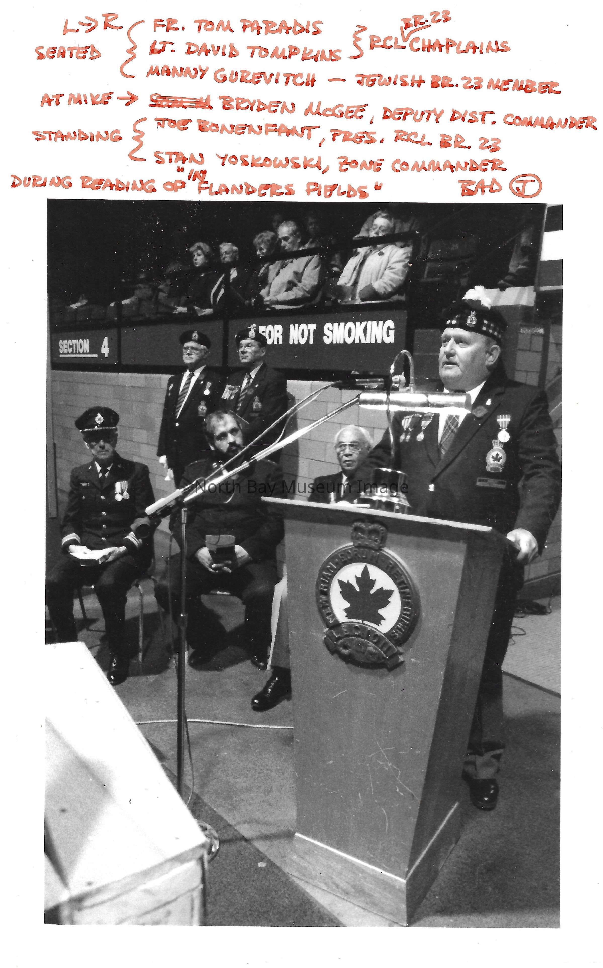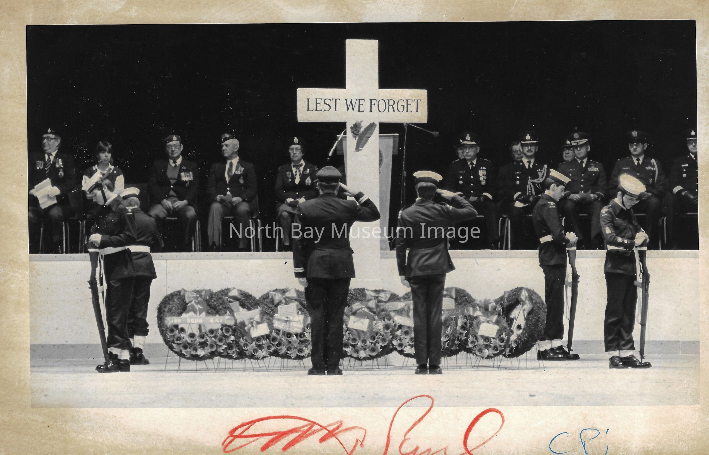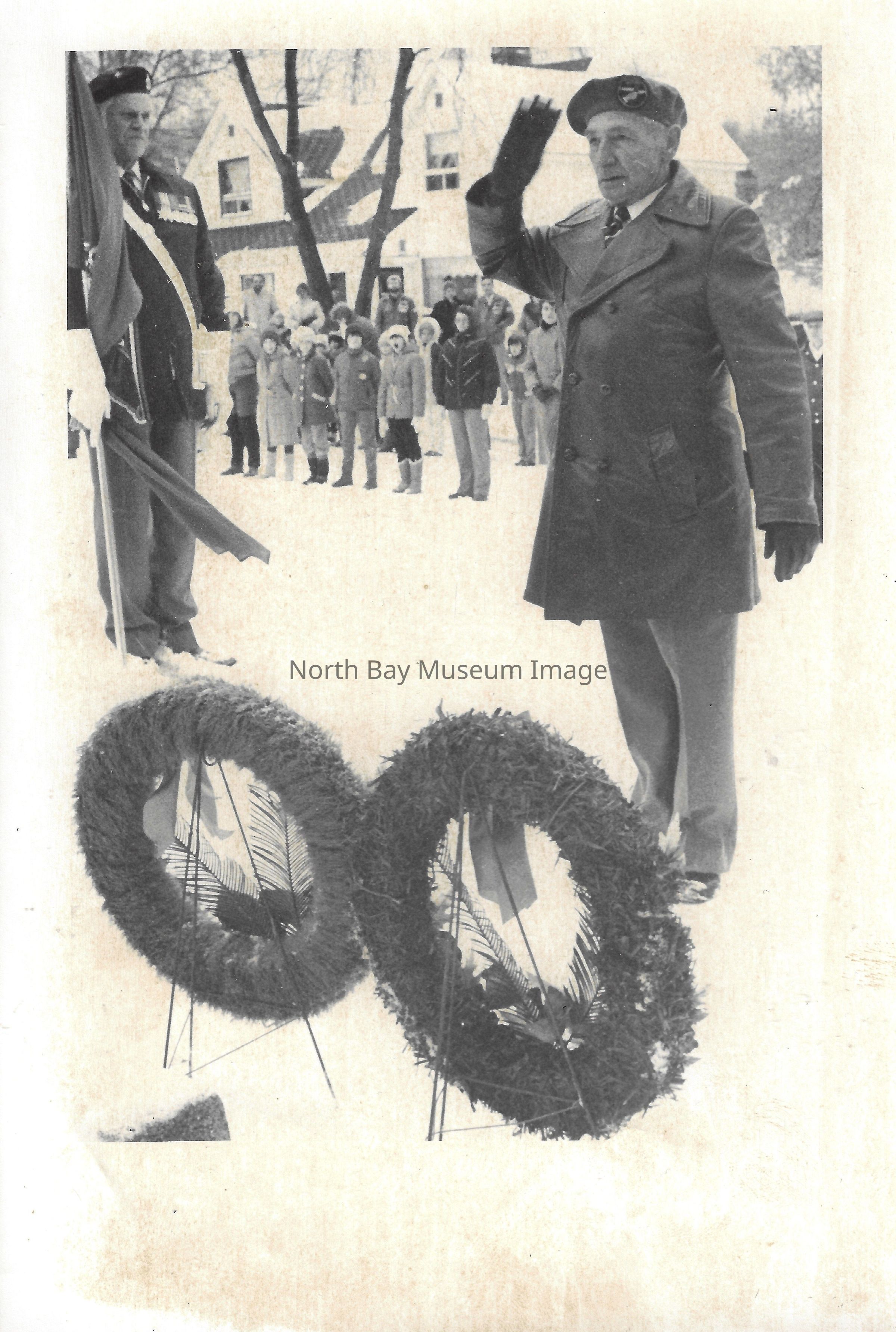 Photos of veterans, servicemen, and musicians at memorial park on remembrance day. 022.01.80as: Media information packet for remembrance day 1983.