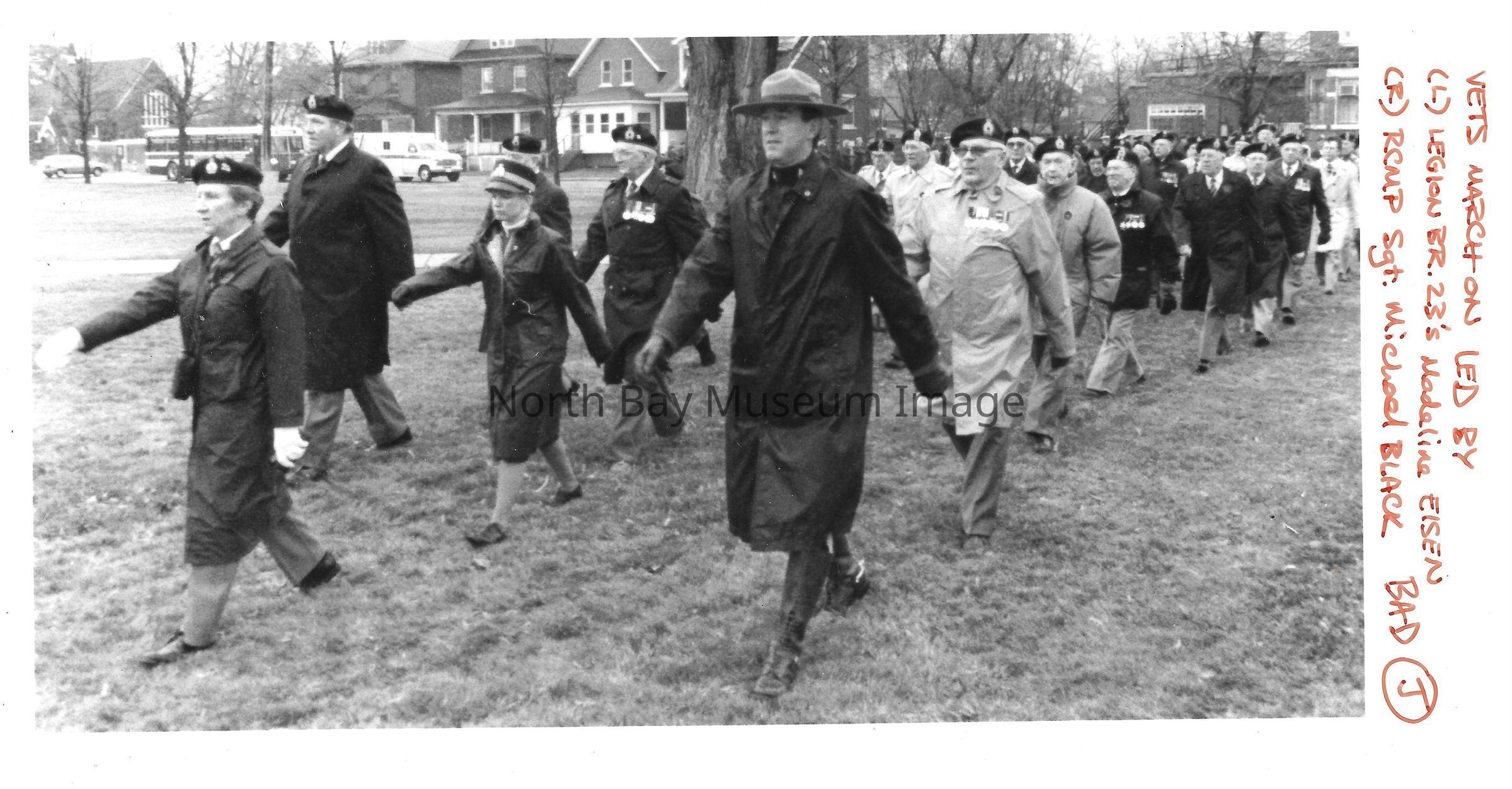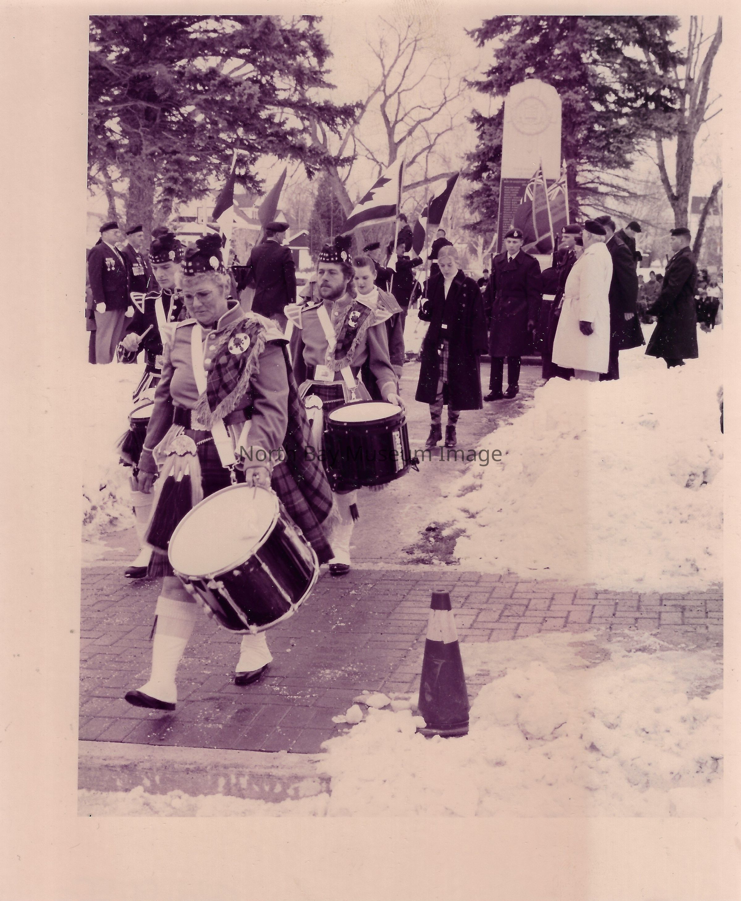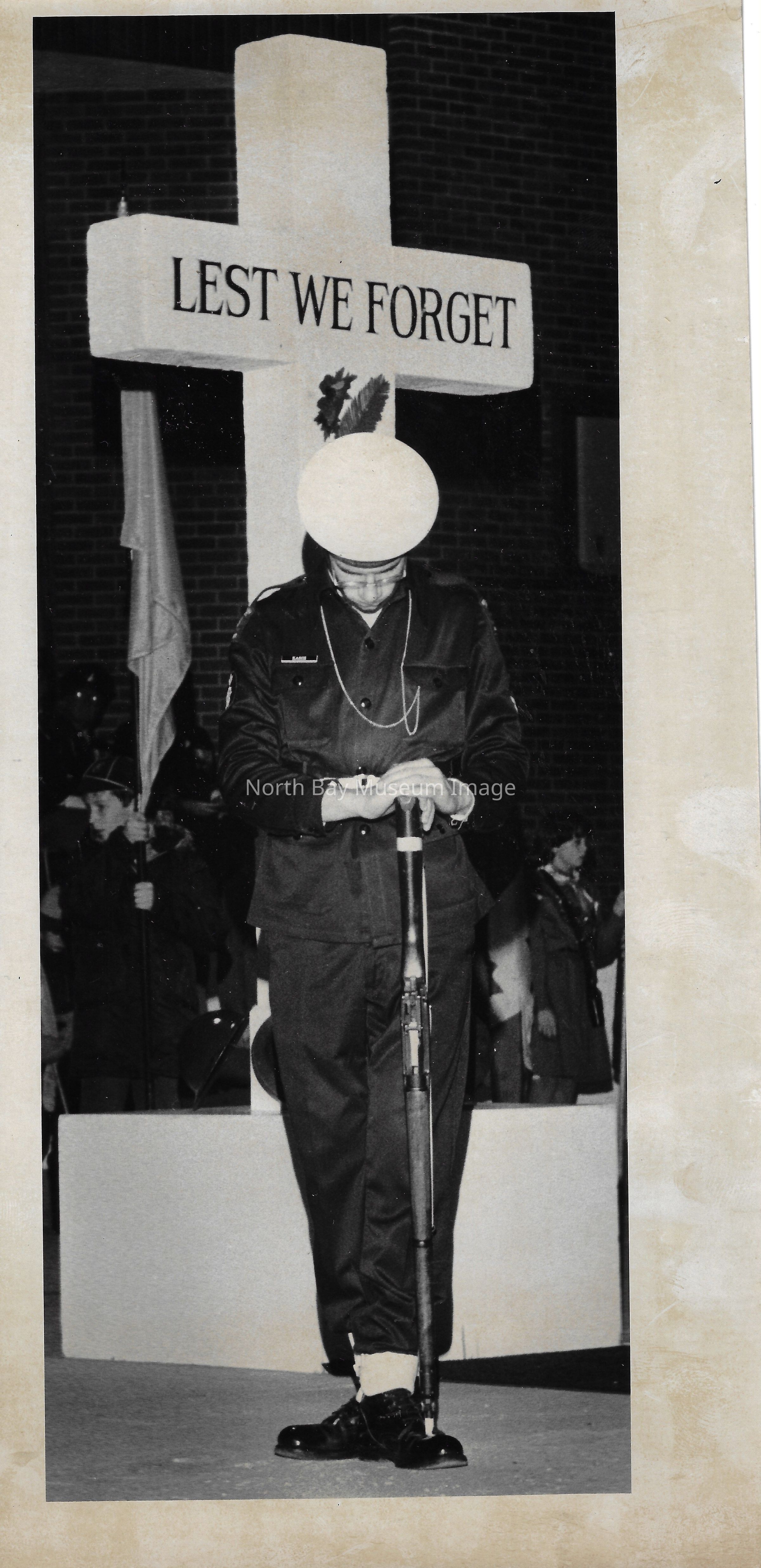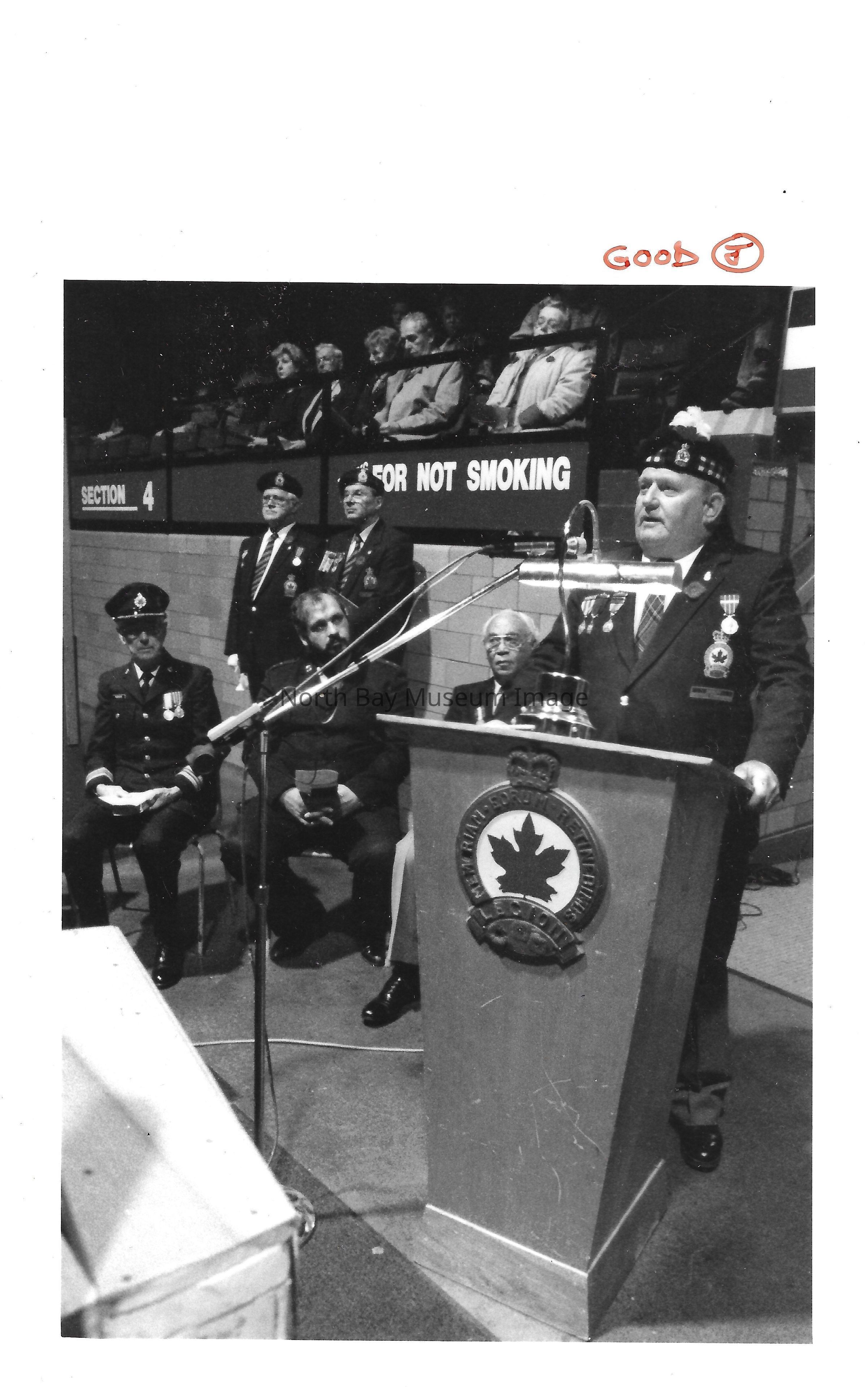 Photos of veterans, servicemen, and musicians at memorial park on remembrance day. 022.01.80as: Media information packet for remembrance day 1983.