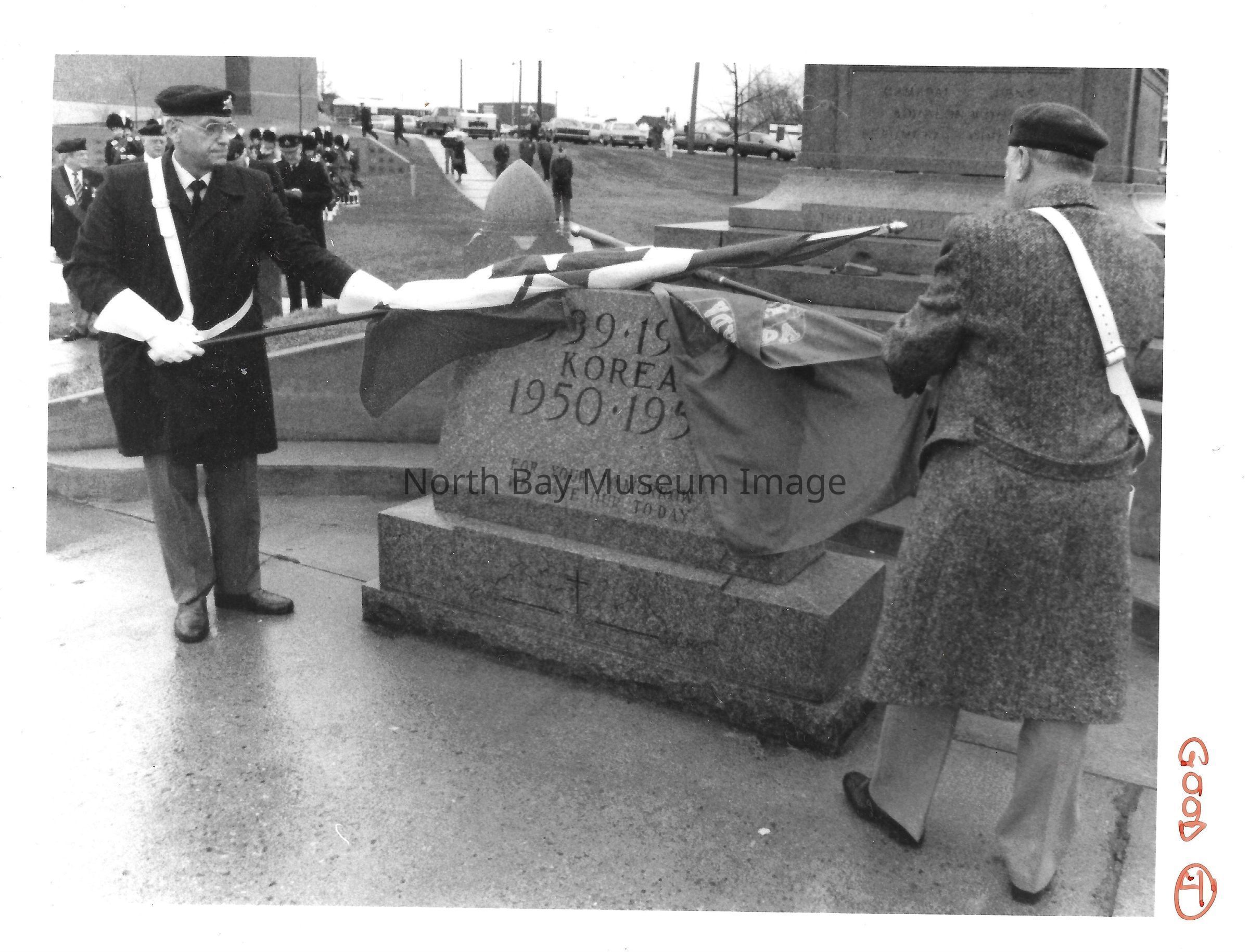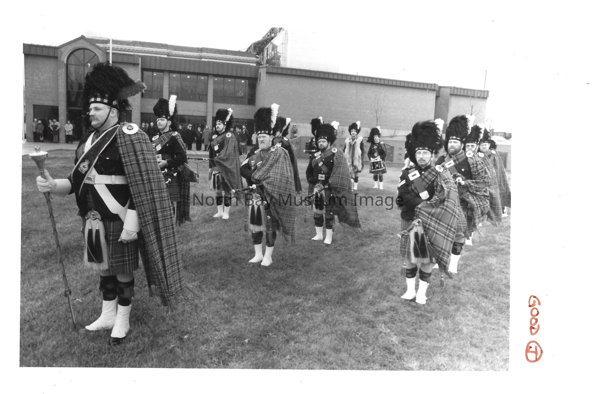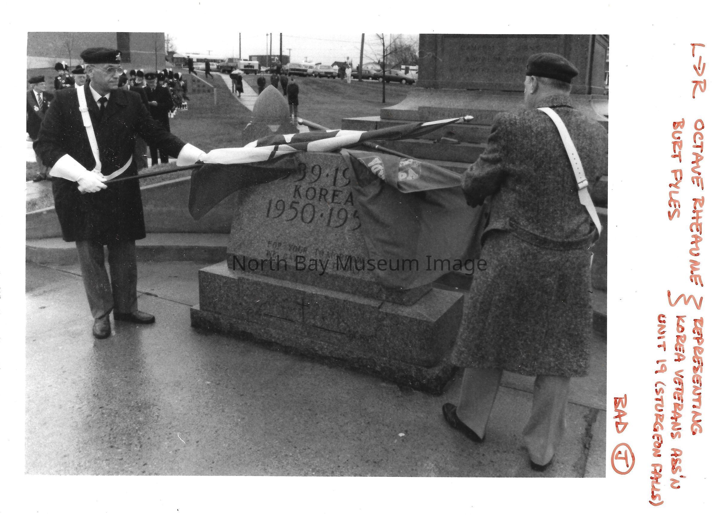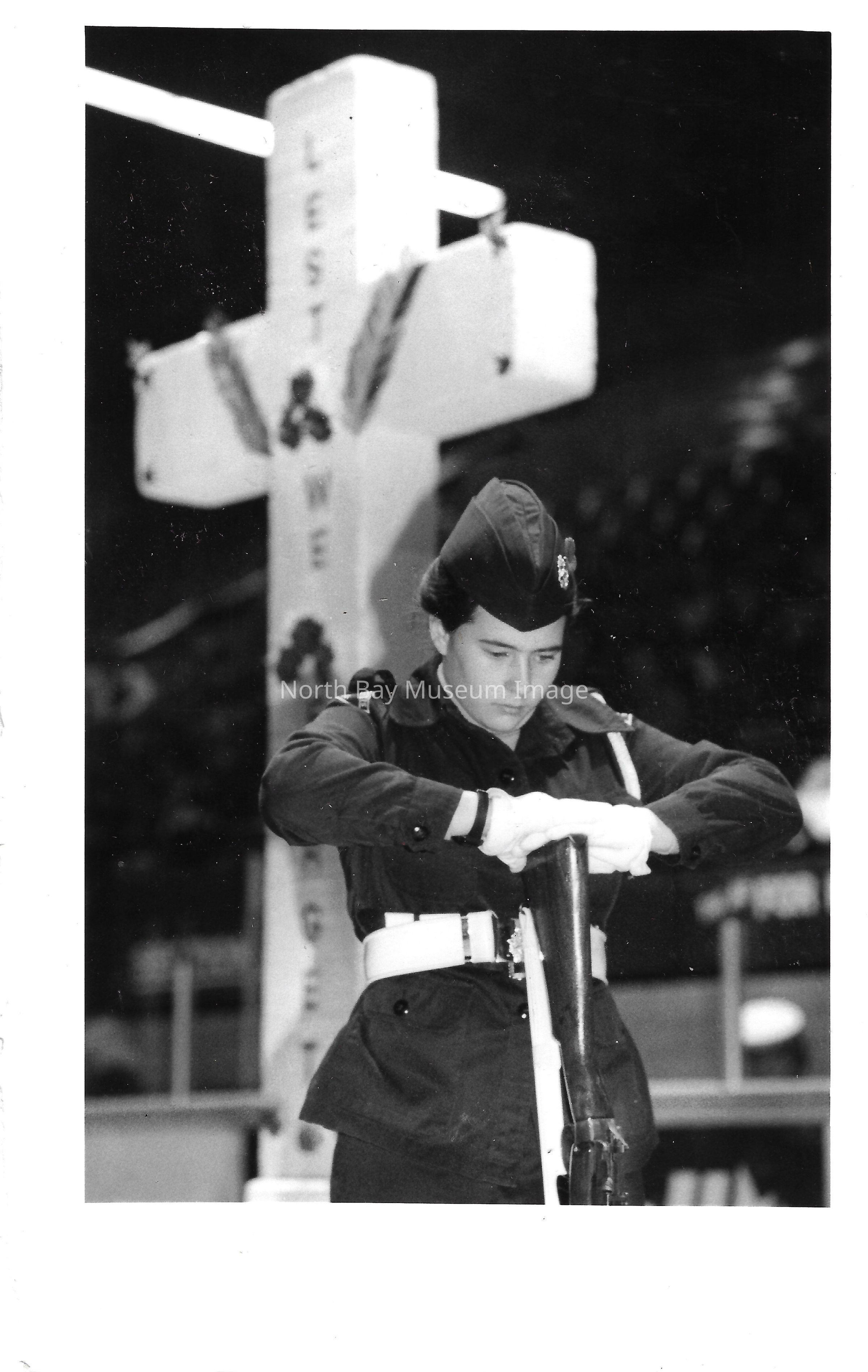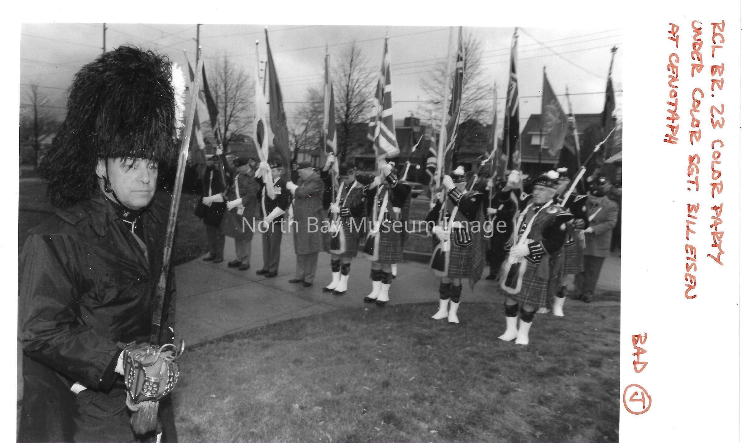 Photos of veterans, servicemen, and musicians at memorial park on remembrance day. 022.01.80as: Media information packet for remembrance day 1983.
