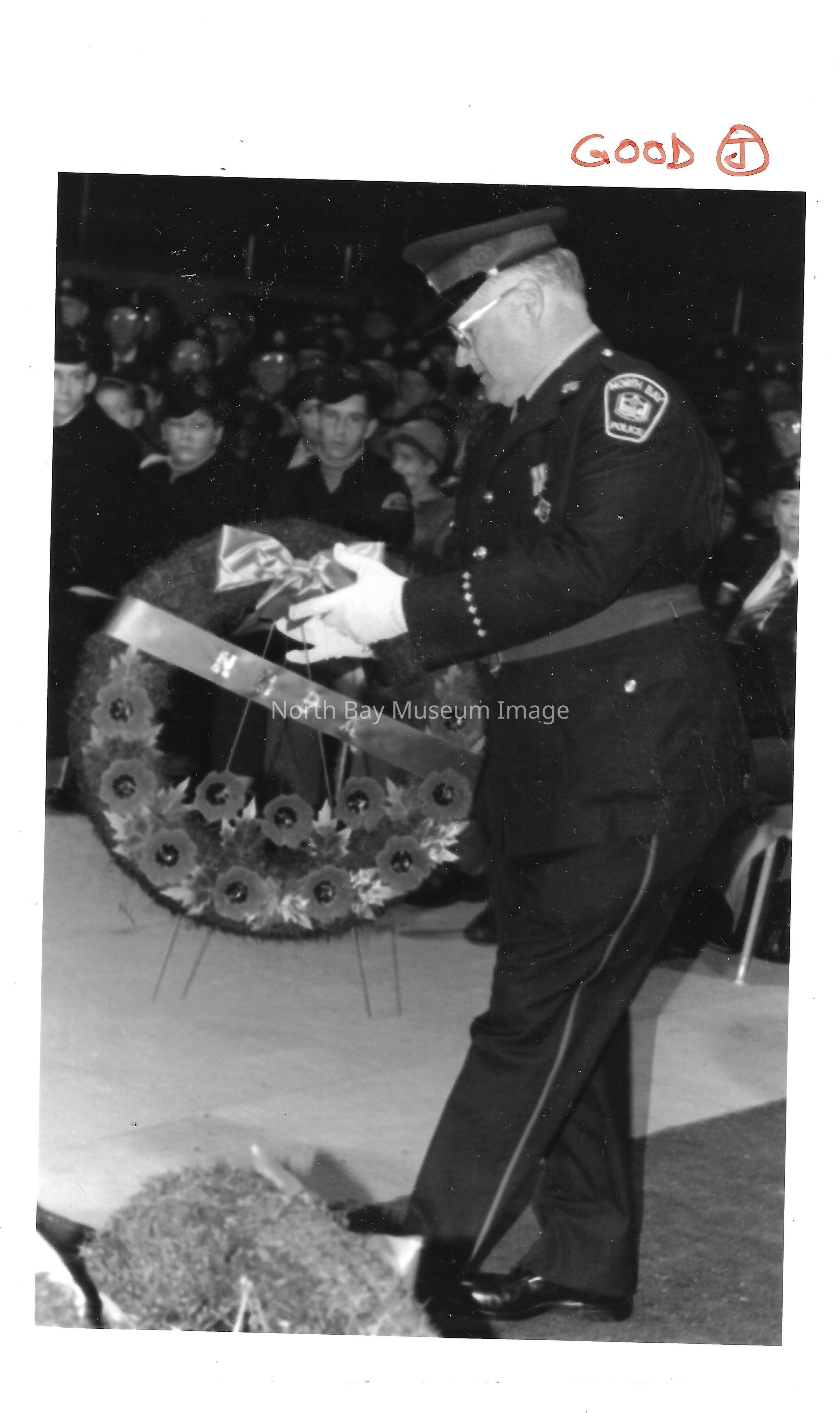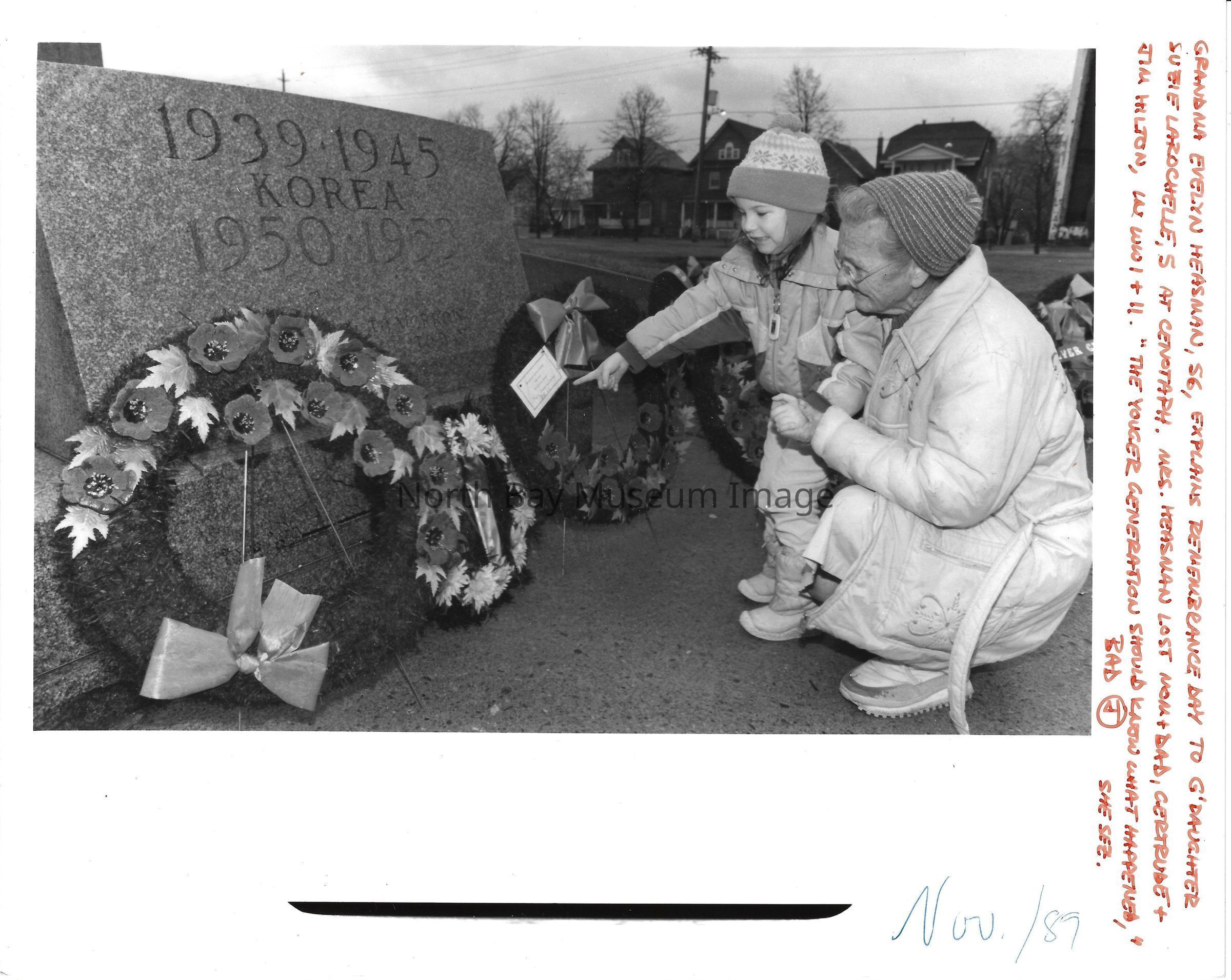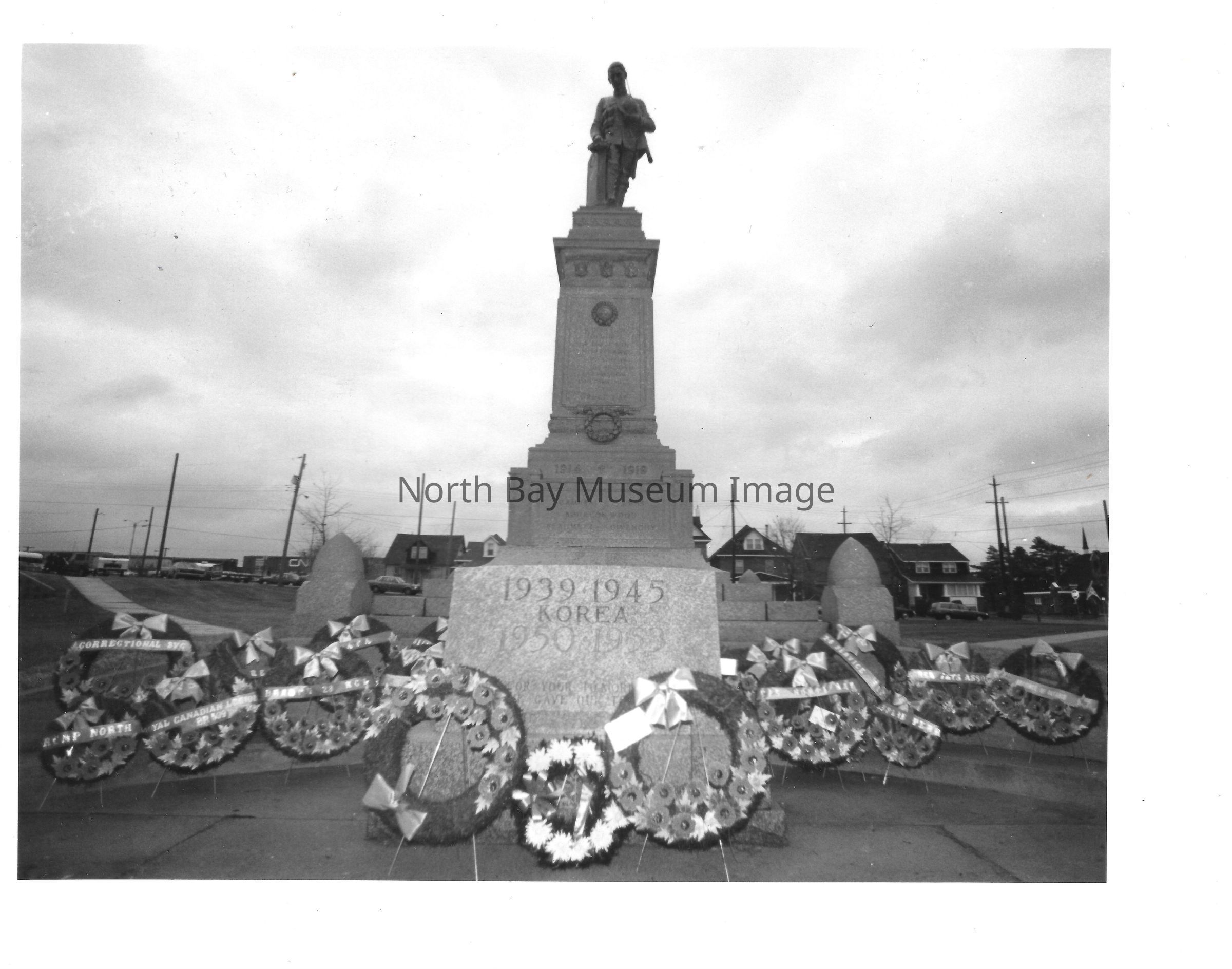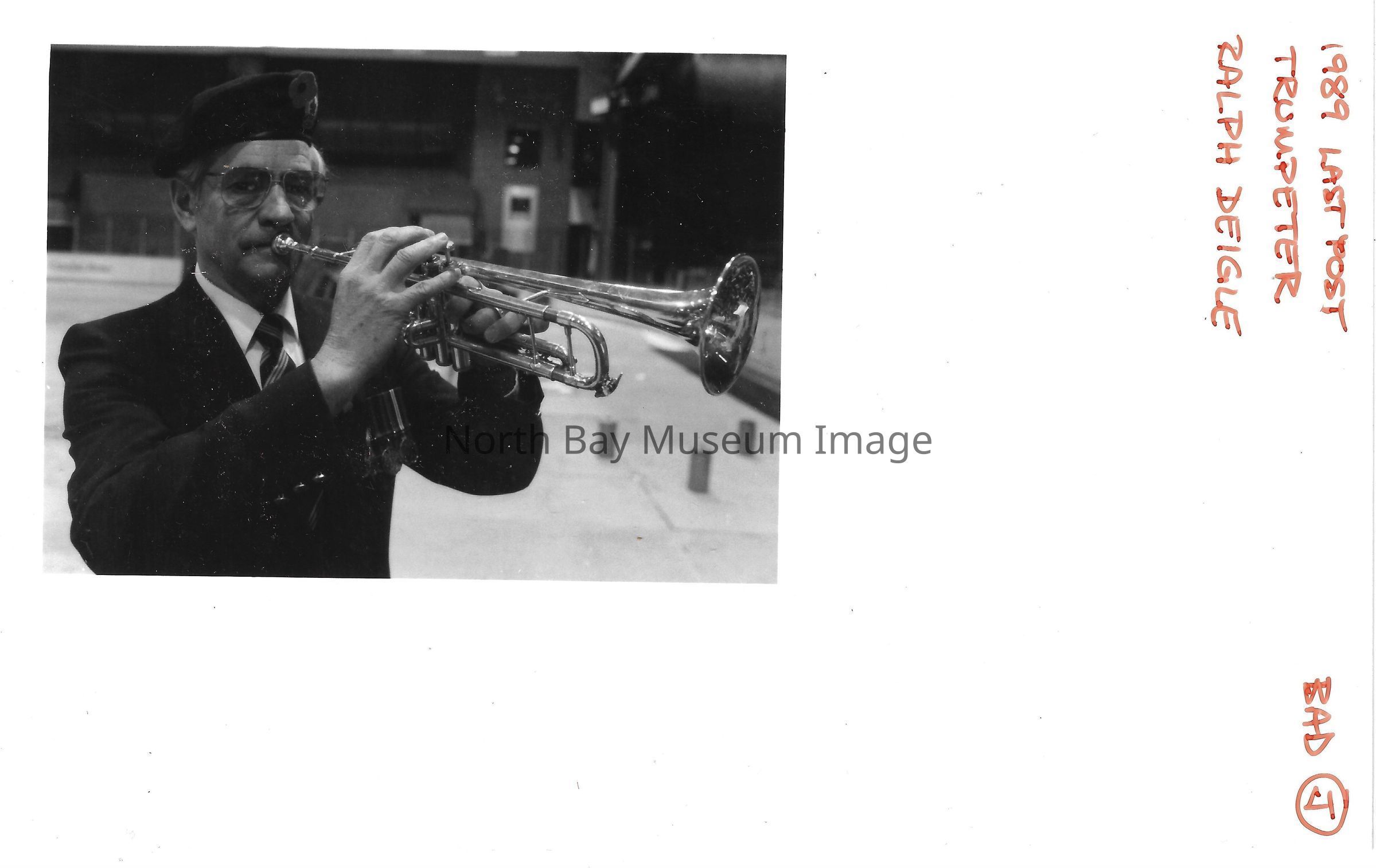 Photos of veterans, servicemen, and musicians at memorial park on remembrance day. 022.01.80as: Media information packet for remembrance day 1983.