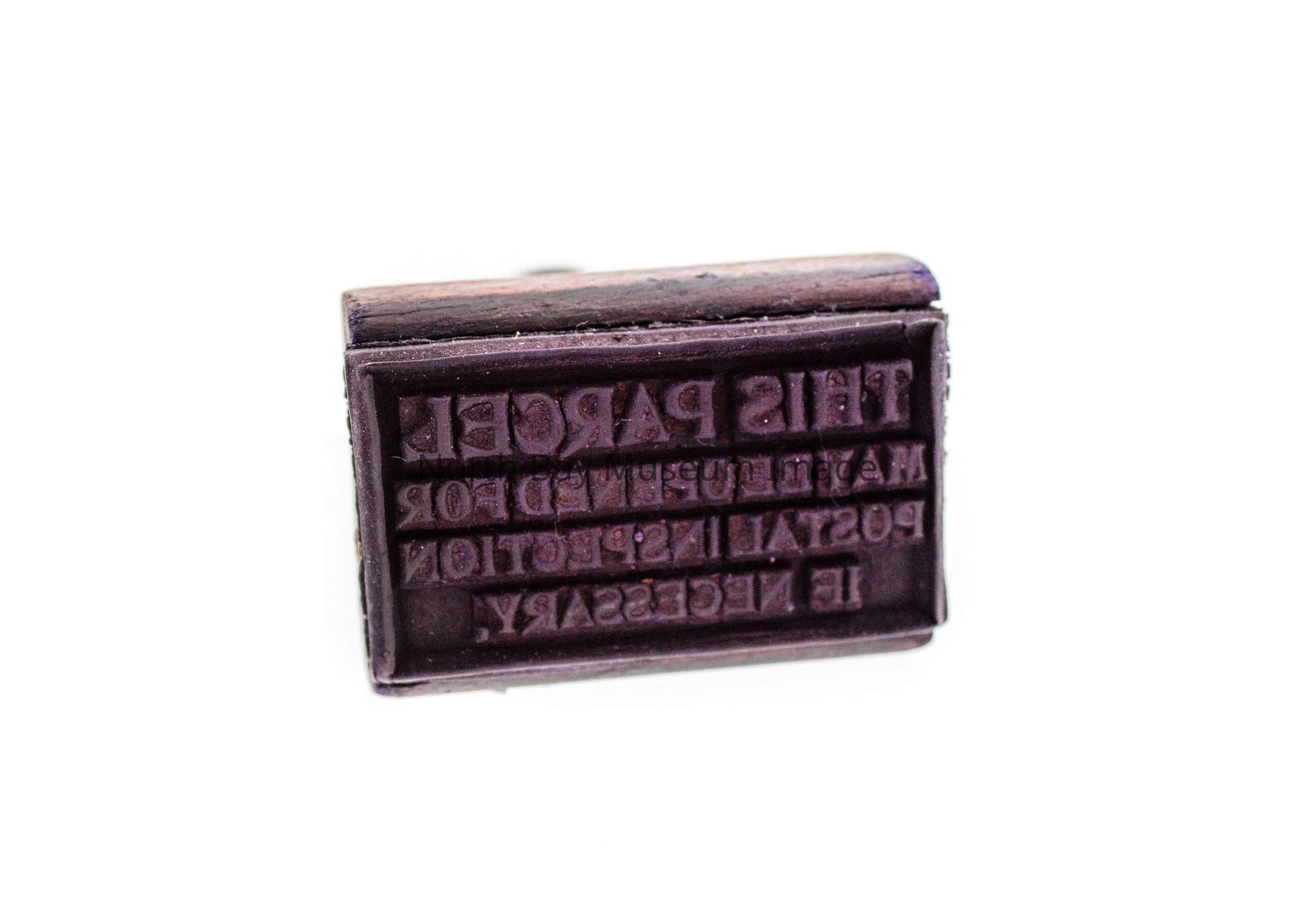 rubber stamp, black wooden handle, words for print: "This Parcel May Be Opened For Postal Inspection If Necessary".