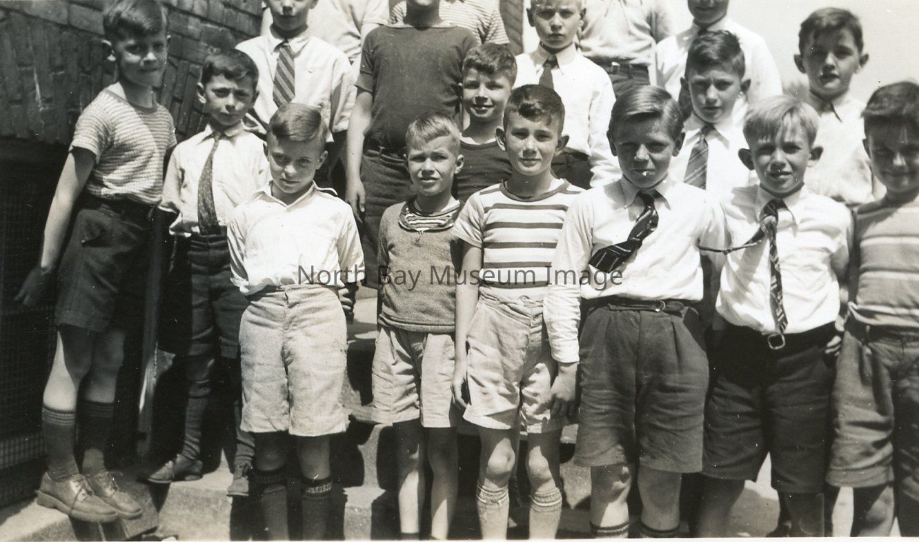 Black and white photographic print of group of boys from Harvey Street School (King George). Photo taken in the 1940's.