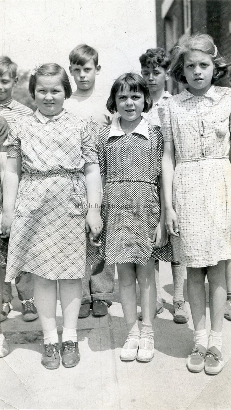 Black and white photographic print of group of children at Harvey Street School (King George). Donna written in pencil on back of print.