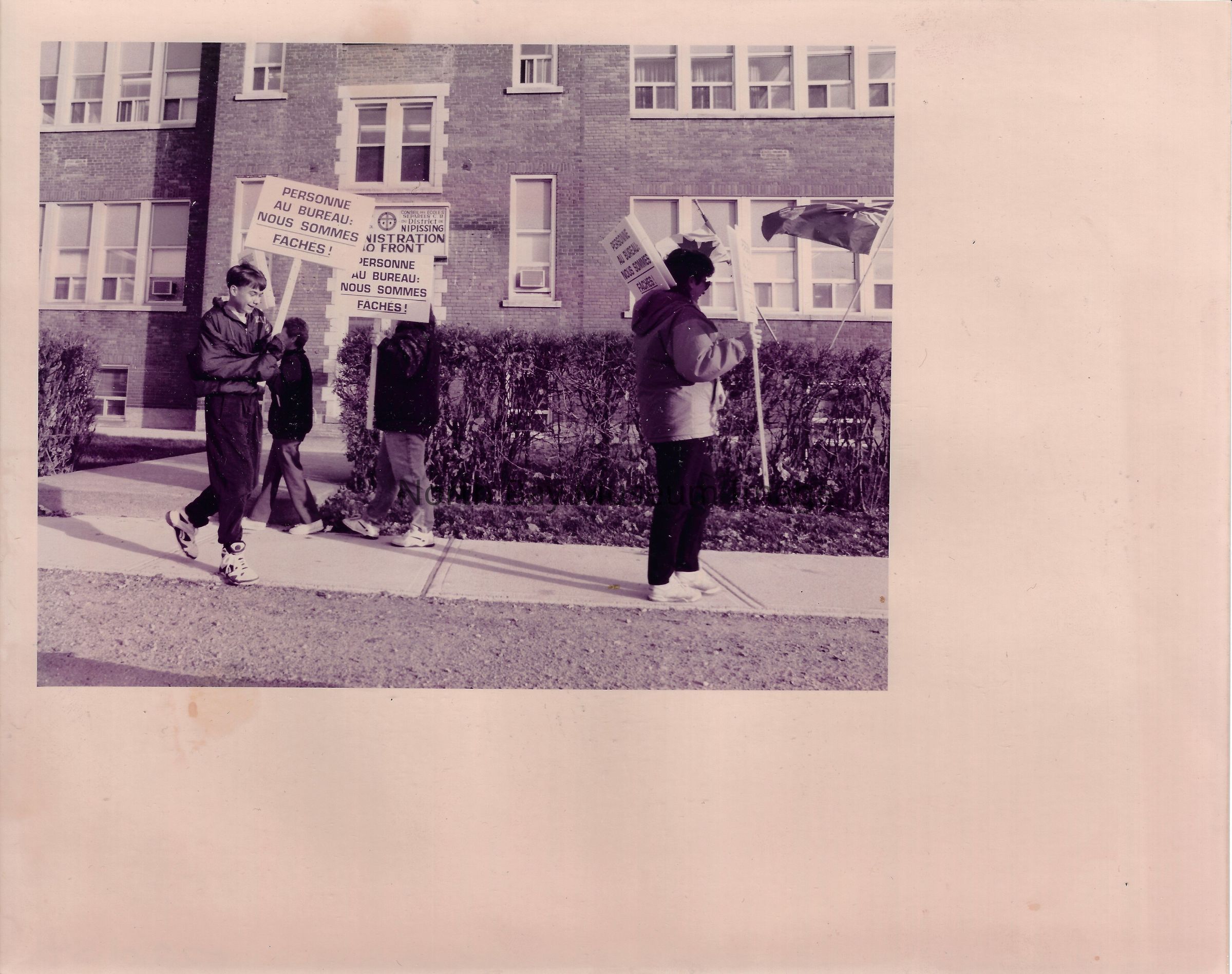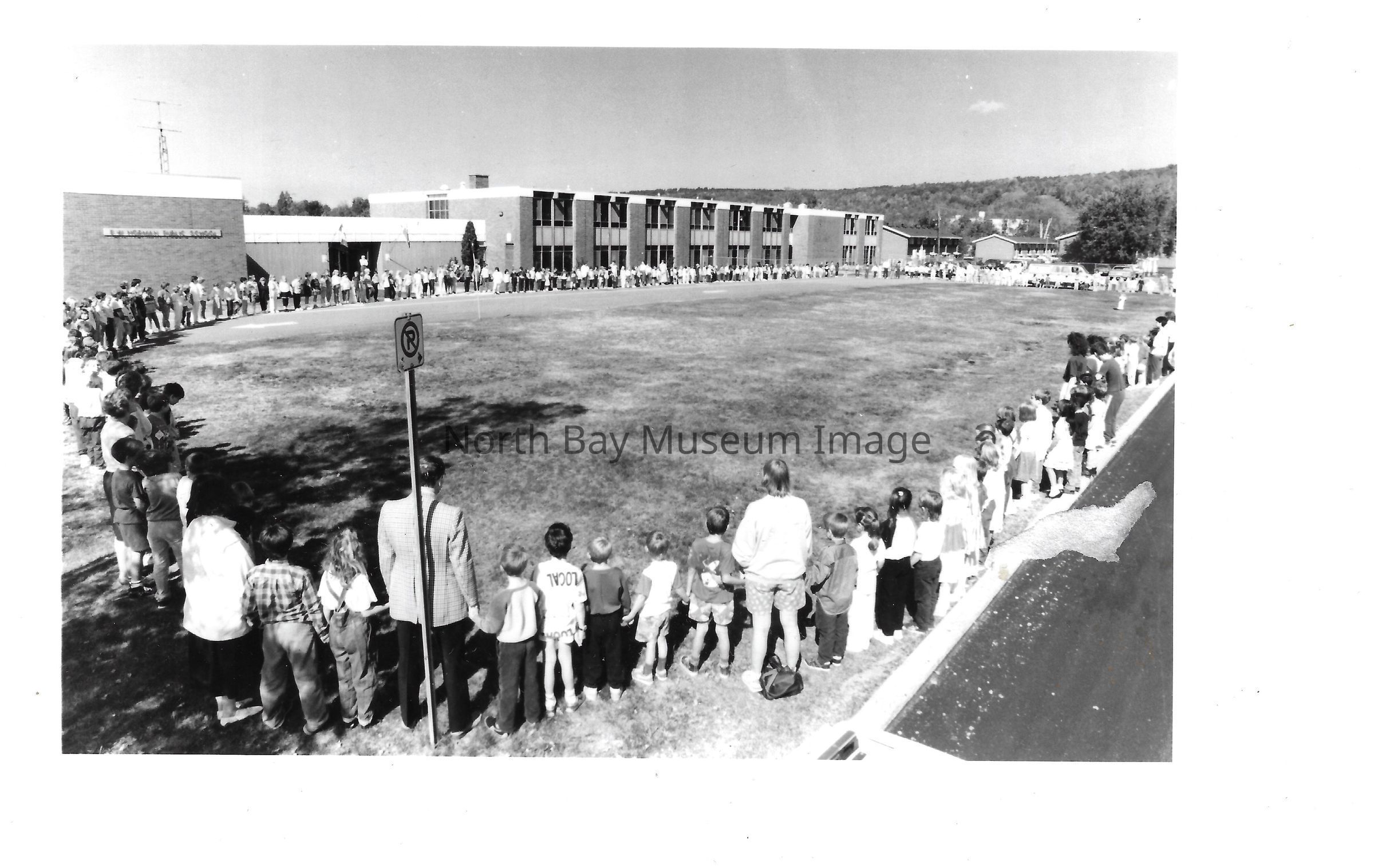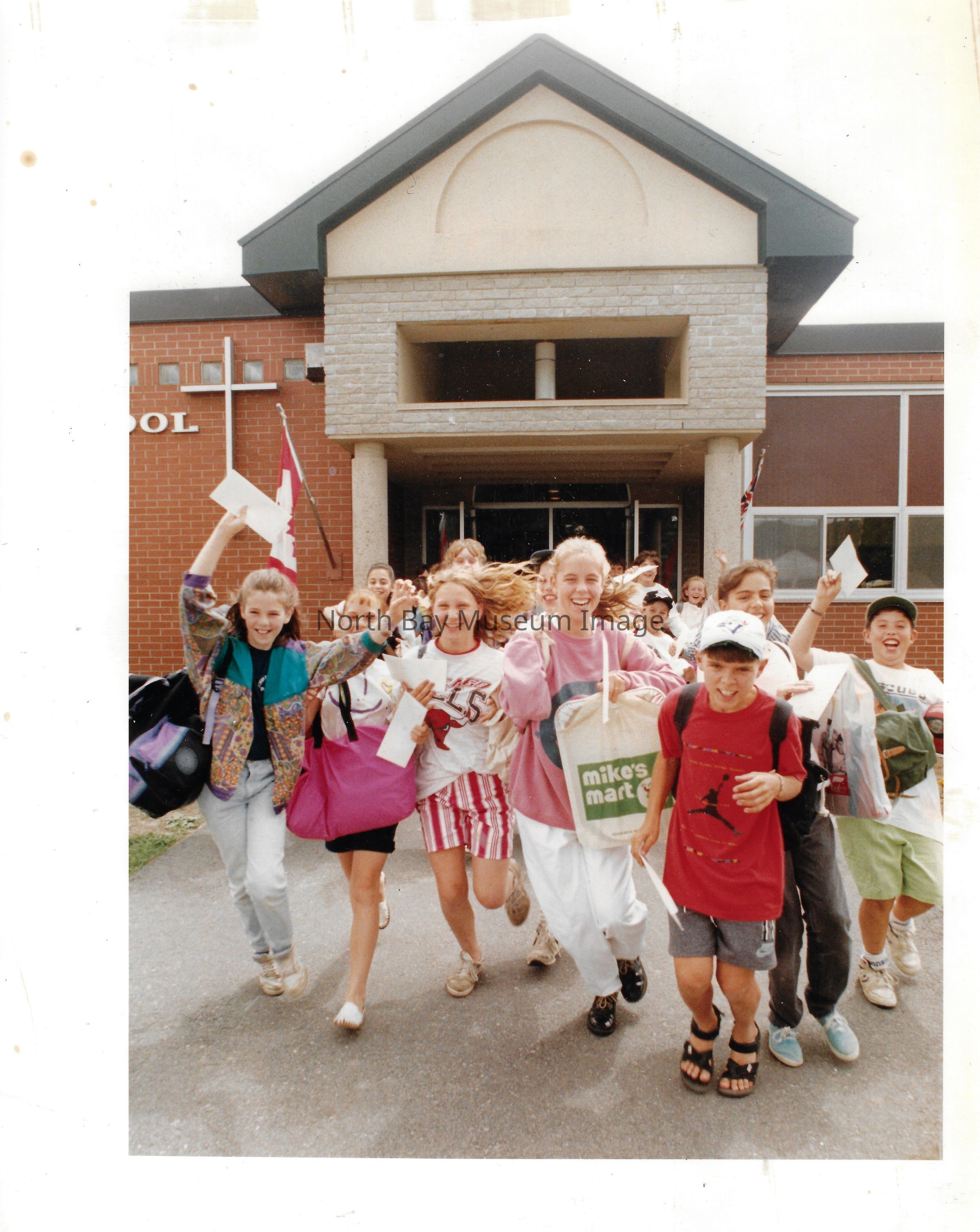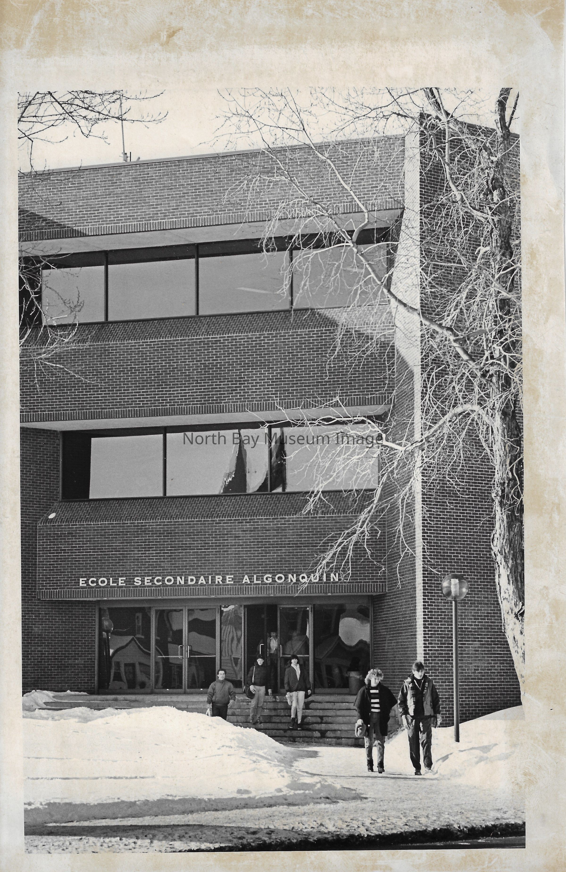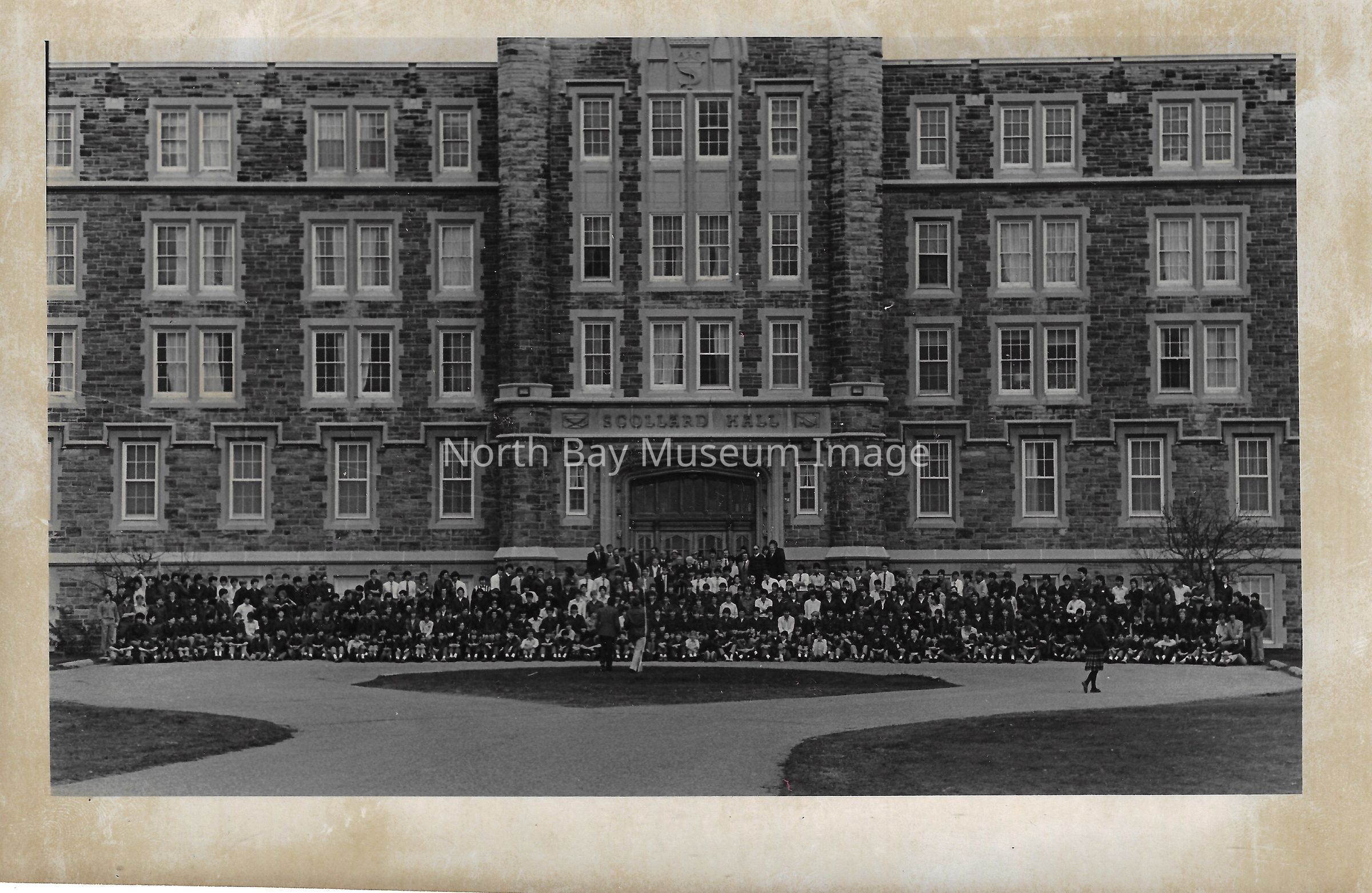 Photos of buildings and students from Scollard Hall, West Ferris Secondary School, Ecole Secondaire Algonquin, O'Brien Street Public School, Queen Victoria Public School and King George Public School.