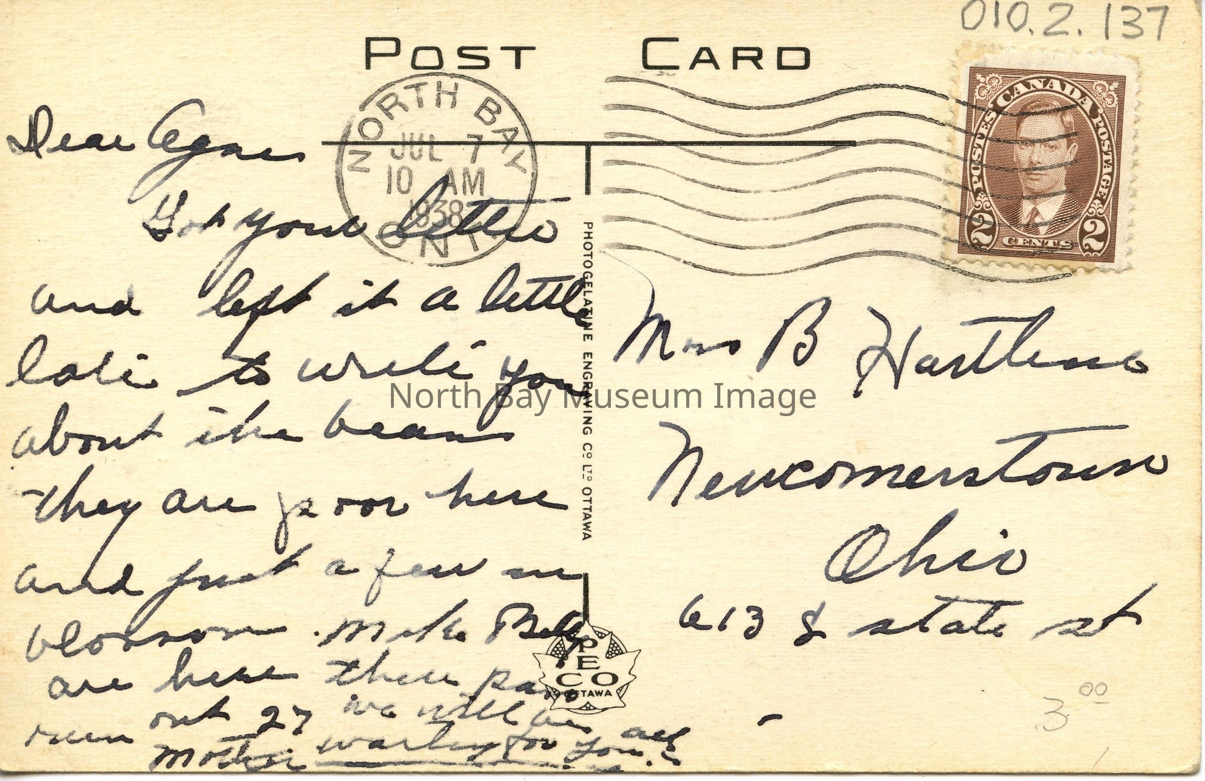 Postmark: North Bay, Ont. Jul 7 10 AM, 1938Creator