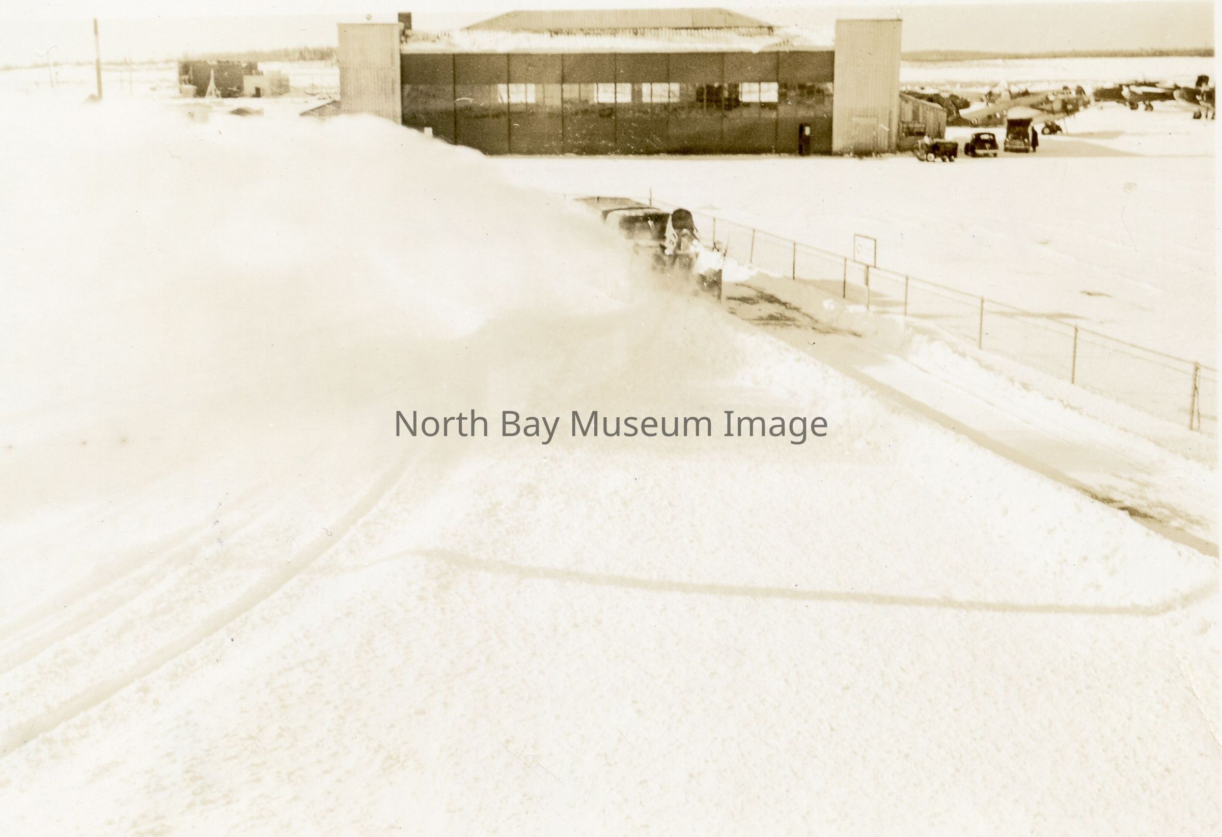 to the hangar--which belonged to Trans-Canada Air Lines--is a Lockheed Hudson.