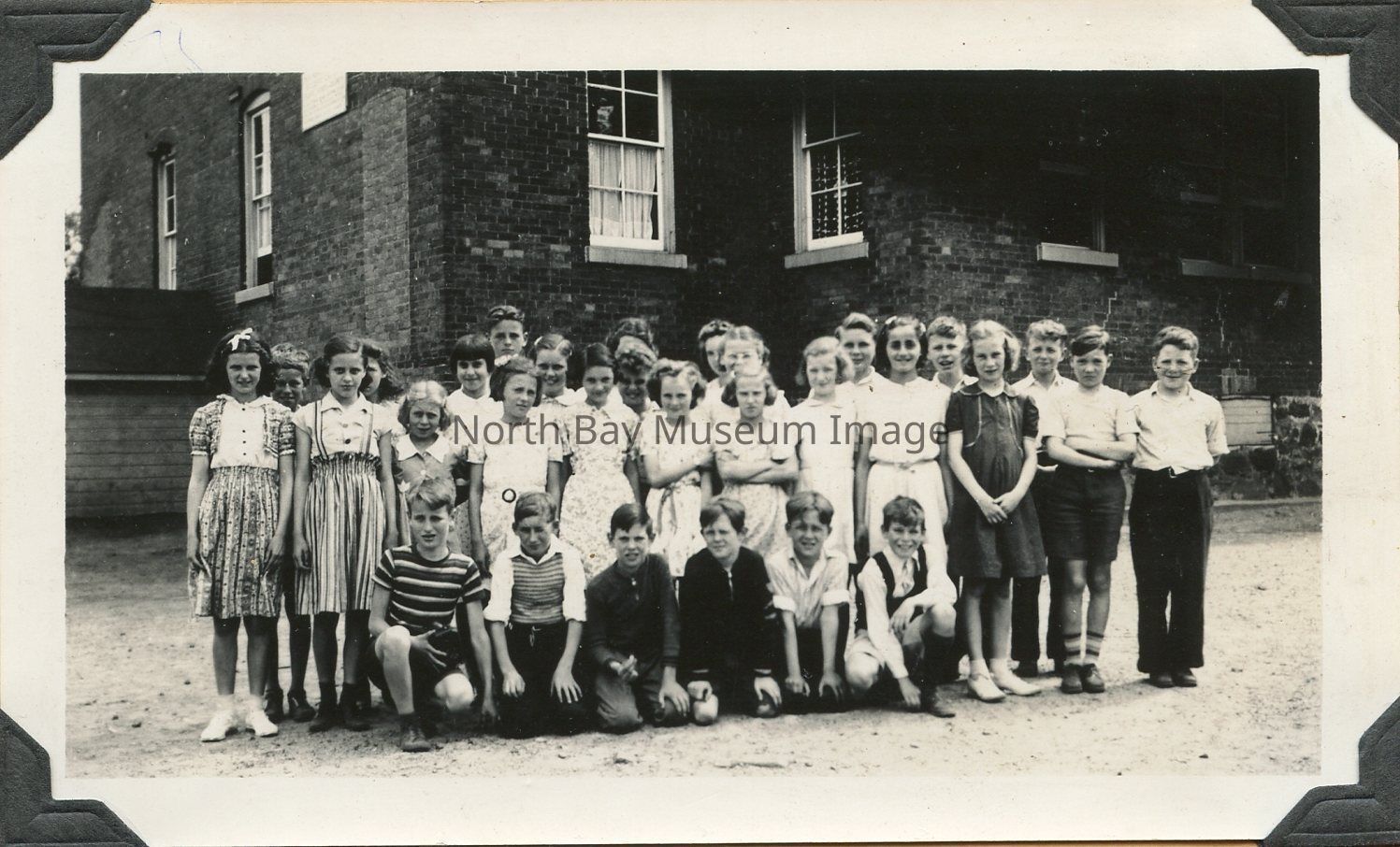 Snapshot of McIntyre School (King Edward) North Bay, Ont. 1938-1939 class picture - donor identified known persons on back of photo. From top to bottom
