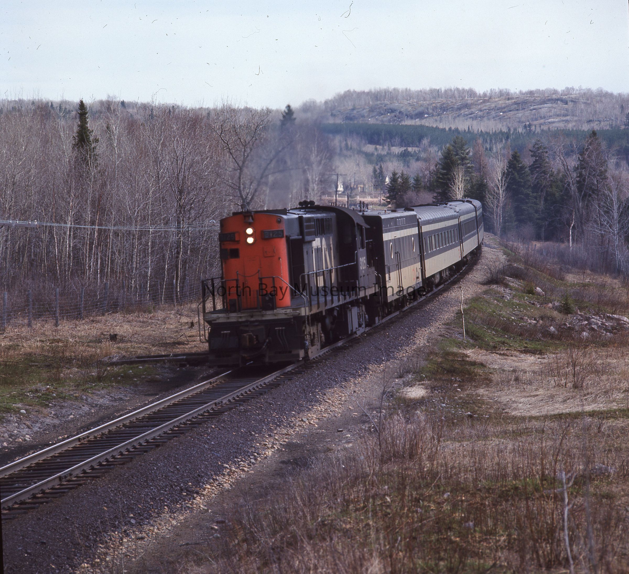 Negatives of CNR Diesel Passenger Train #673 N.Bound, Callander circa 1971.