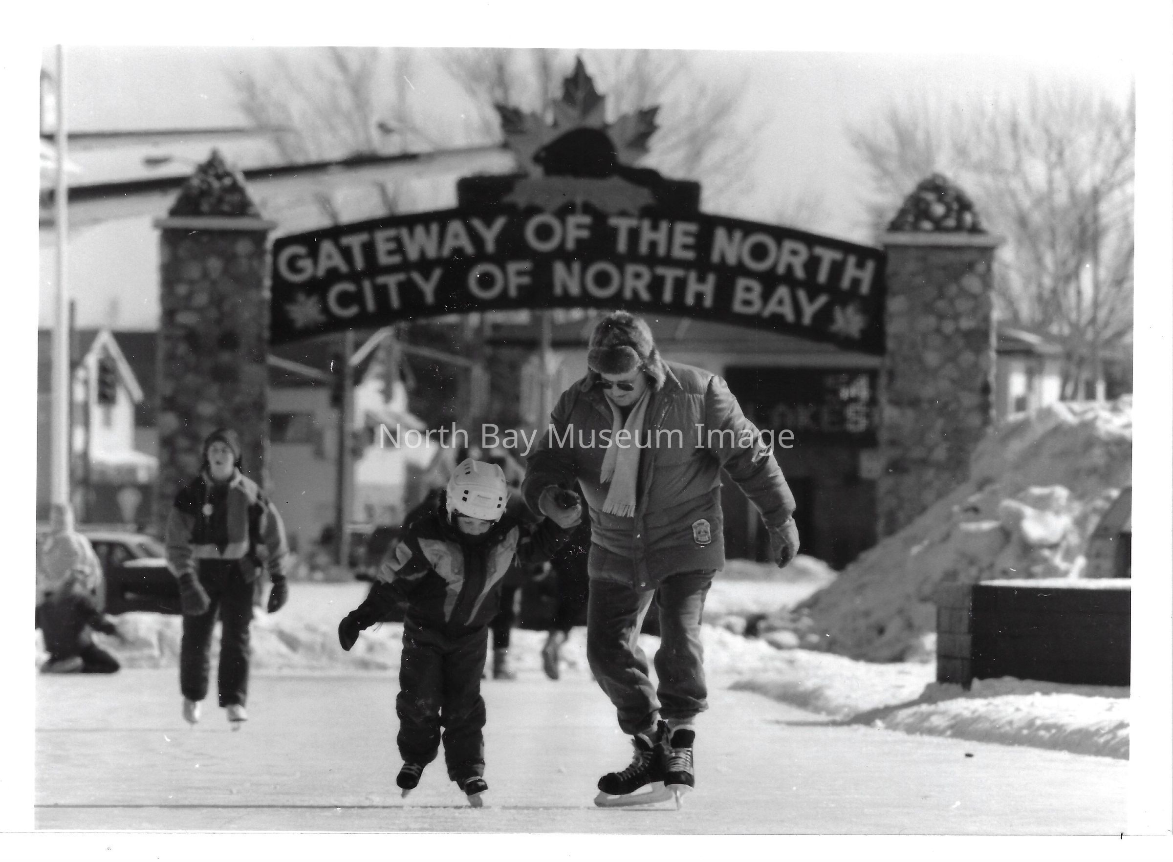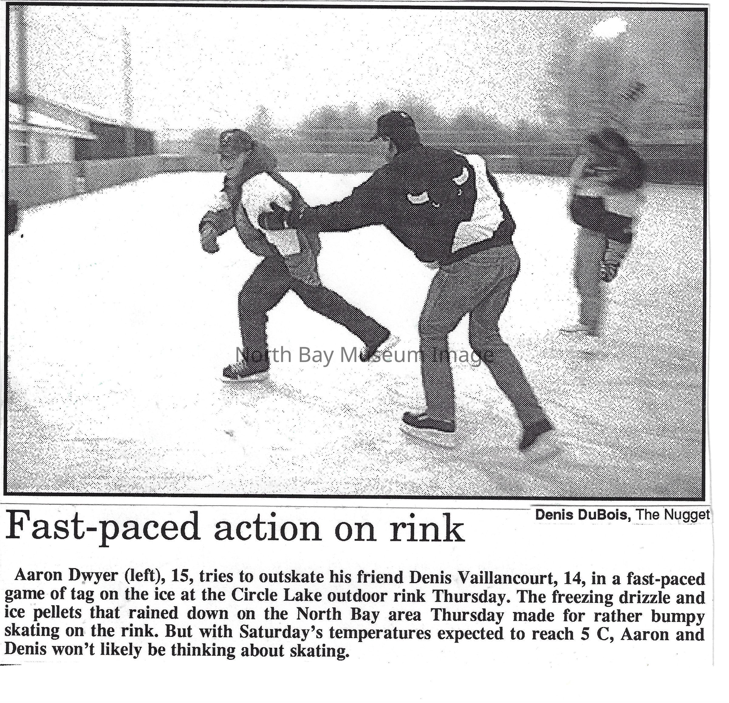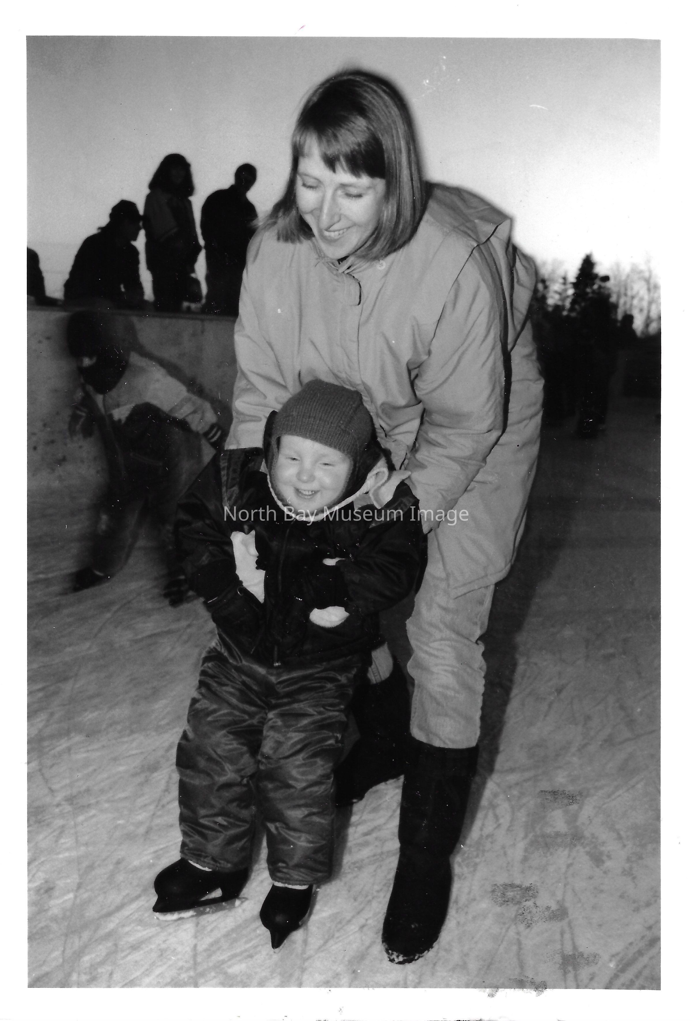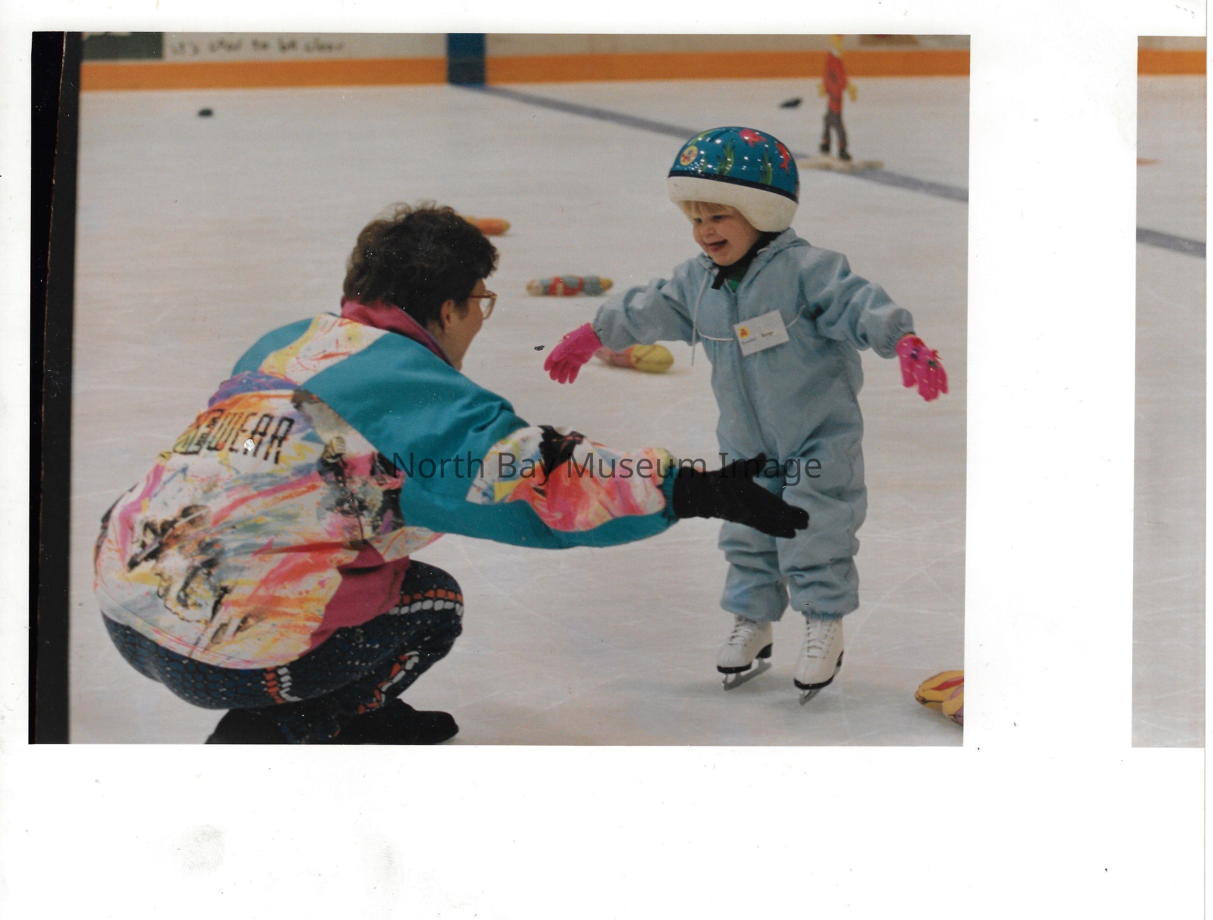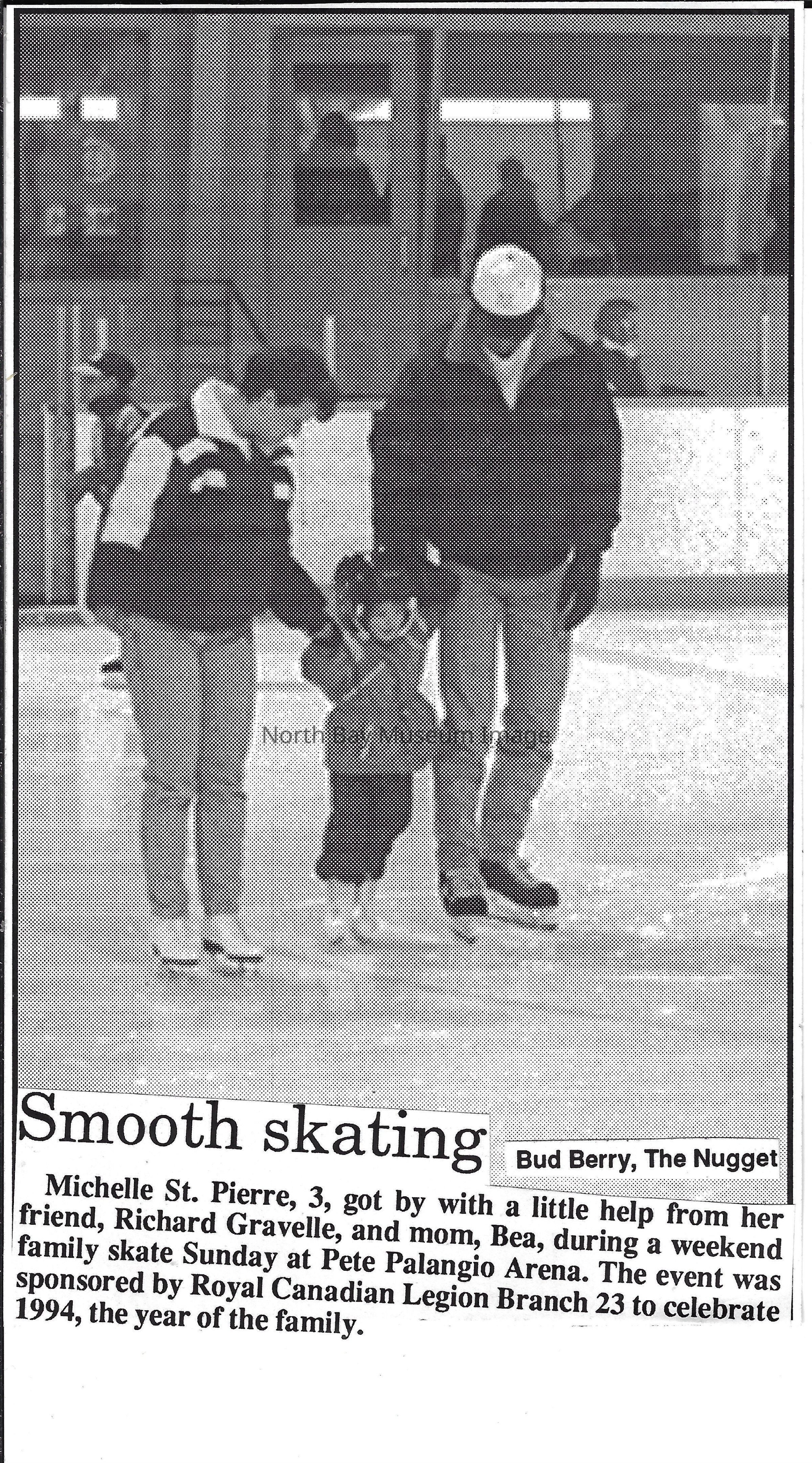 Photos and newspaper clippings of children skating outdoors and at the Pete Palangio arena.