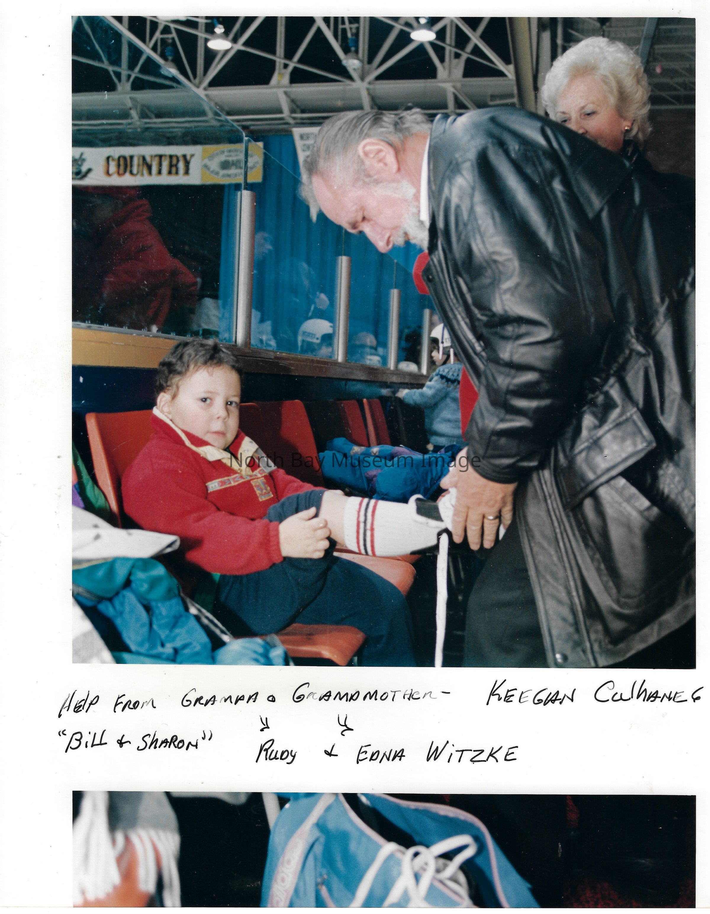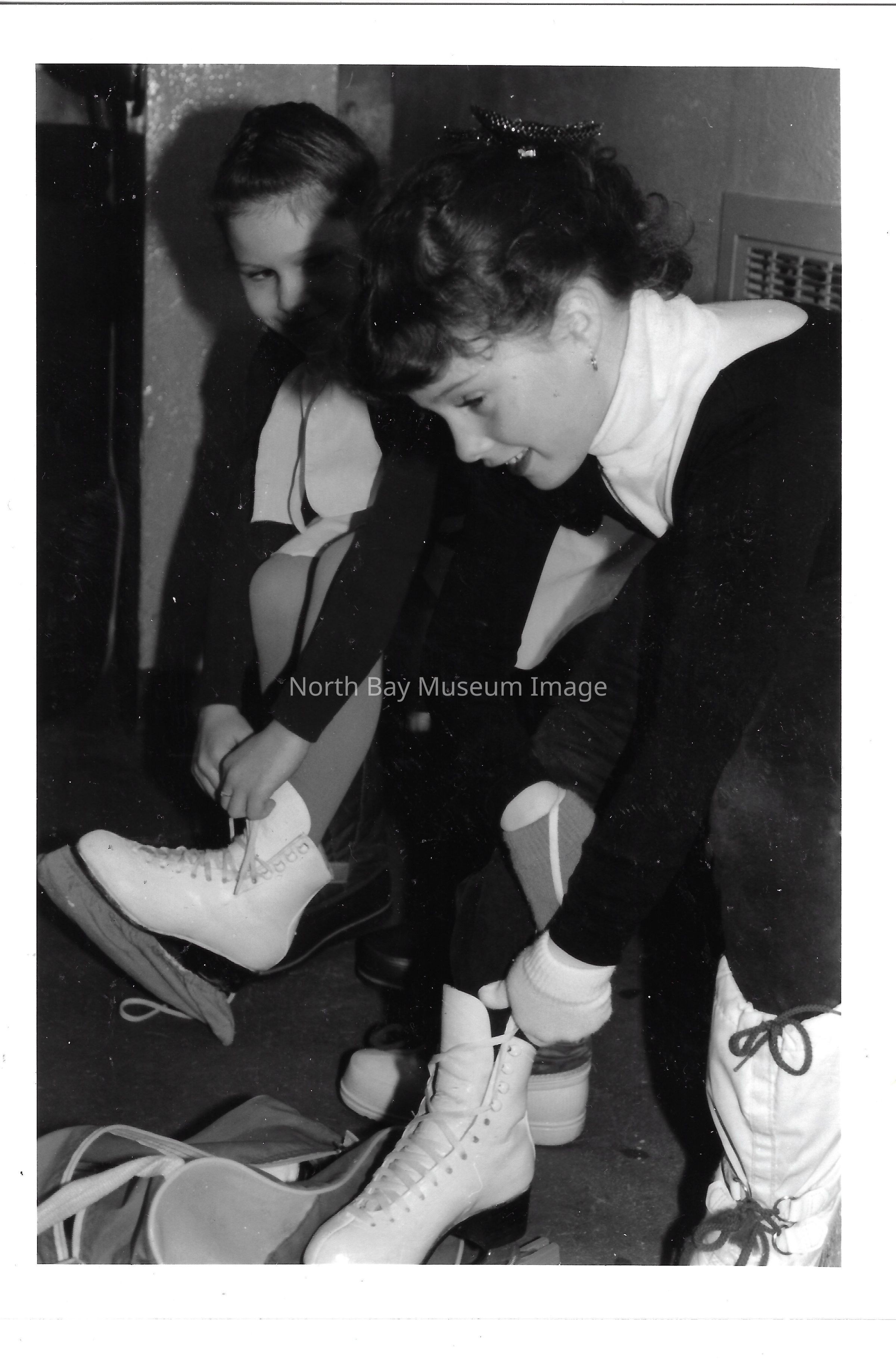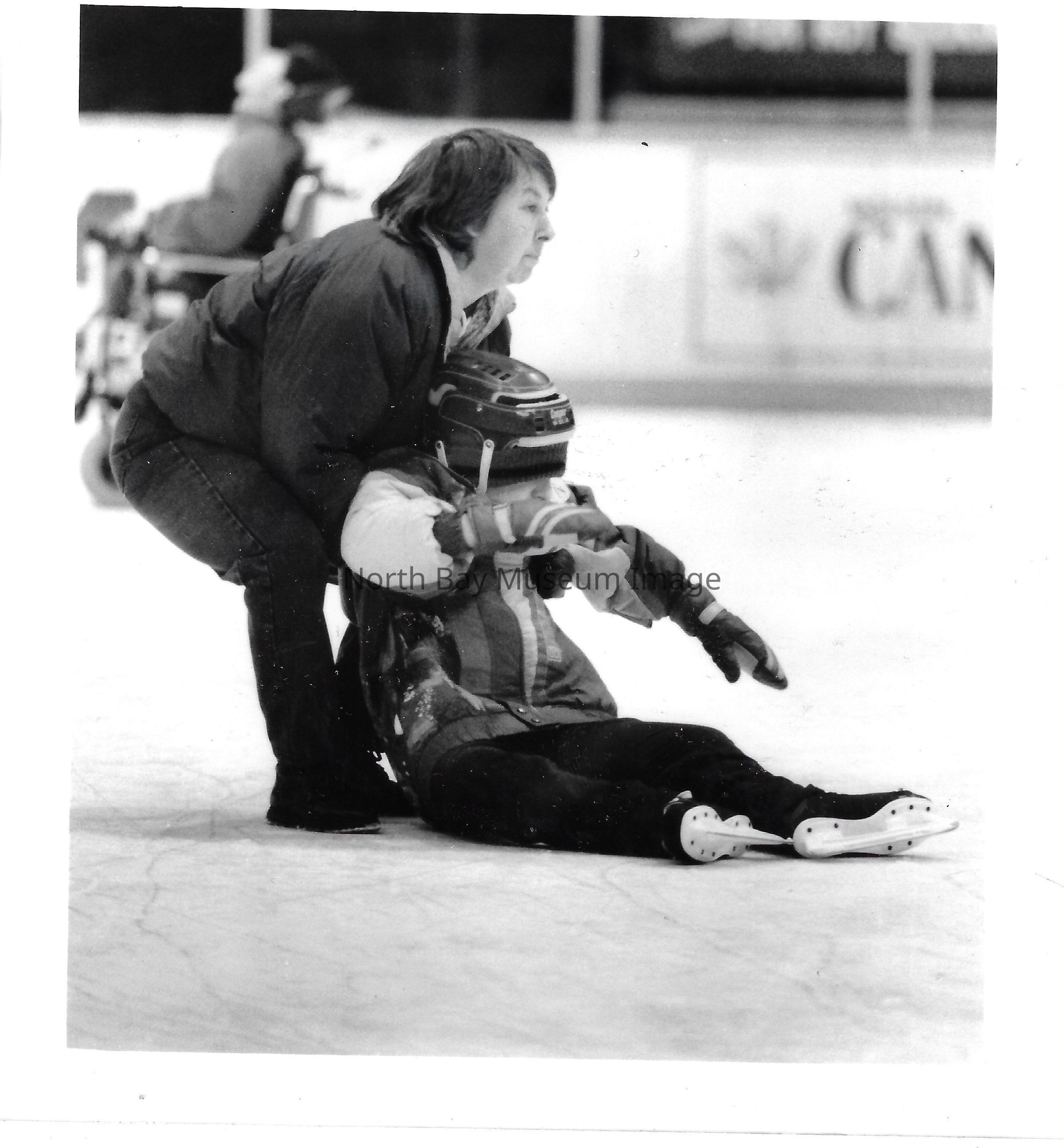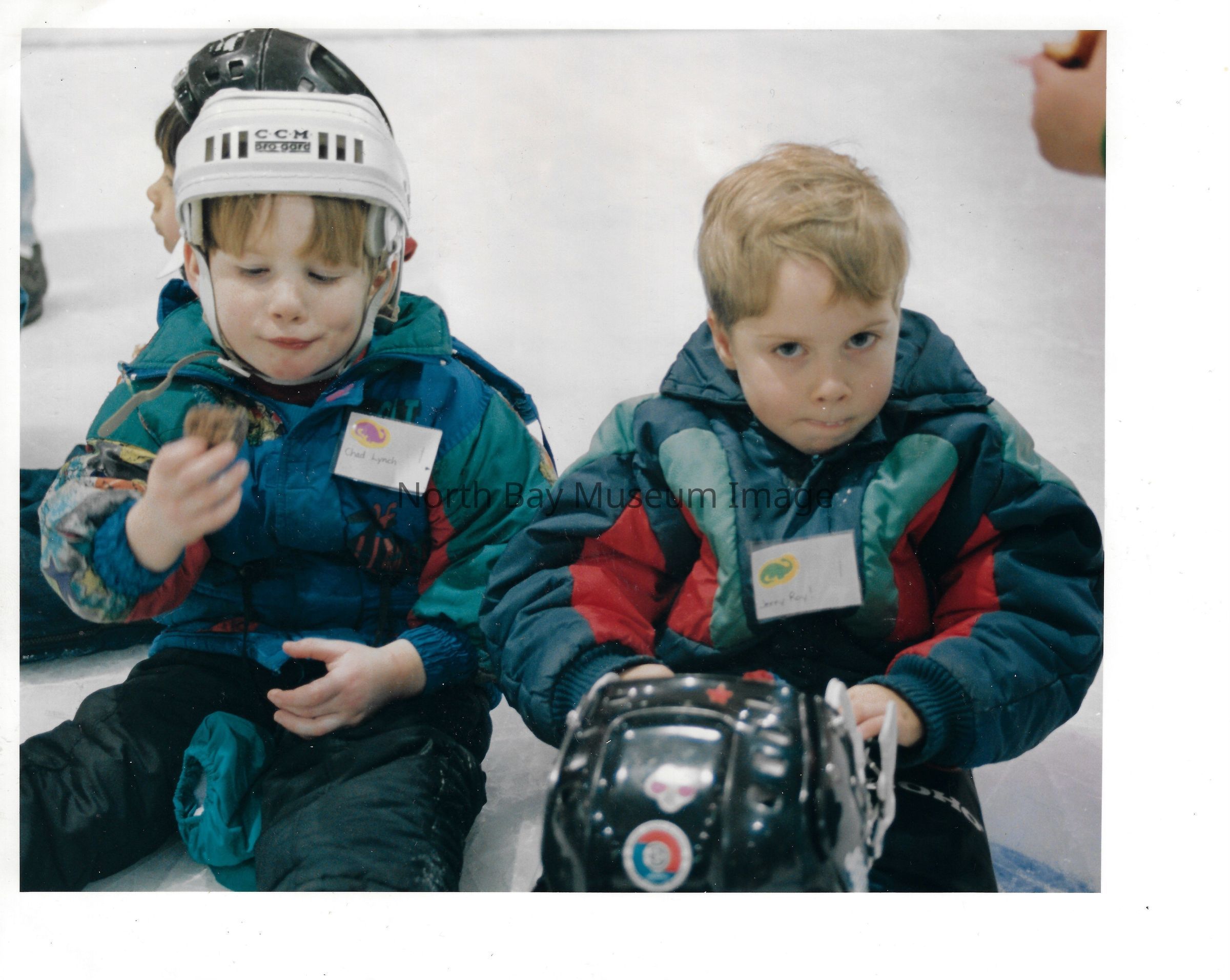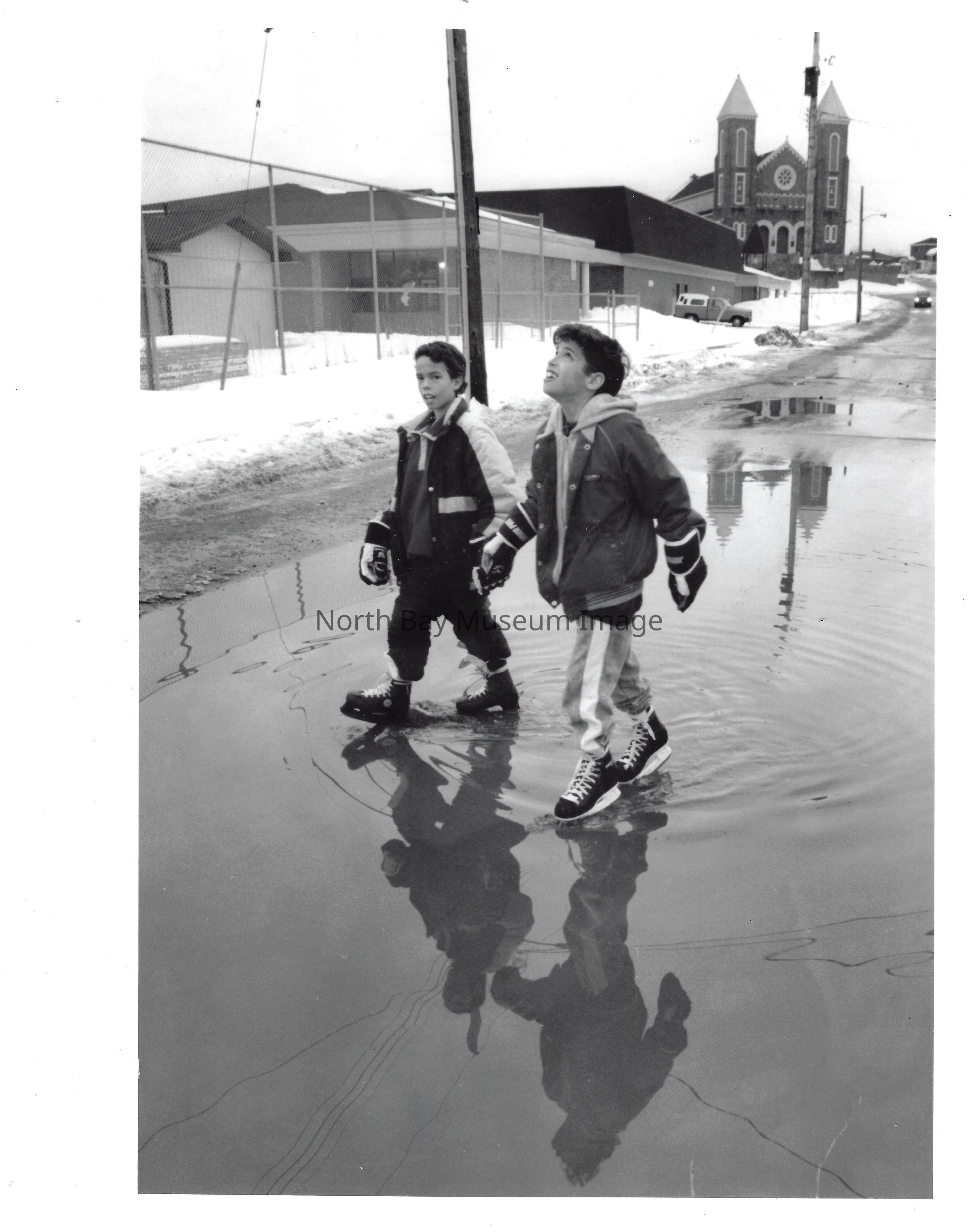 Photos and newspaper clippings of children skating outdoors and at the Pete Palangio arena.