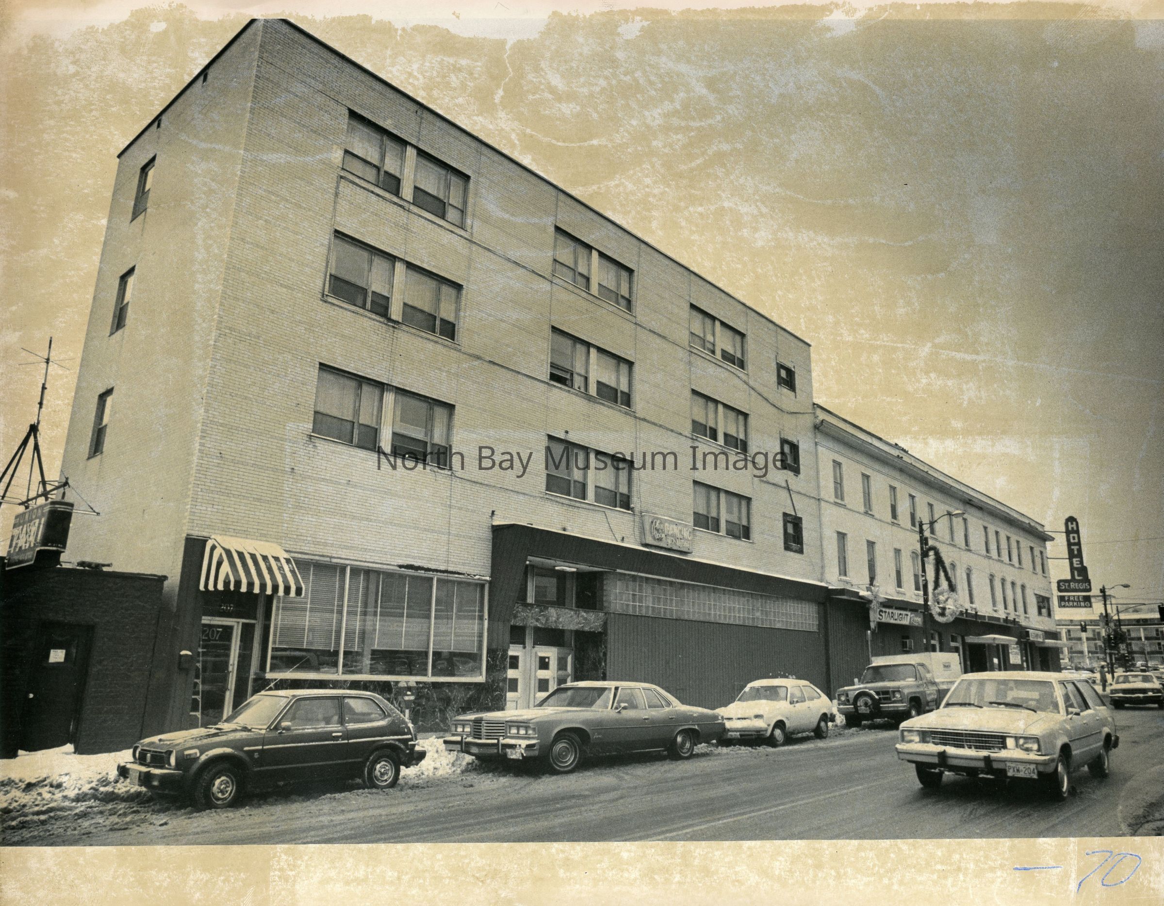 022.01.154g-h Street view photo of the St. Regis in 1980. Both photos are of the same image however differ in size
