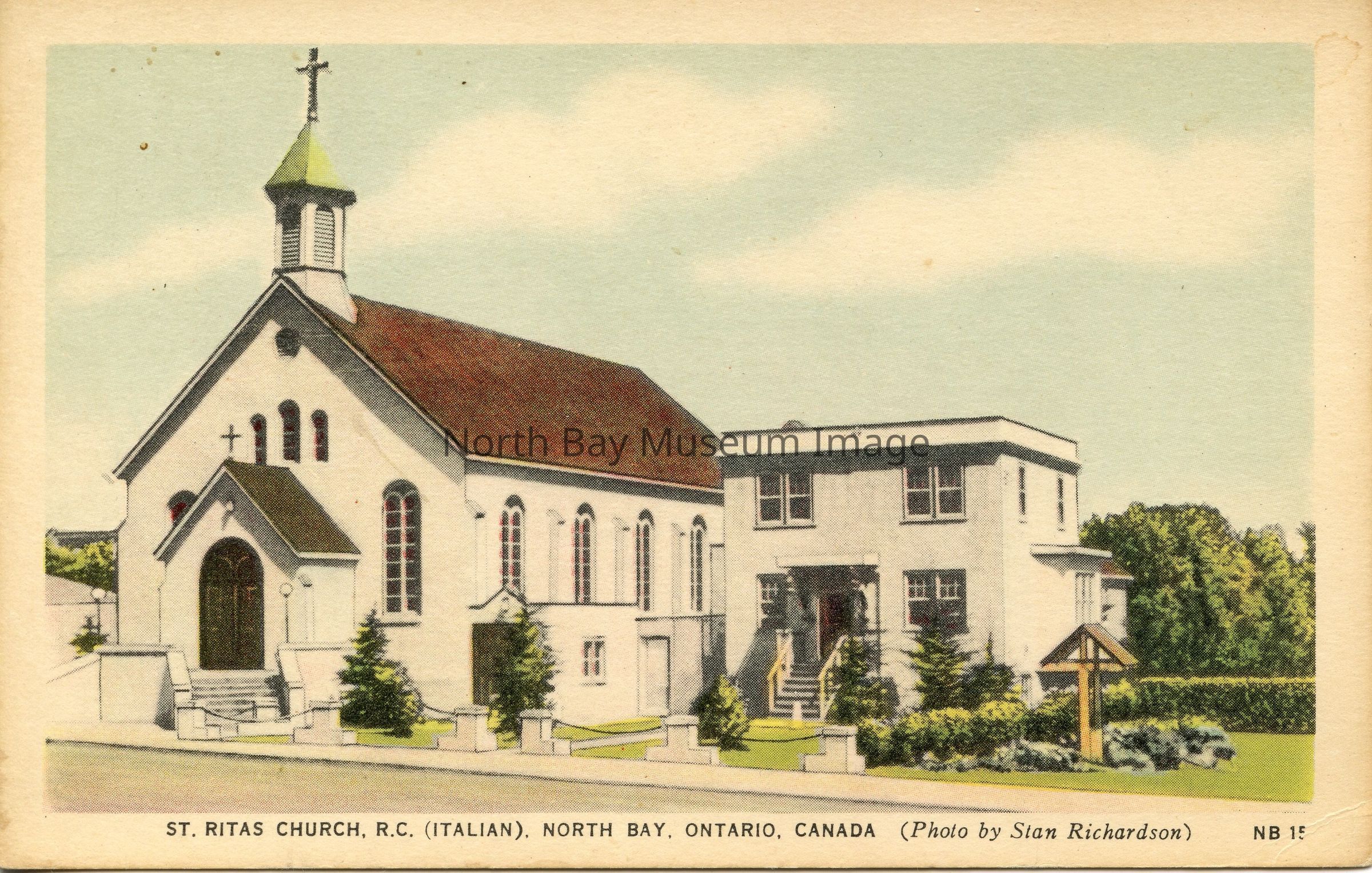 Color photo of St. Rita's Church, located at 630 Douglas St. And priest's residence to the right of the church. Originally built in 1913.