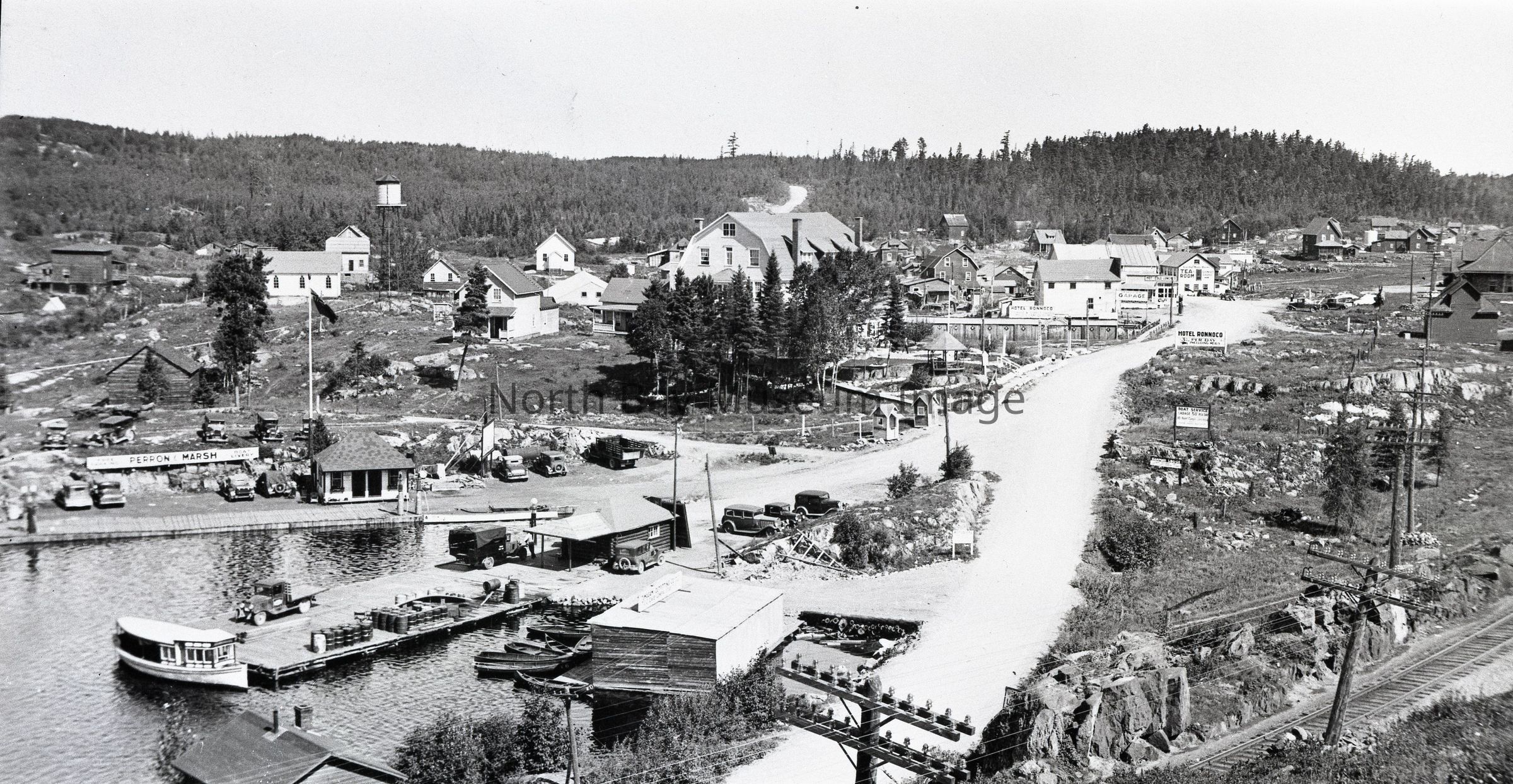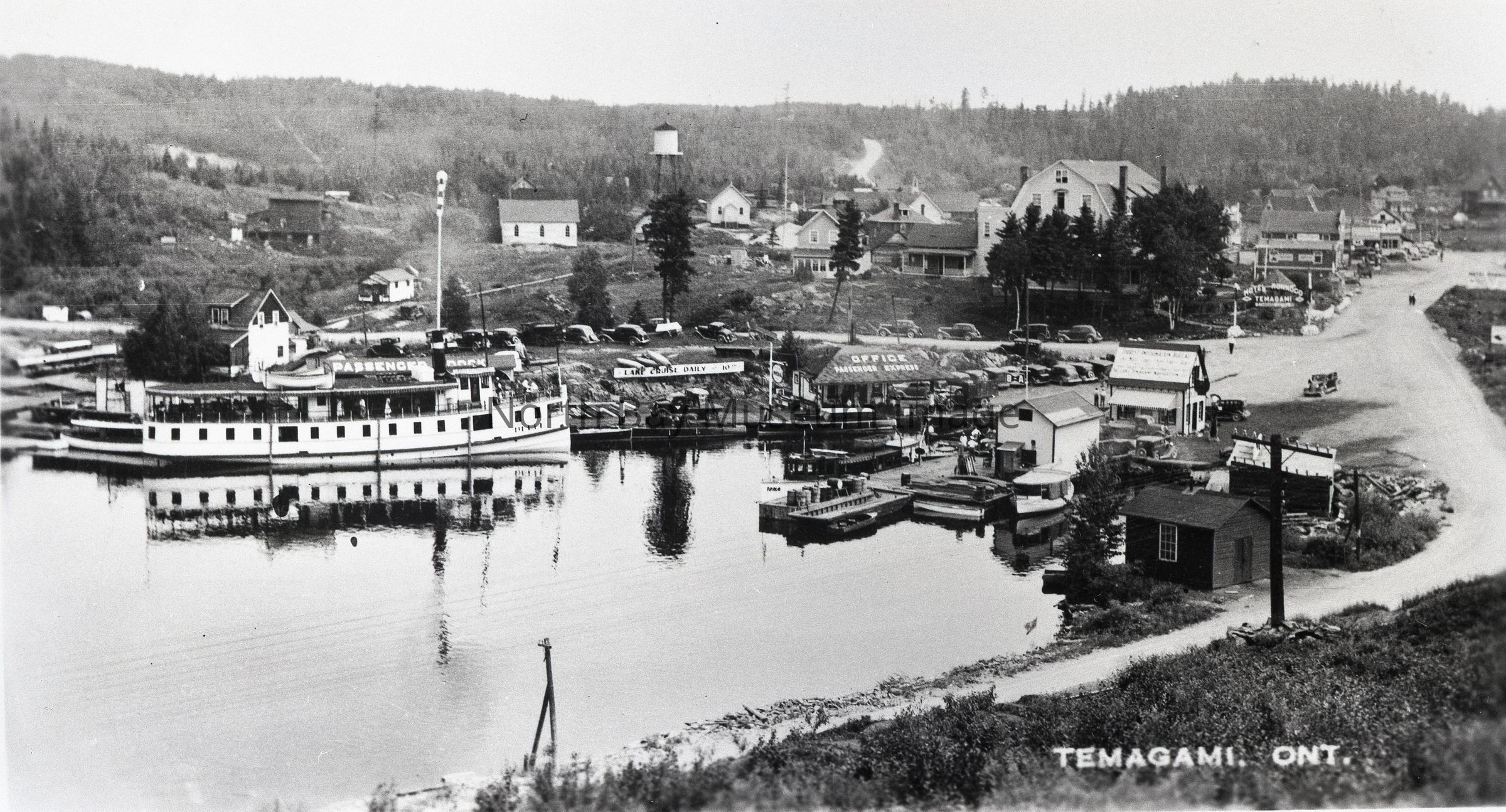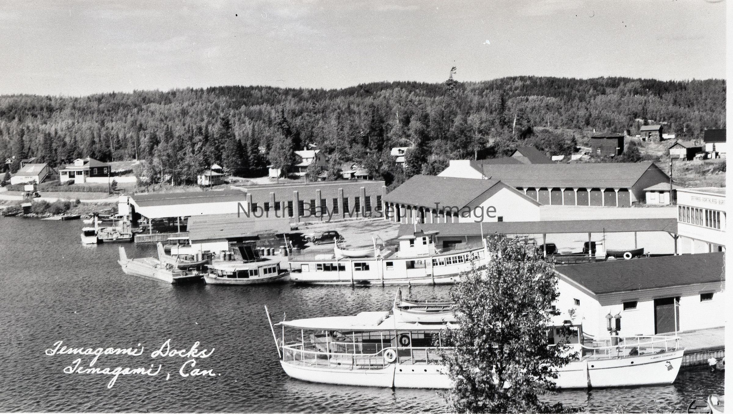 Negatives (a-e) of the Temagami Harbour in the 1900s to the1930s. Image a was captured from above and shows the various boats and boathouses in the harbour, as well as a small part of the city that is off of the lake. Image b shows the harbour and the various boats in the Harbour. Image c focuses on the docks of the Temagami Harbour. Image C shows the harbour and the Temagami hotel that is near the lake. Image d shows the harbour once again from a different view point, you are able to see the hotel just beyond all of the boats A part of the Forder Collection.Creator