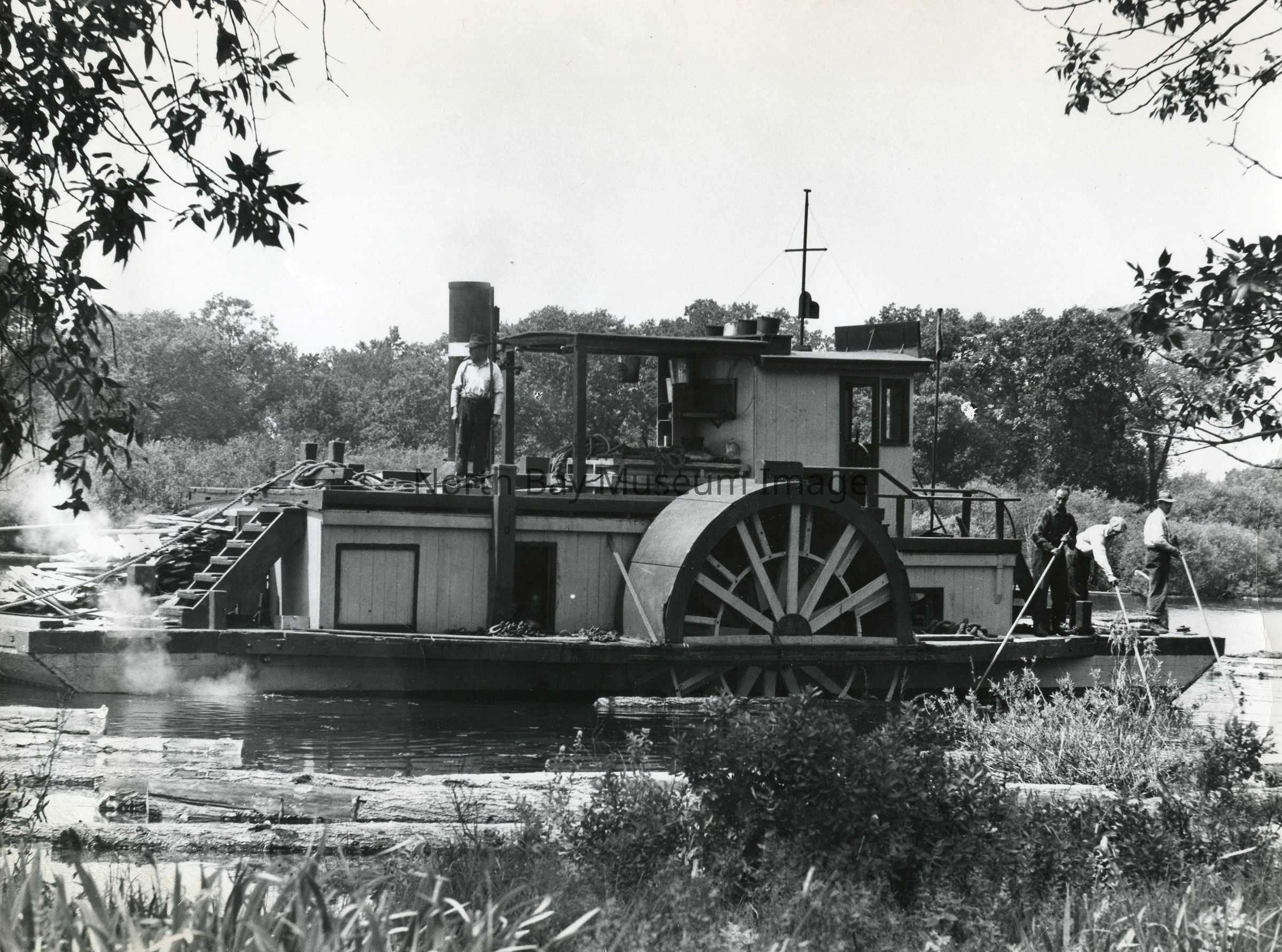 Black and white photographic print of John B. Smith & Sons Ltd. paddle-wheeler "Woodchuck",