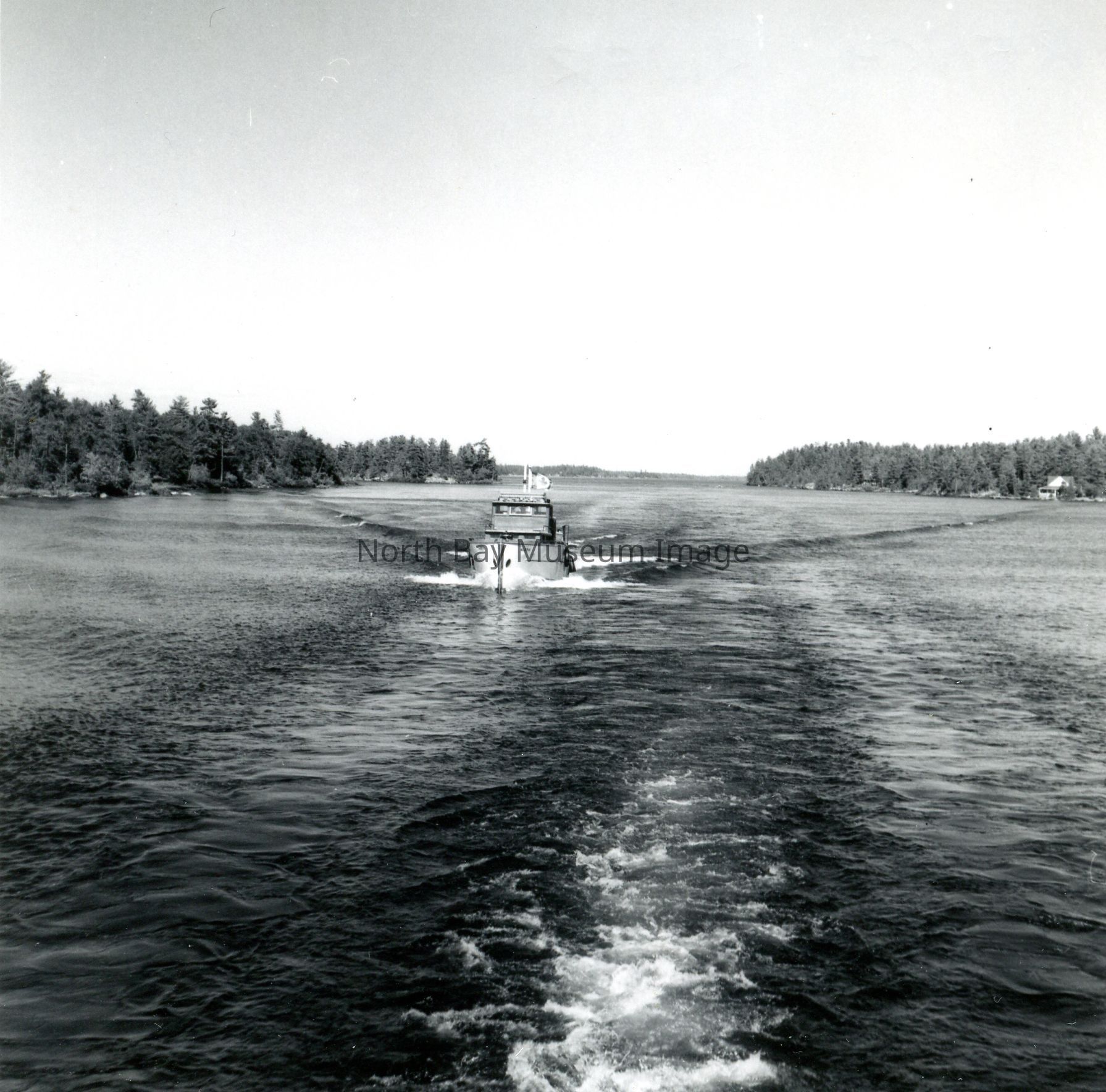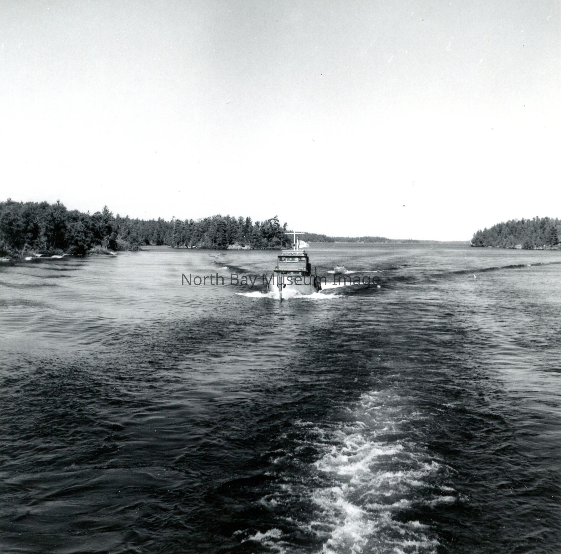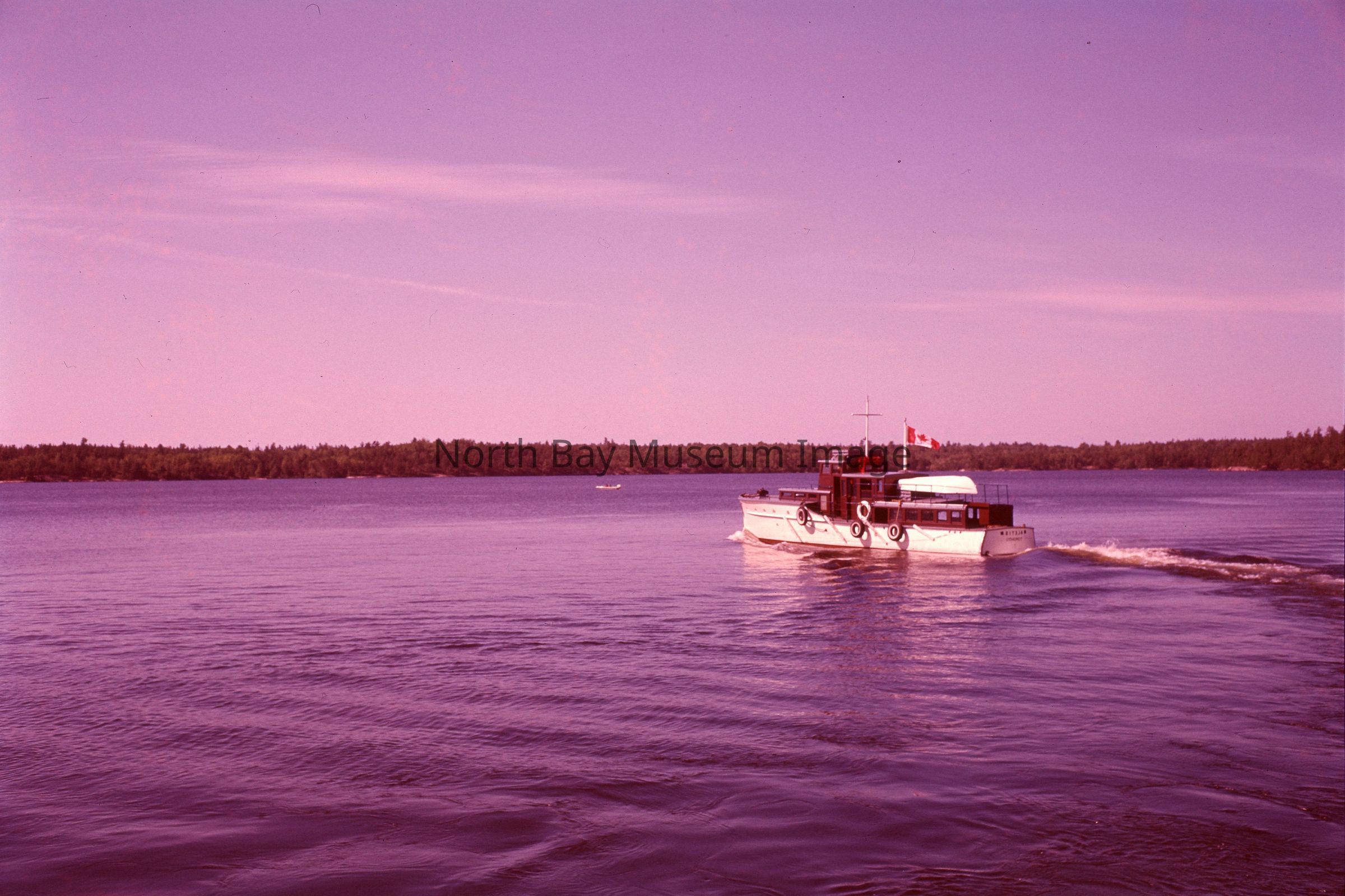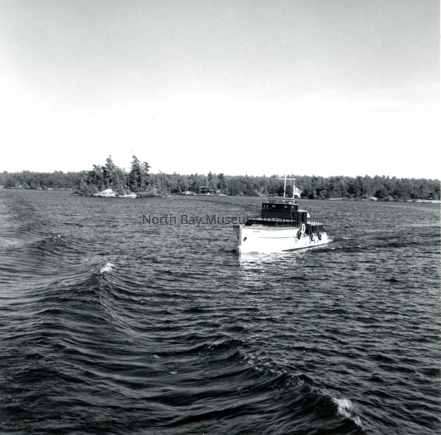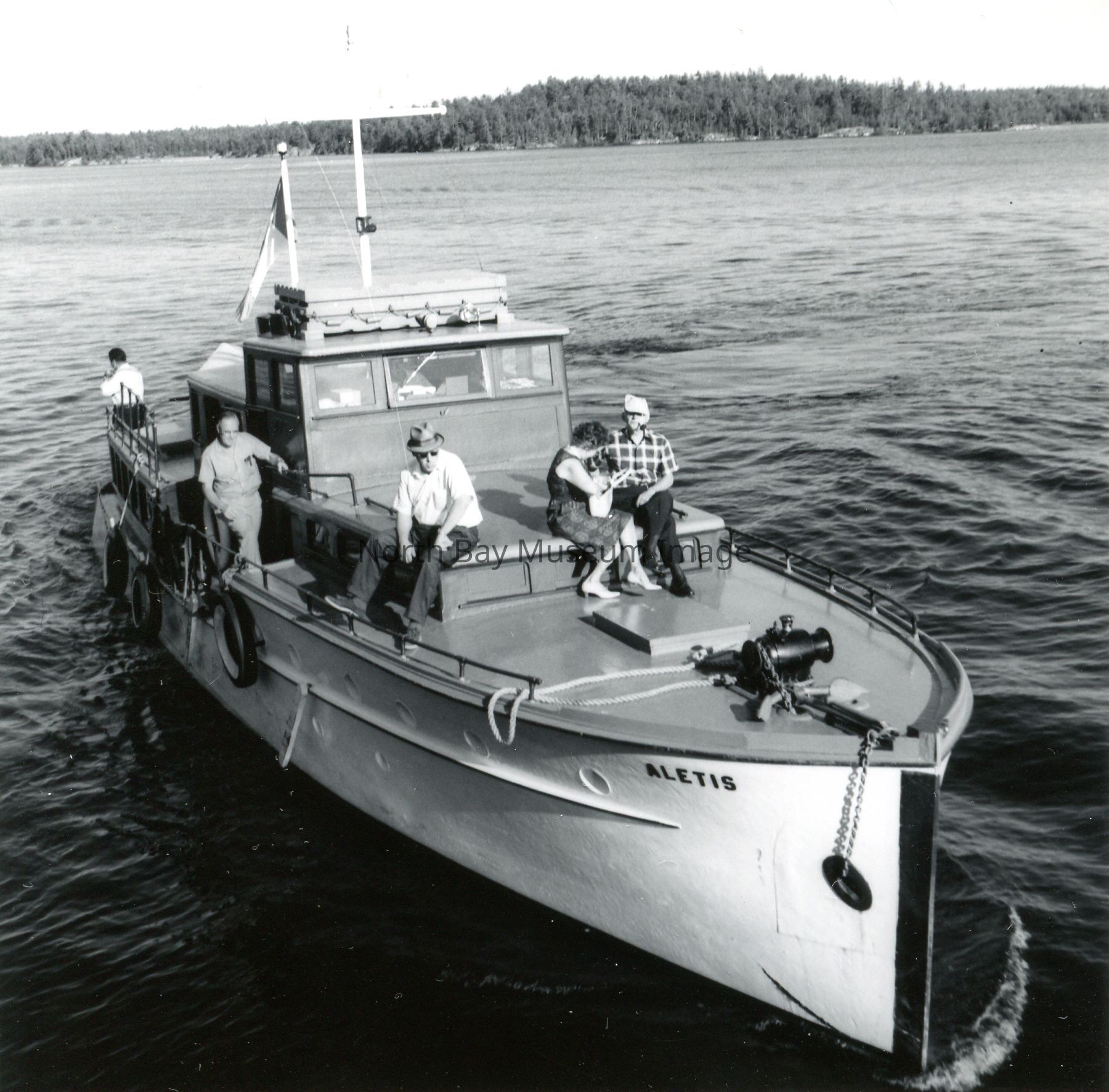 Photographers Envelopes (a-c) contains the photographs and negatives (d-n) of the French River The Aletis. The photos are taken from a boat. The images capture another boat the Aletis. Some of the images of the Aletis show that there is a small group of people on the boat enjoying the weather and sun of the day. This image is a part of the Forder Collection. List of publications for this image are listed on the front of the envelopes.Creator